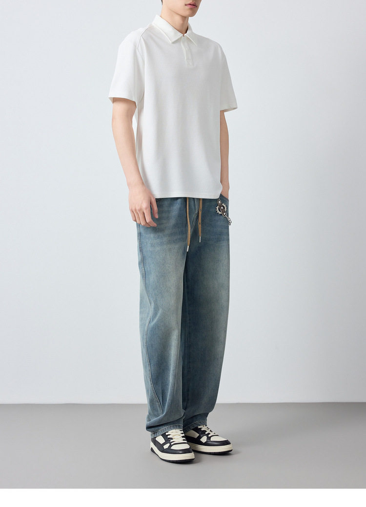 墨麦客男装高智通勤肌理短袖POLO衫男2026新款纯色男士t恤75211.
