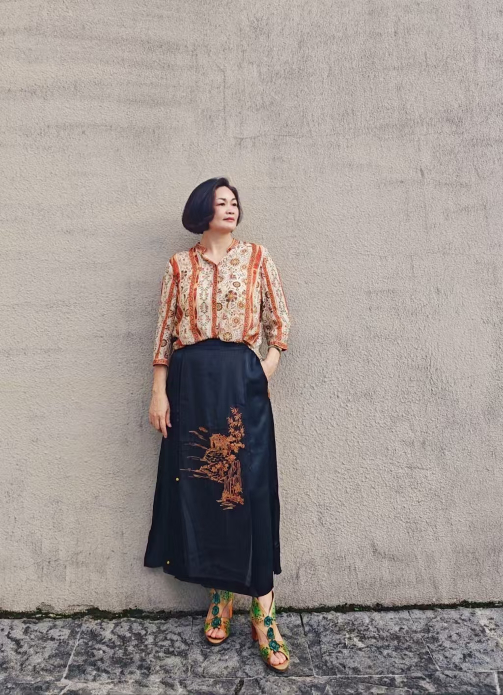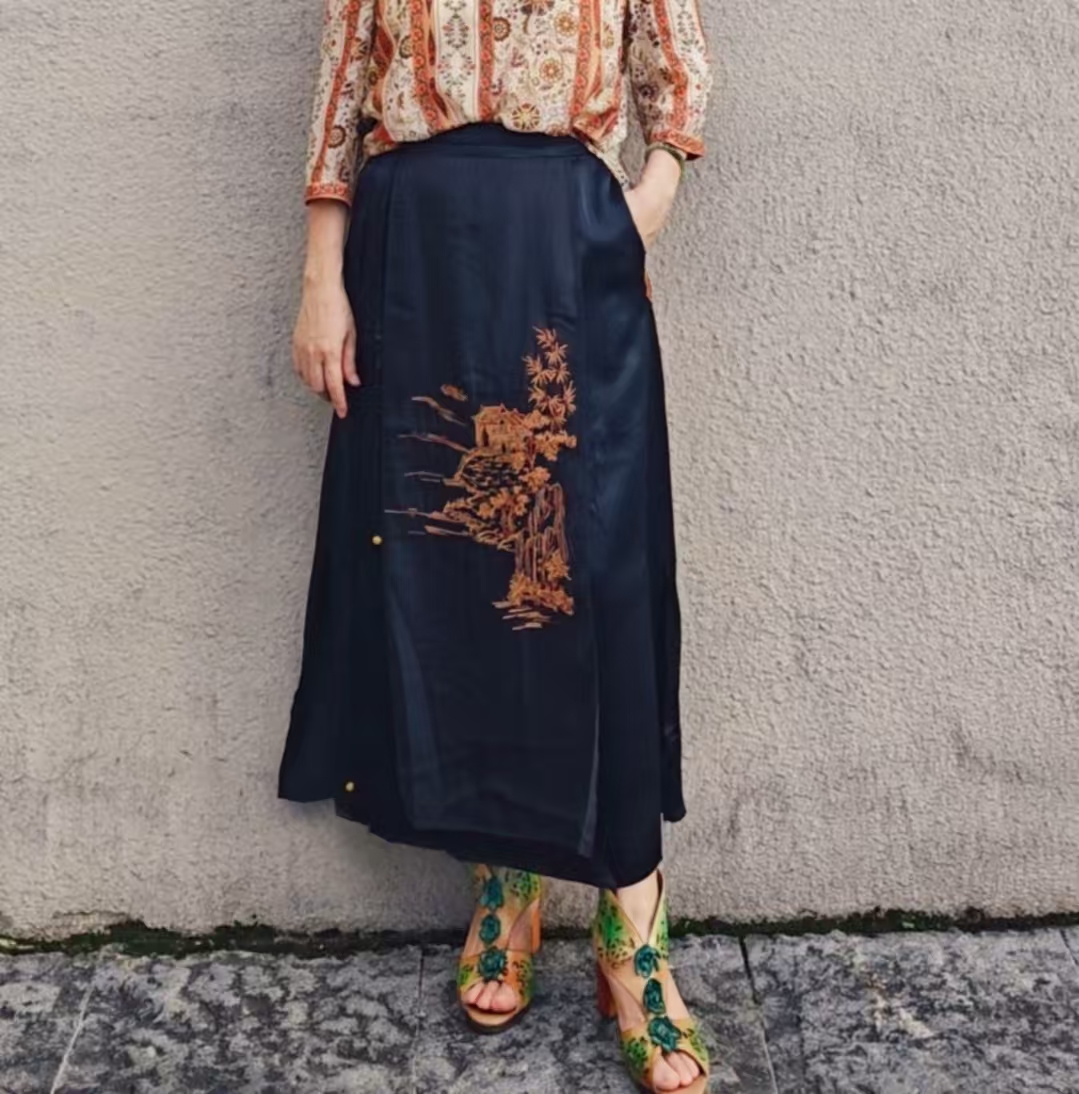秋季新中式时尚绣花醋酸缎半裙
