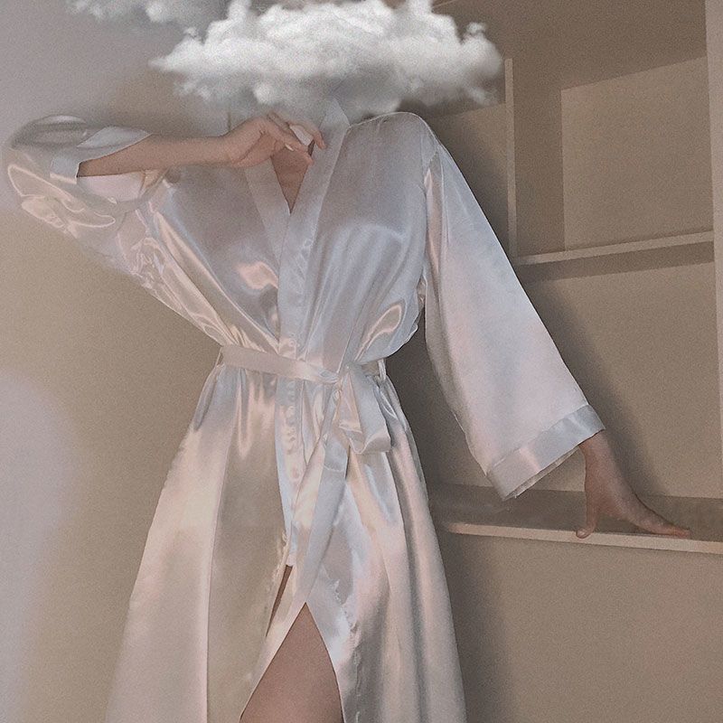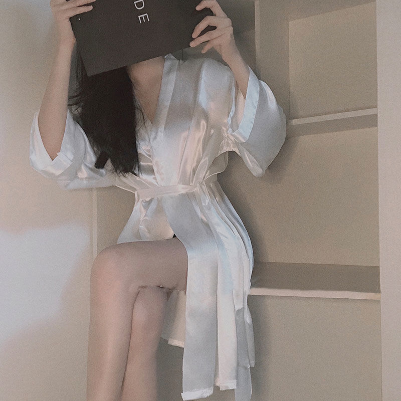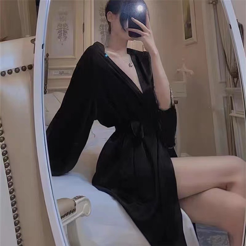 黑色性感纯欲冰丝绸睡袍女春秋季长袖薄浴袍感仿真丝睡衣夏天晨袍