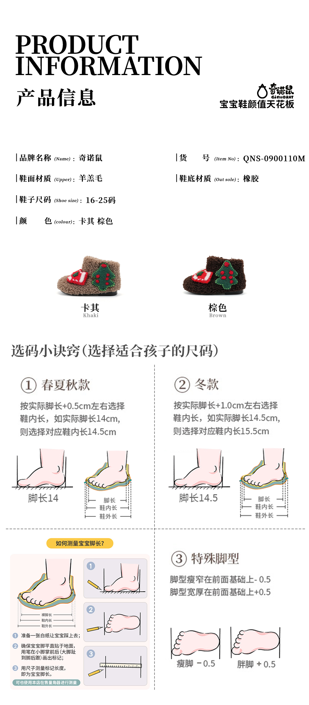 【奇诺鼠品牌直发16-30码】儿童冬季加绒雪地靴