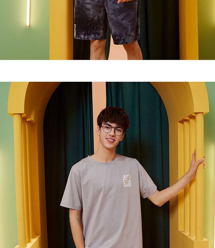 阪织屋棉质扎染印花男士短袖短裤套头套装393165011003