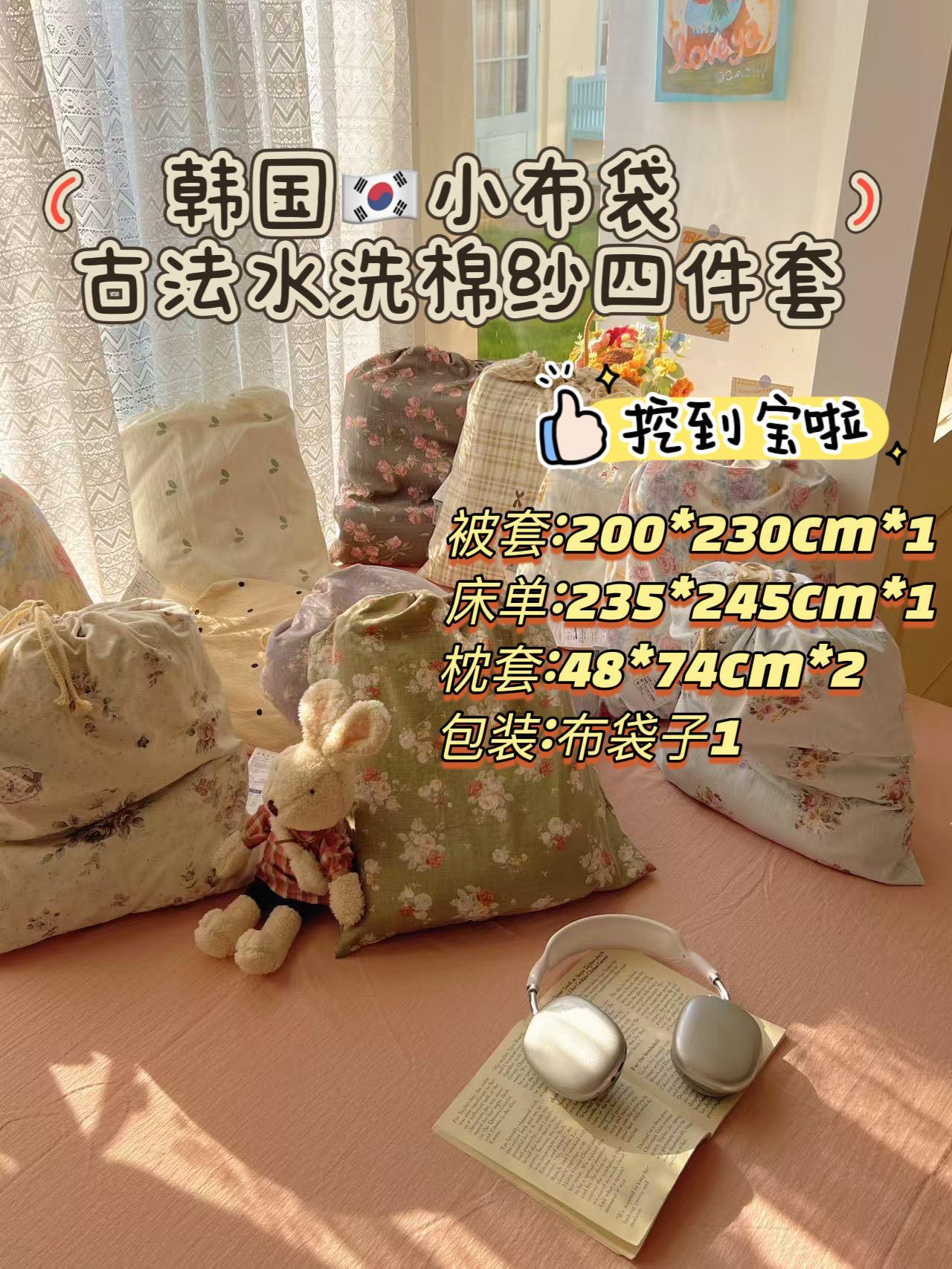【LAIHUIYOU来荟友水洗棉纱小布袋四件套】 清仓抄底价!自带韩国小布袋包装收纳 古法水洗棉纱工艺蓬松绵软舒适