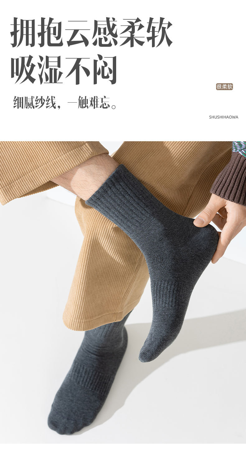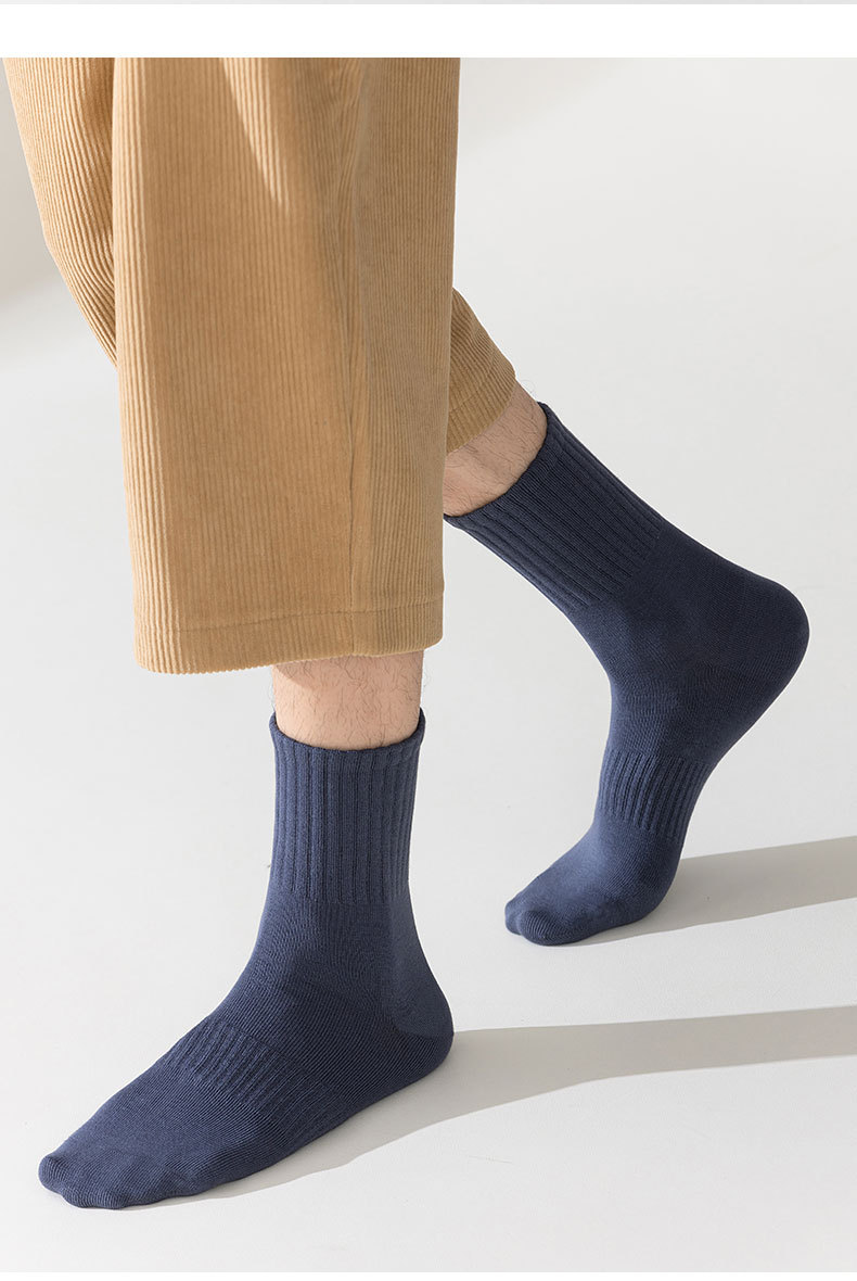 「5双装!数色可选」俞兆林袜子男士中筒袜 舒适透气纯色男式休闲袜棉袜配饰
