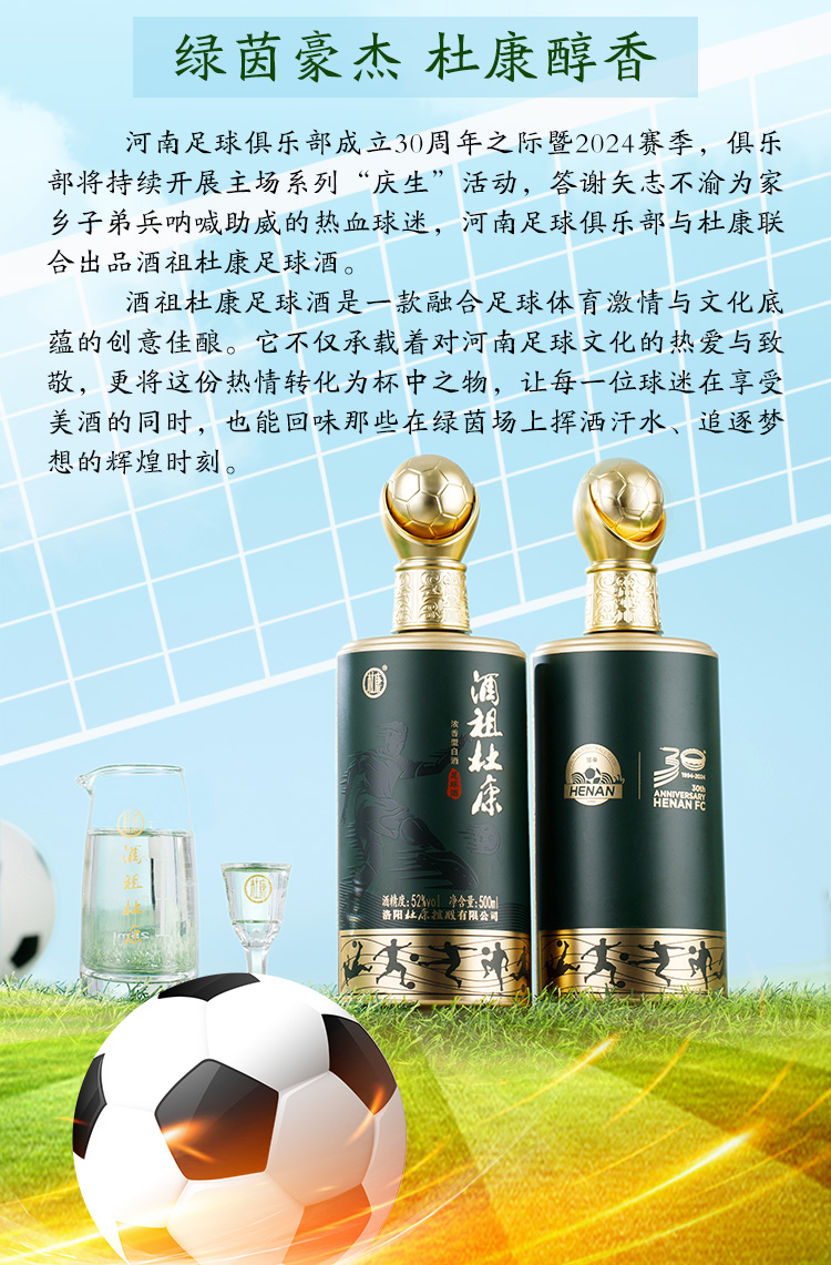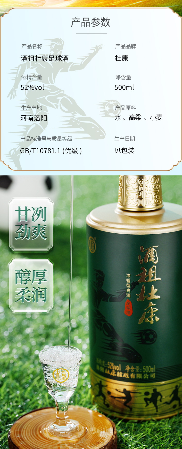 【整箱1000元】酒祖杜康足球酒52度500ml*2瓶/6瓶纯粮浓香型白酒