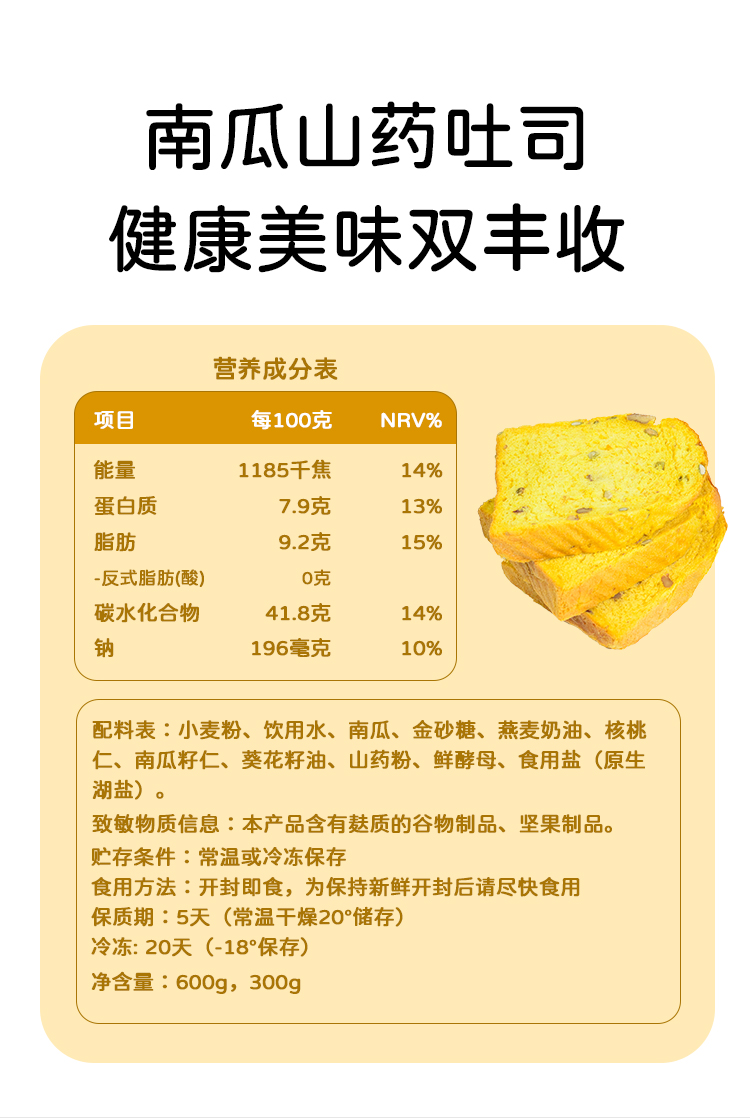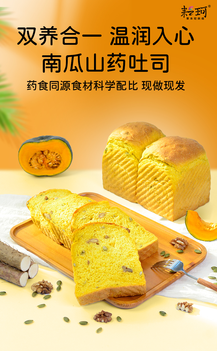 南瓜山药吐司 营养早餐面包 【广东省内满98元包邮】(每周三,周五,周日现做发货,广东省内次日到达)