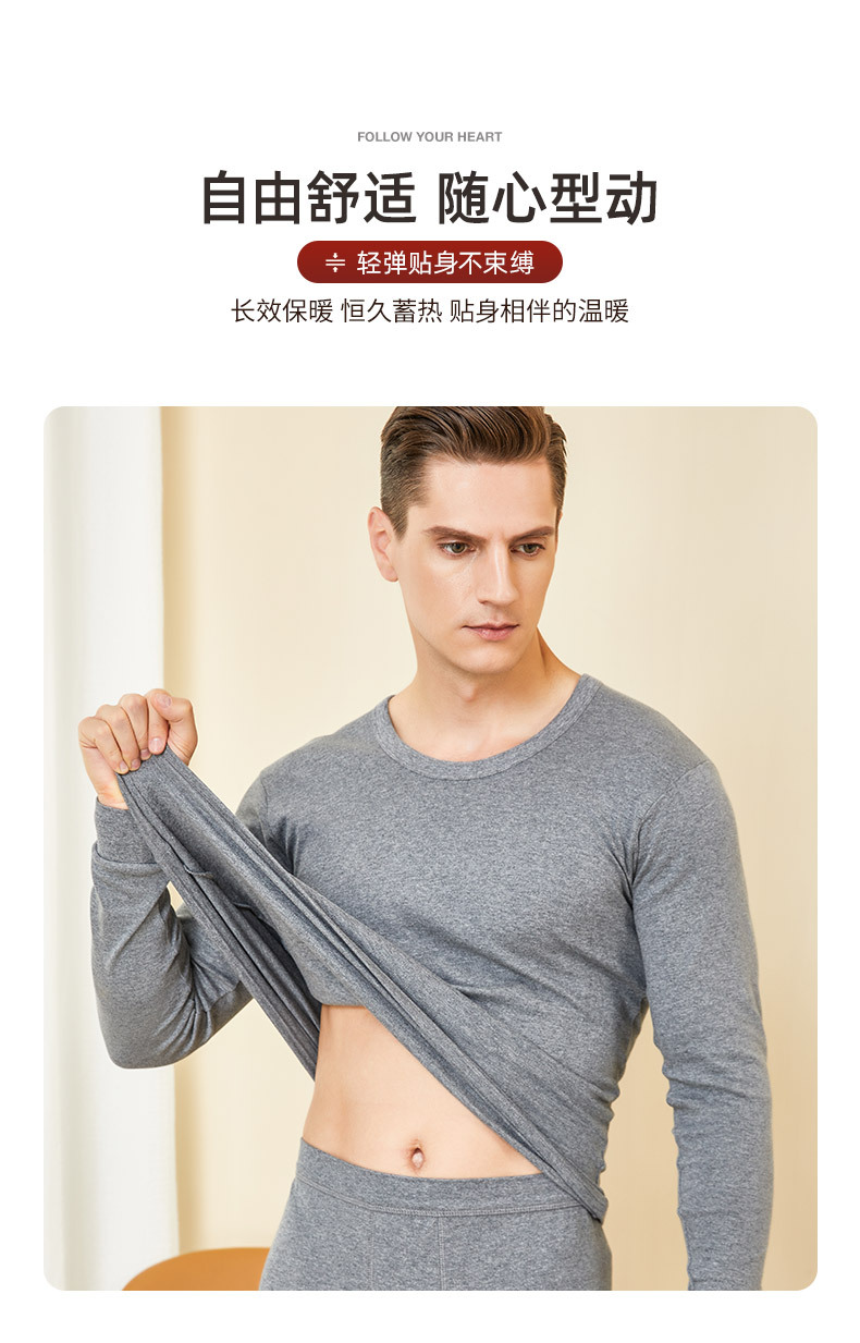 「数款可选!纯棉保暖上衣」南极人纯棉男士保暖内衣修身打底棉毛衫青年单件上衣