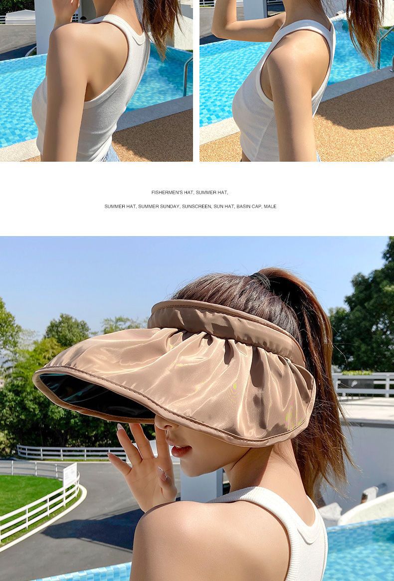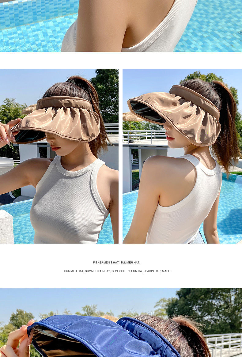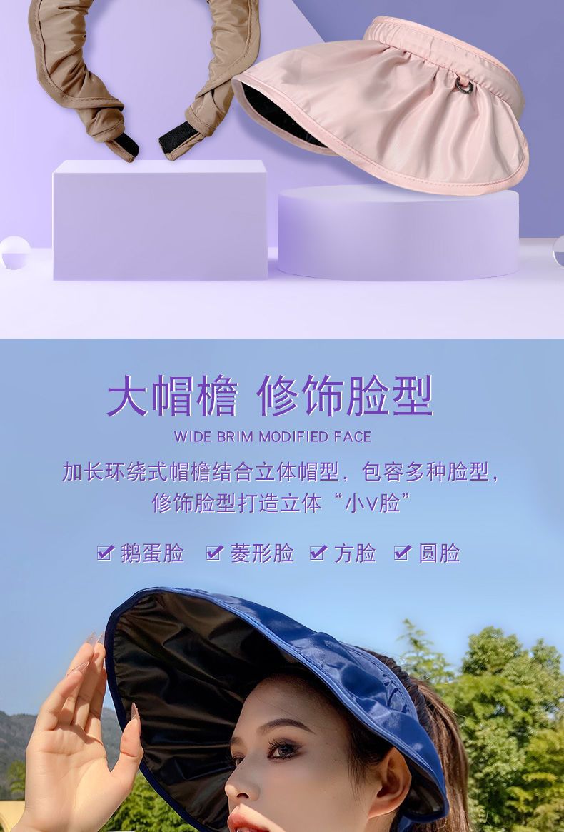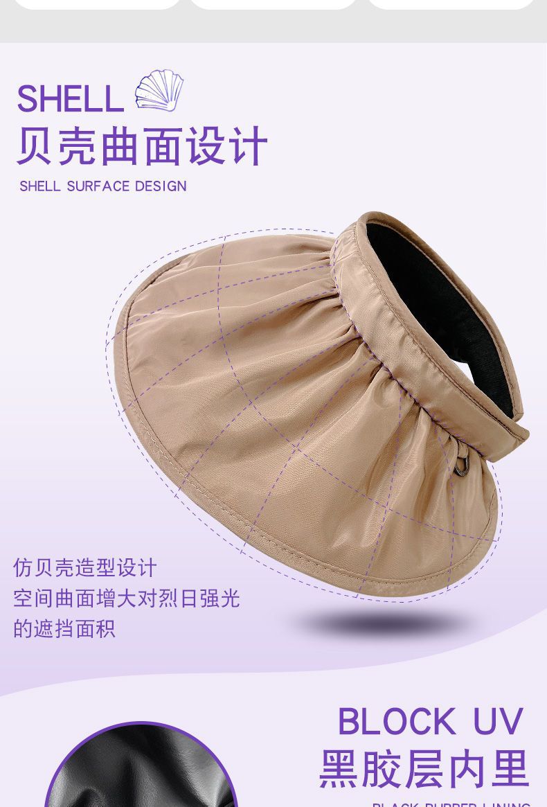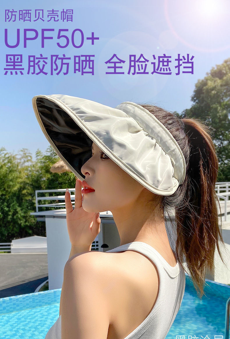 防晒遮阳帽贝壳帽 渔夫沙滩帽 防紫外线遮脸空顶运动太阳帽 调节发箍