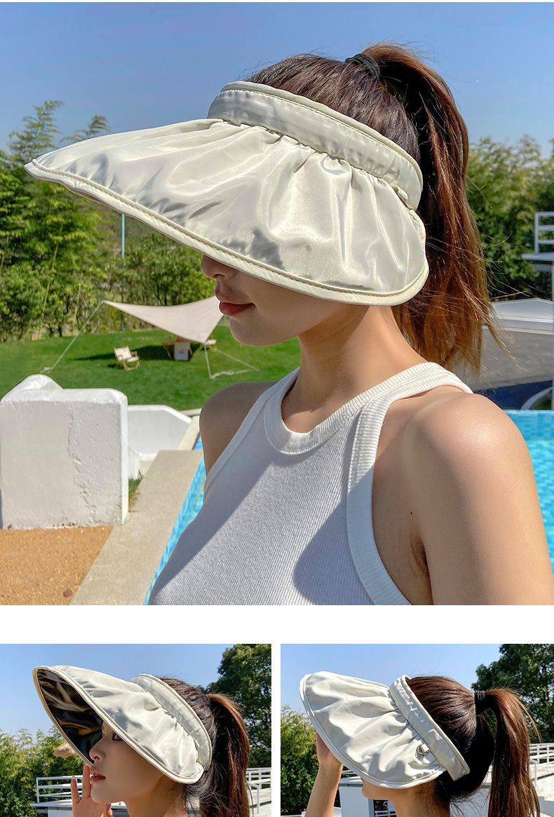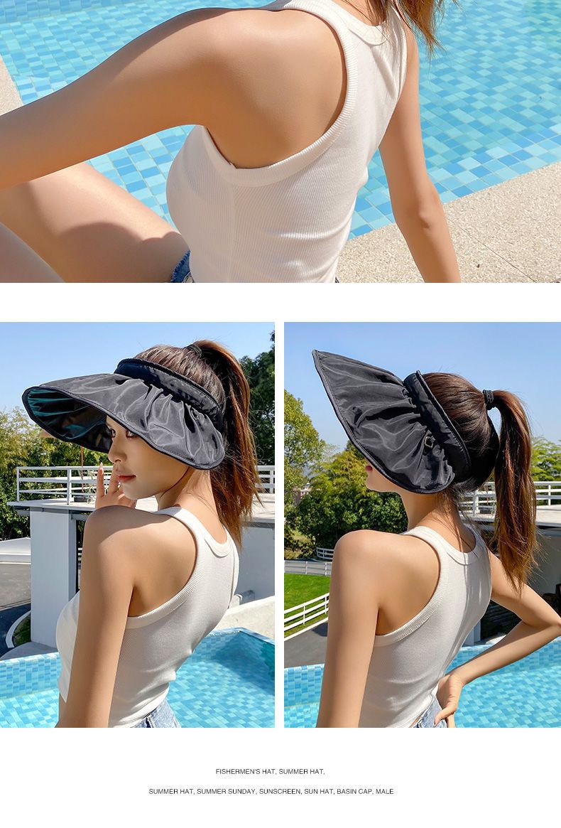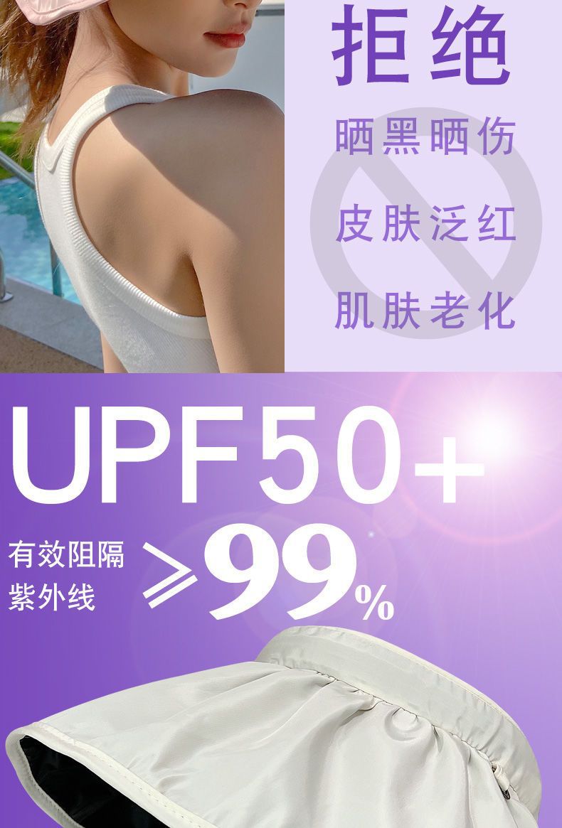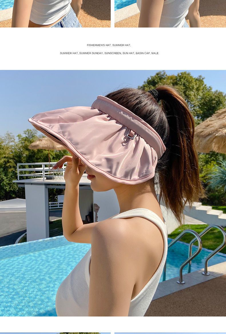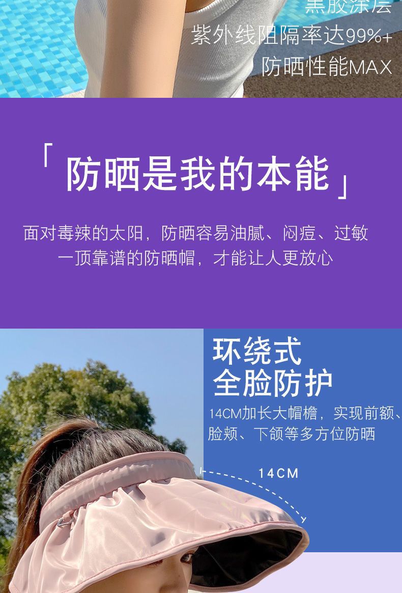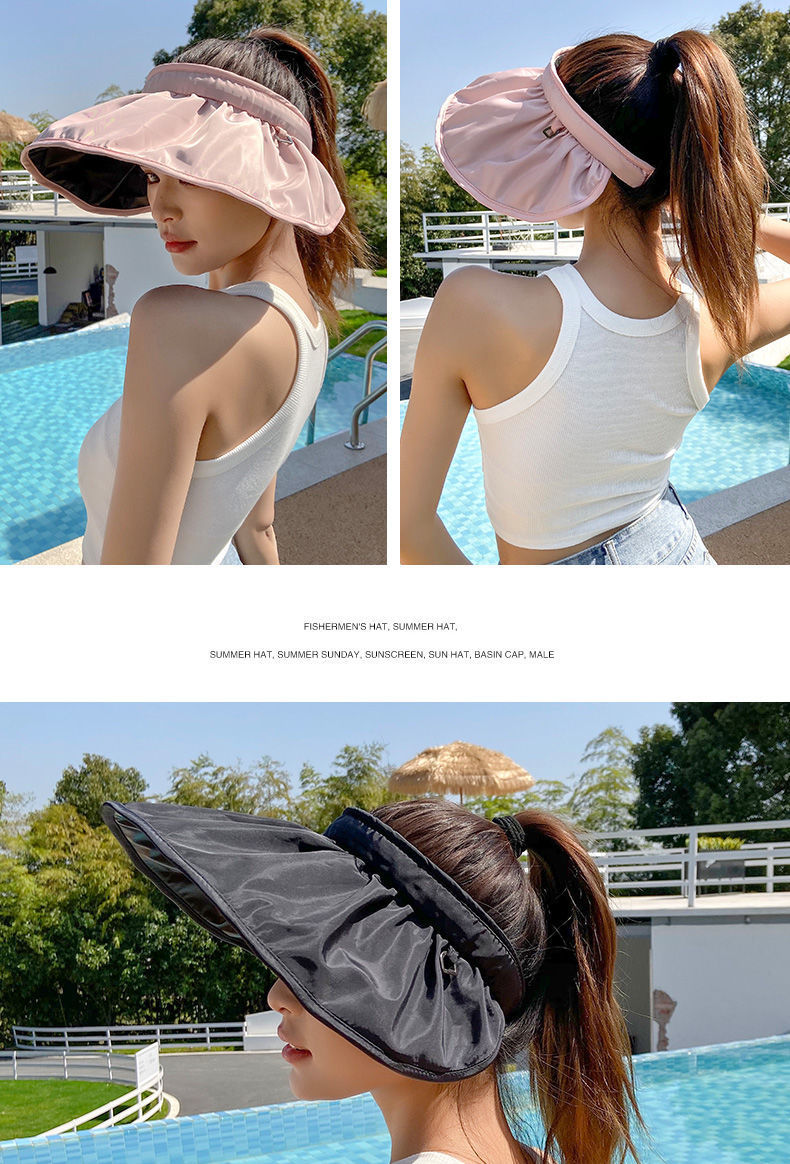 防晒遮阳帽贝壳帽 渔夫沙滩帽 防紫外线遮脸空顶运动太阳帽 调节发箍