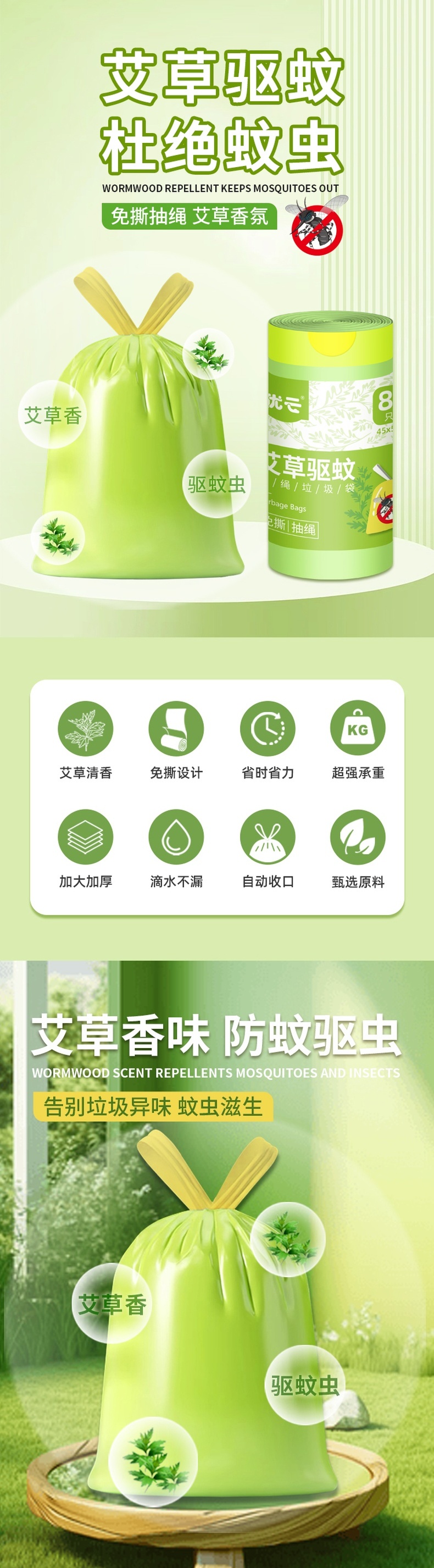 优云免撕驱蚊垃圾袋88只/卷 防蚊虫抽绳自动收口客厅卧室清香型