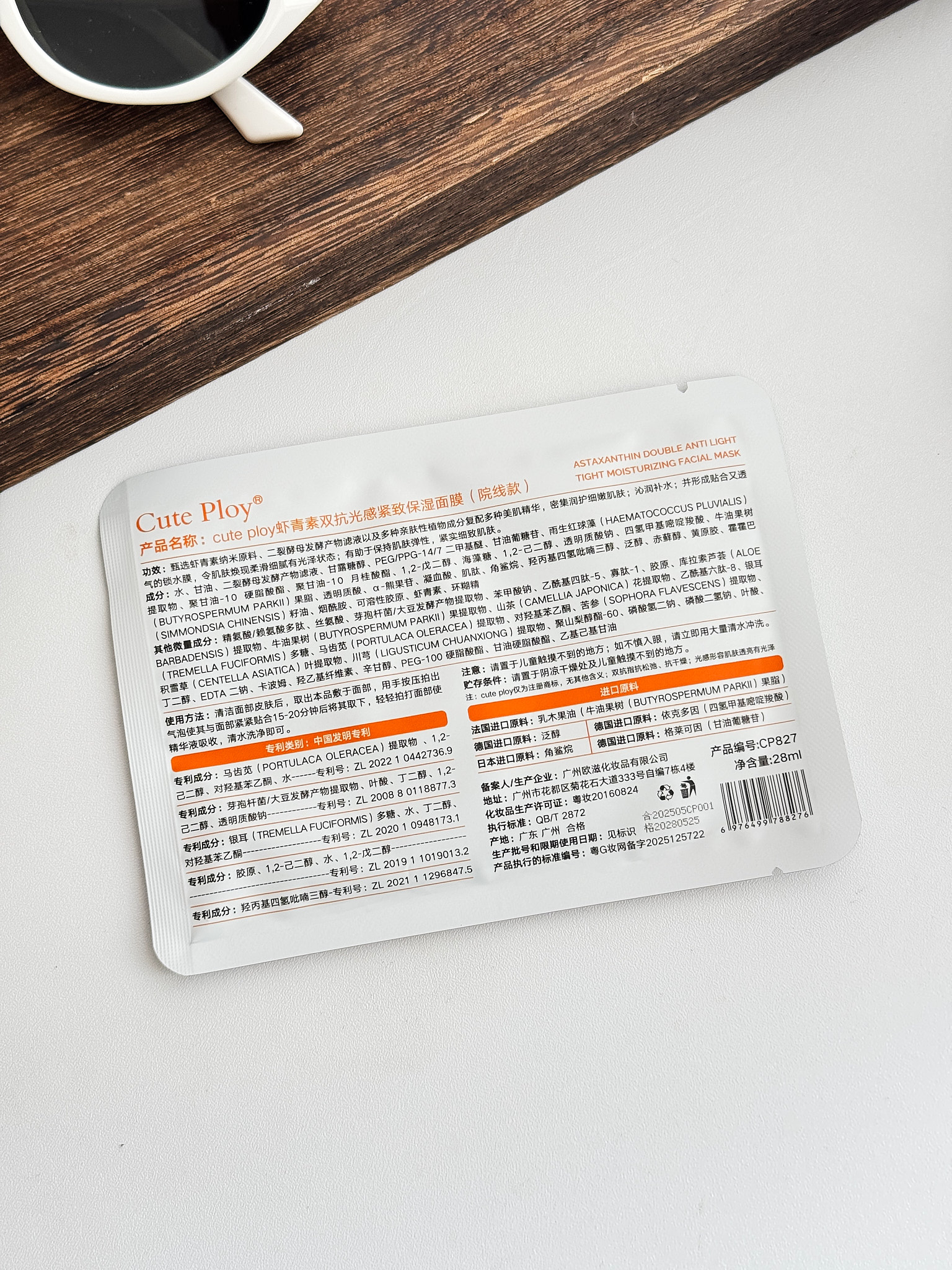 五大专利【cute ploy虾青素双抗光感紧致保湿面膜(院线款)】 舒缓功效 抗皱紧致功效 去黄提亮 敷出素颜好气色