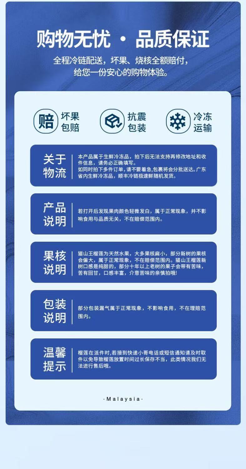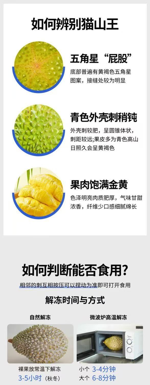冰淇淋口感猫山王!液氮速锁鲜 马来西亚榴莲 绵密醇香