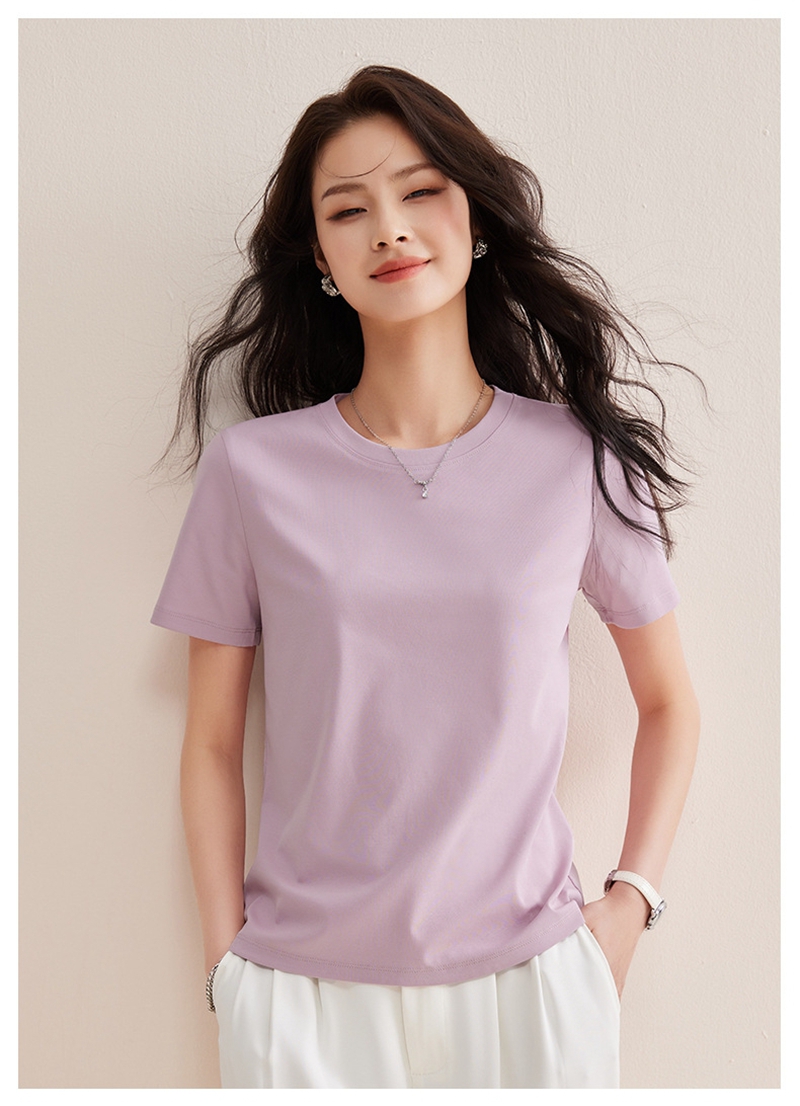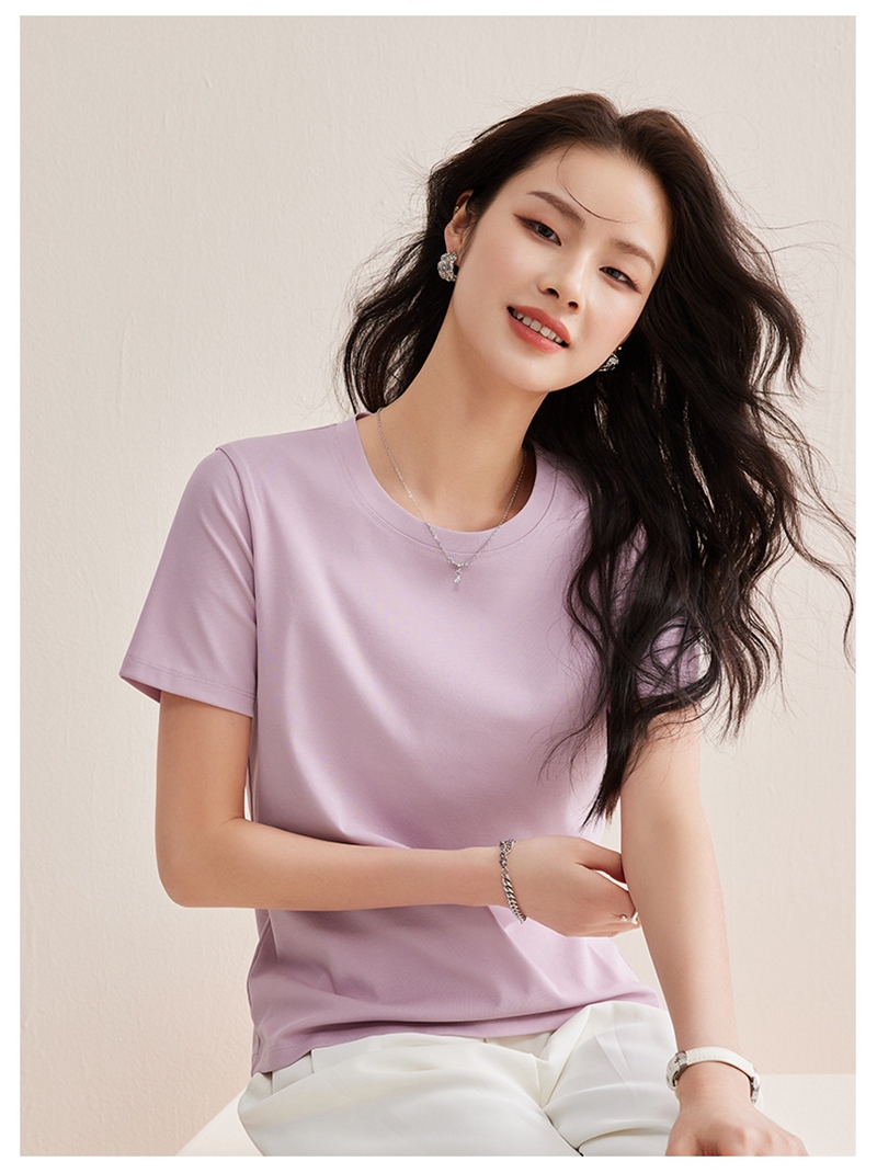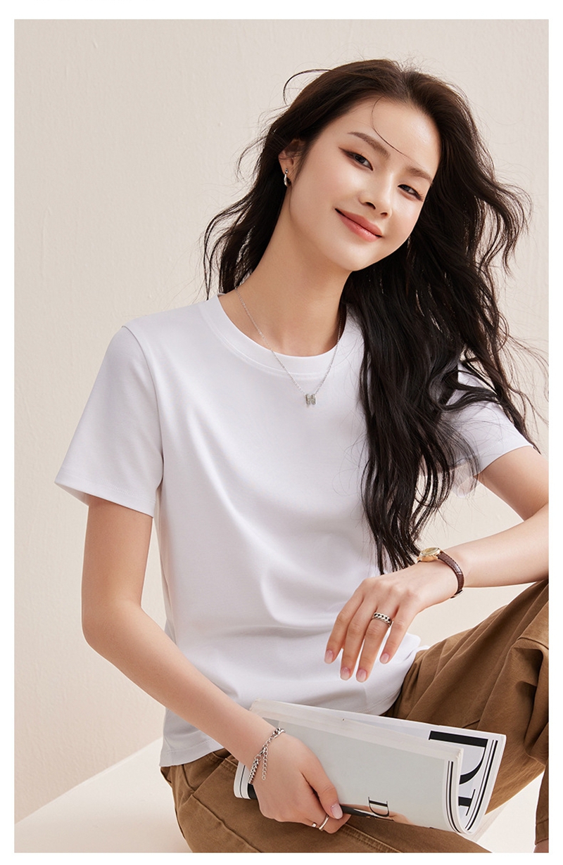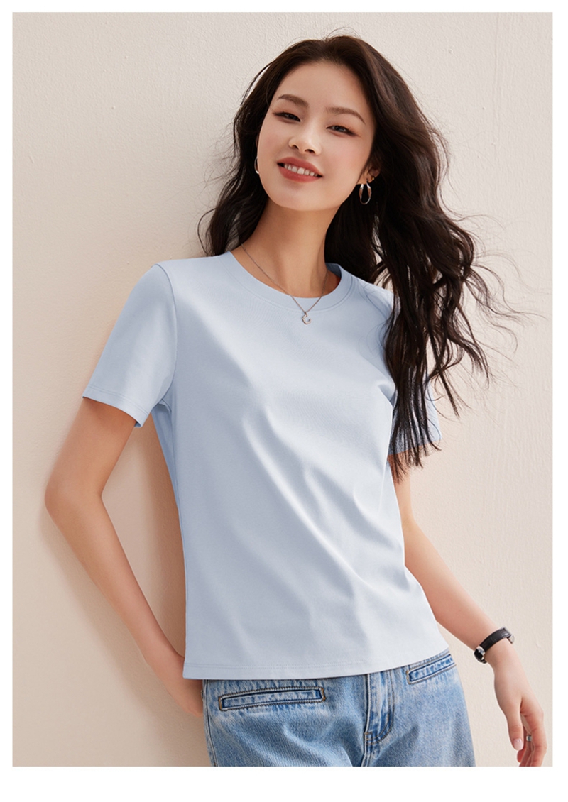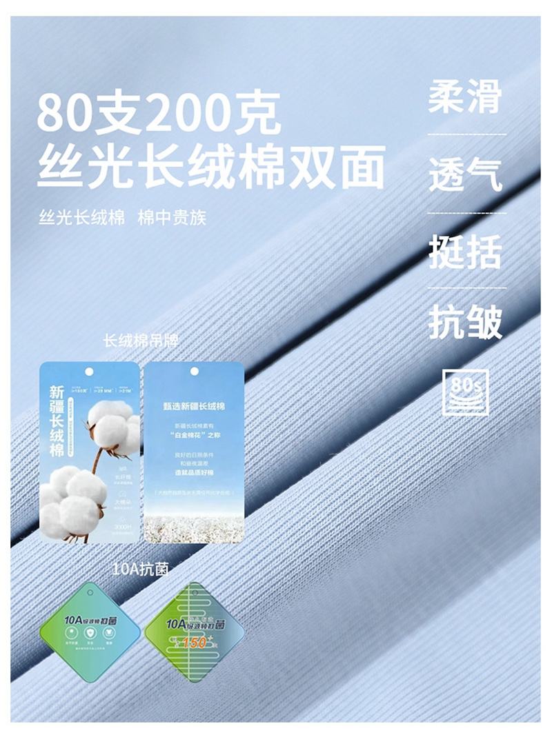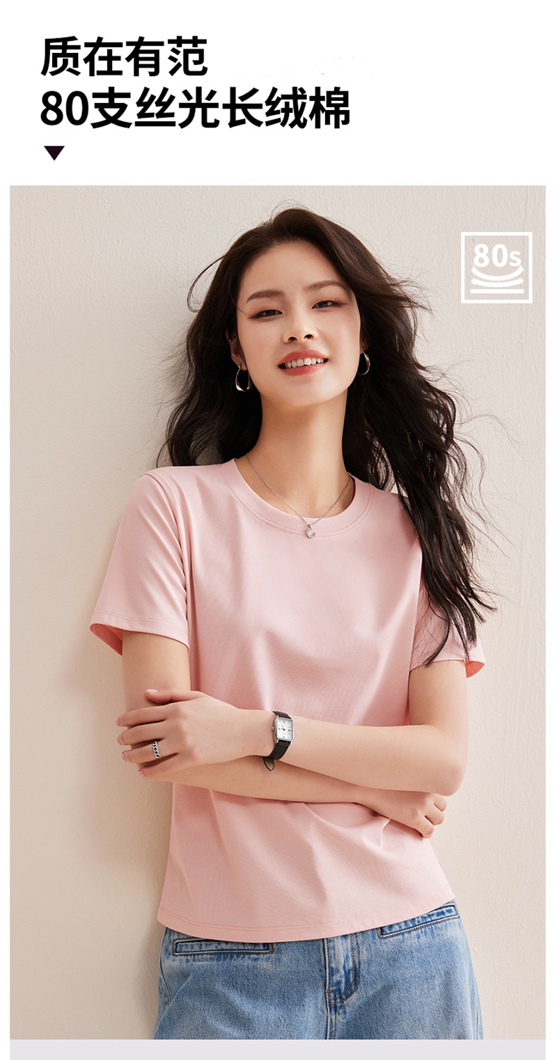 免烫抗皱80支长绒丝光棉丝滑凉感短袖圆领正肩T恤
