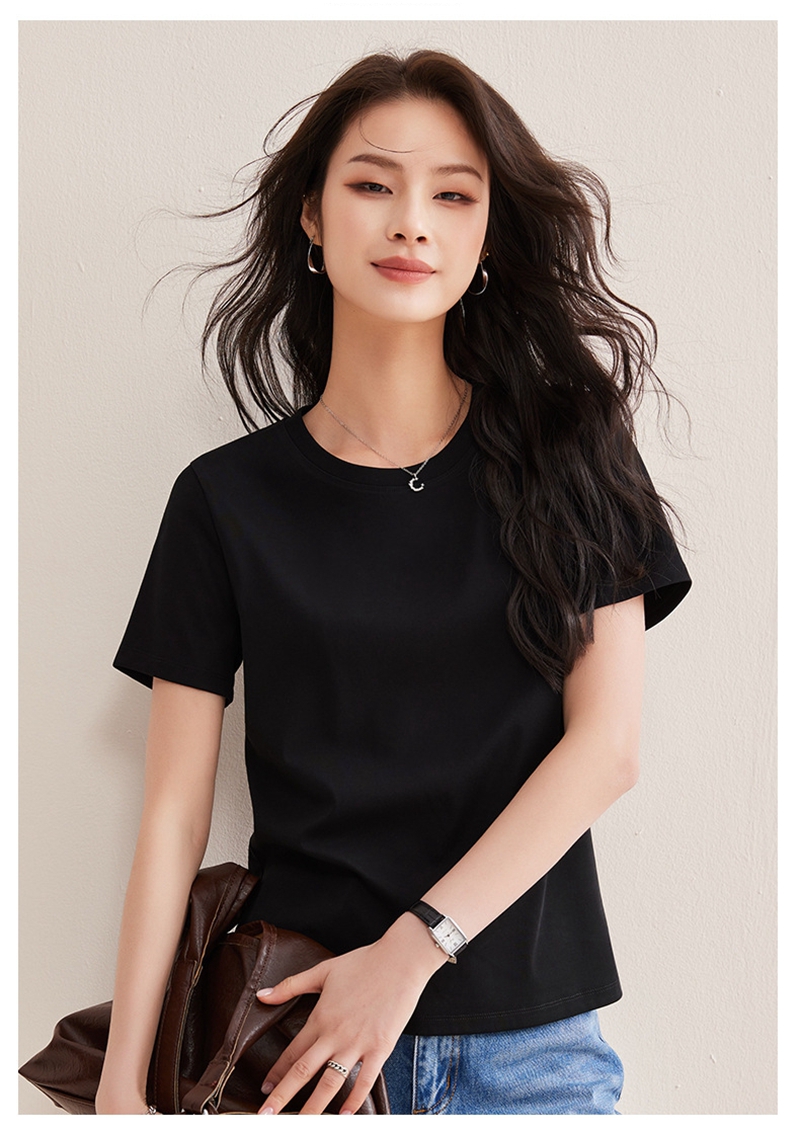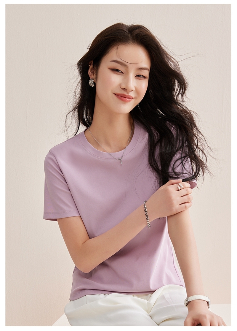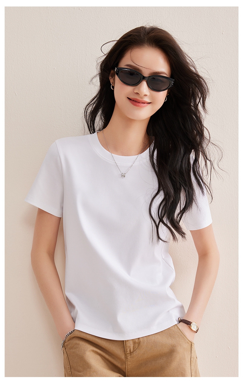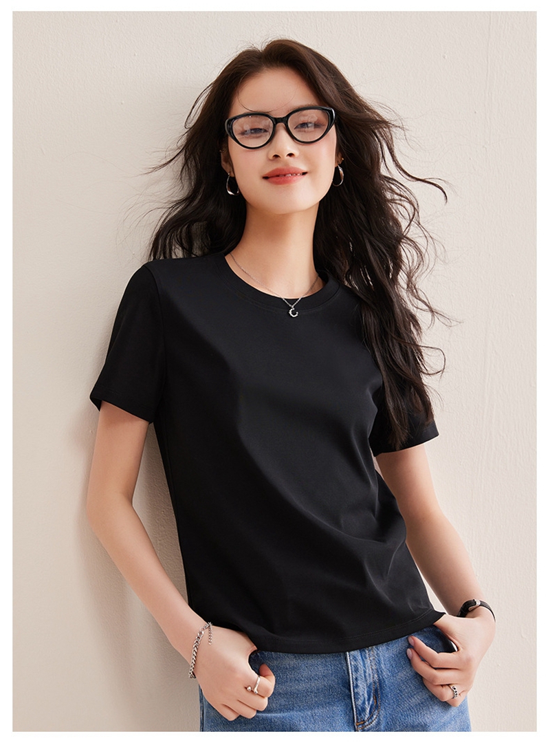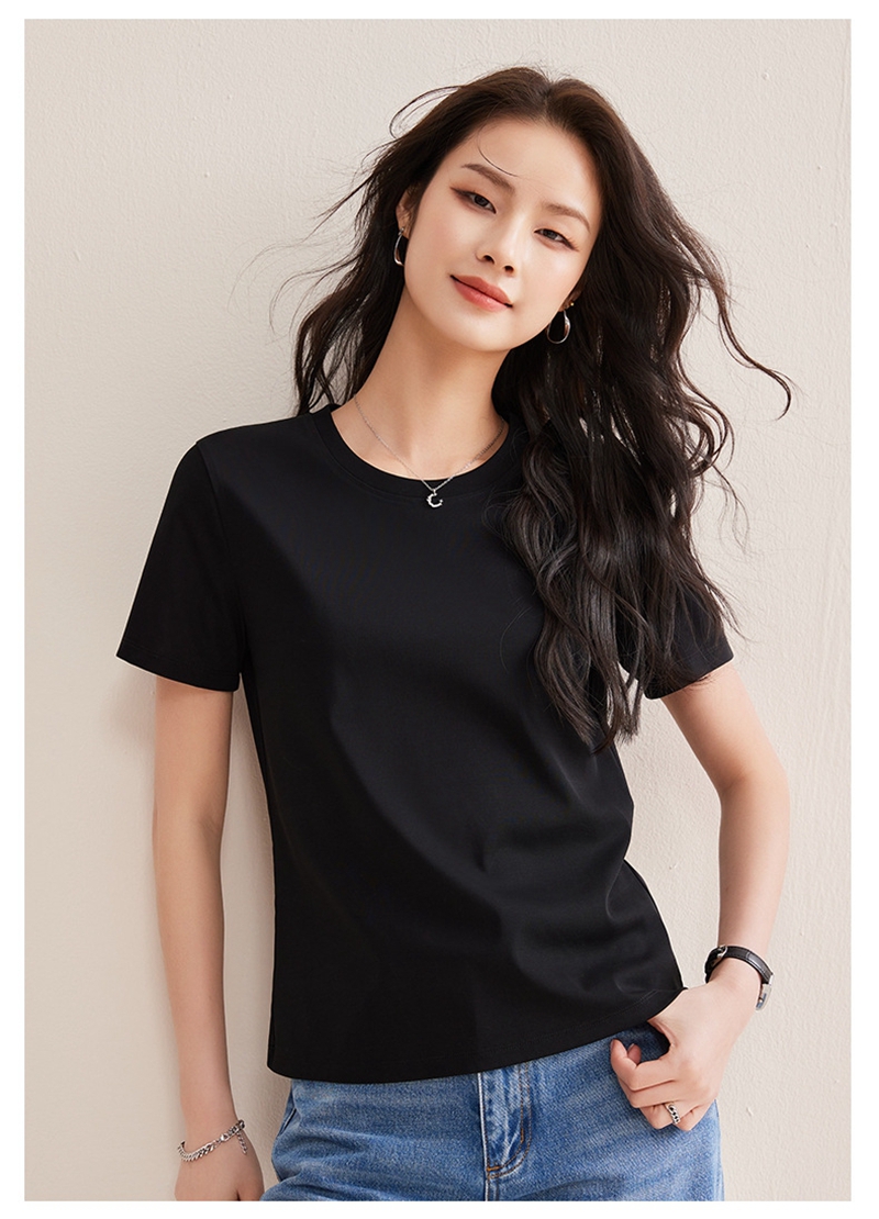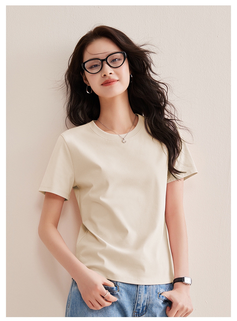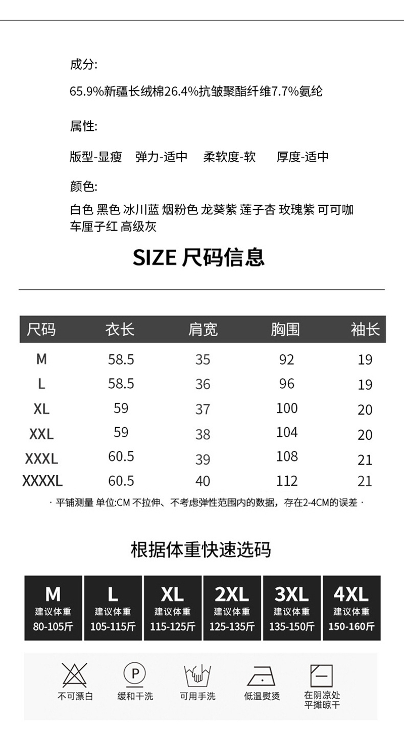 免烫抗皱80支长绒丝光棉丝滑凉感短袖圆领正肩T恤