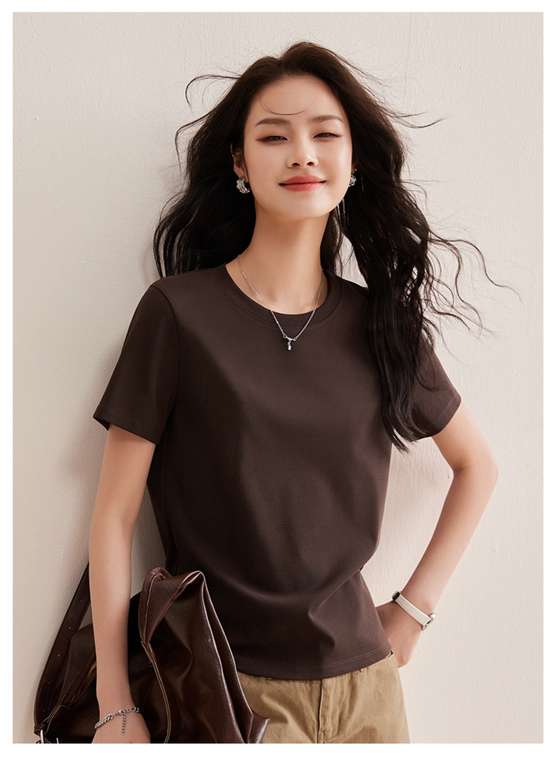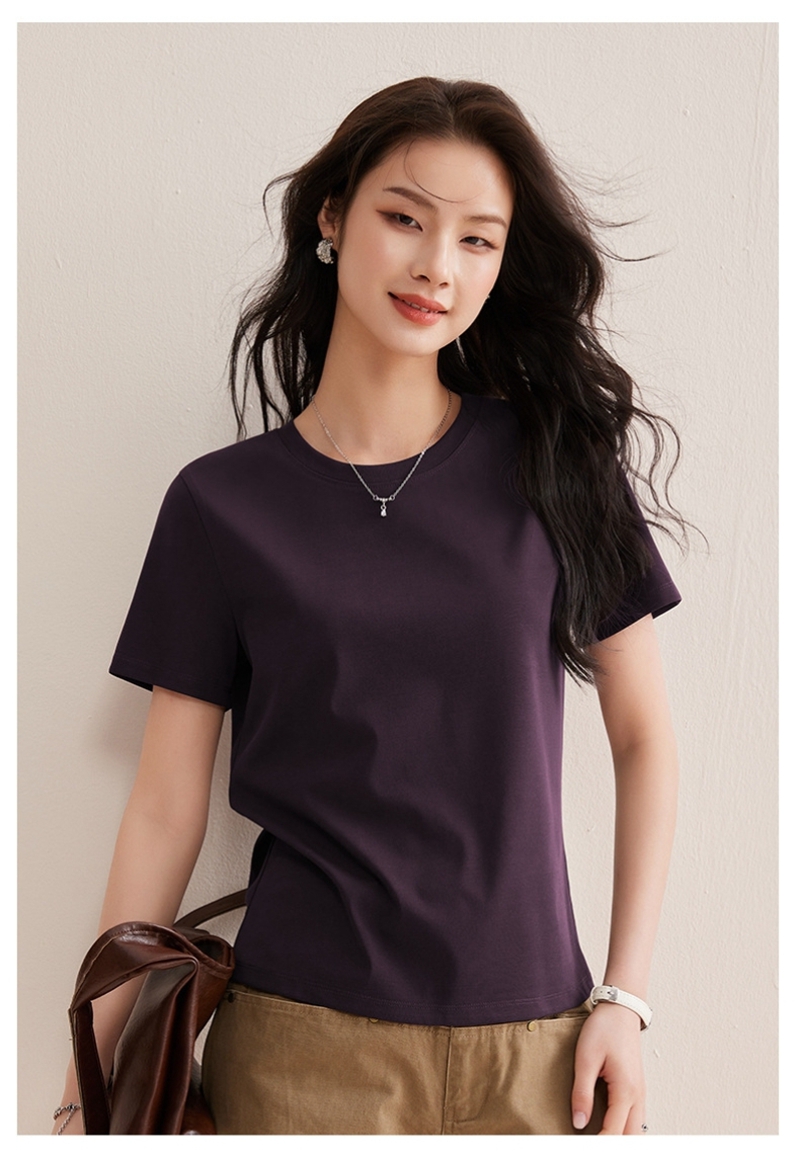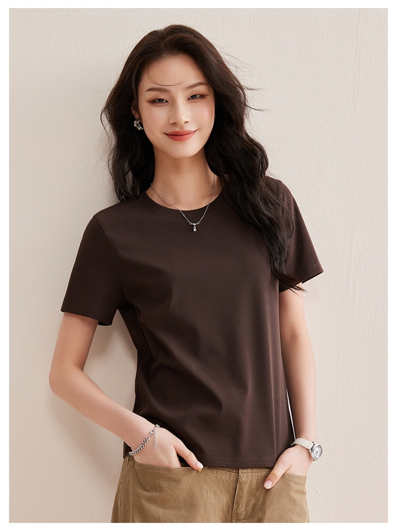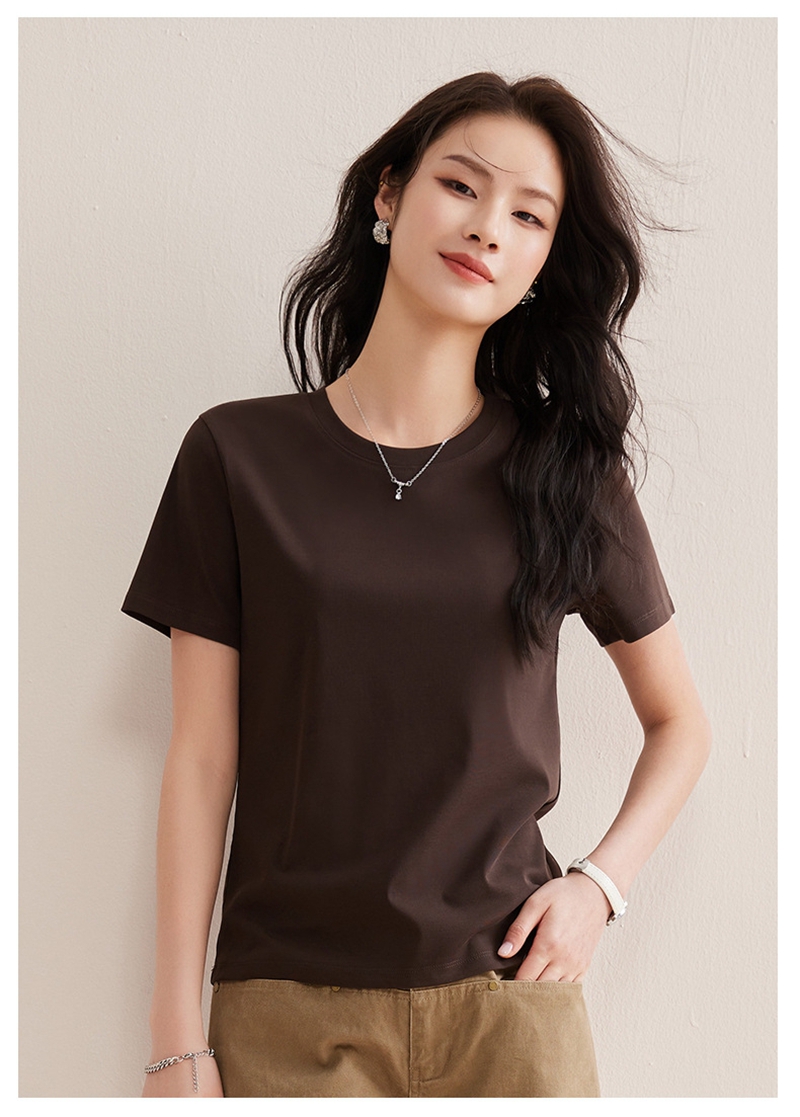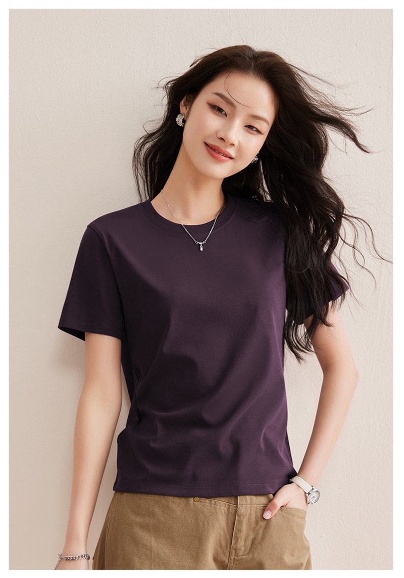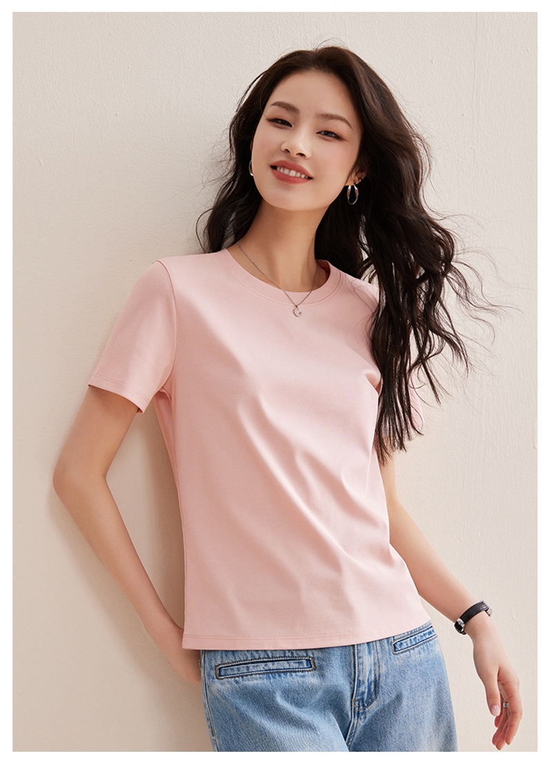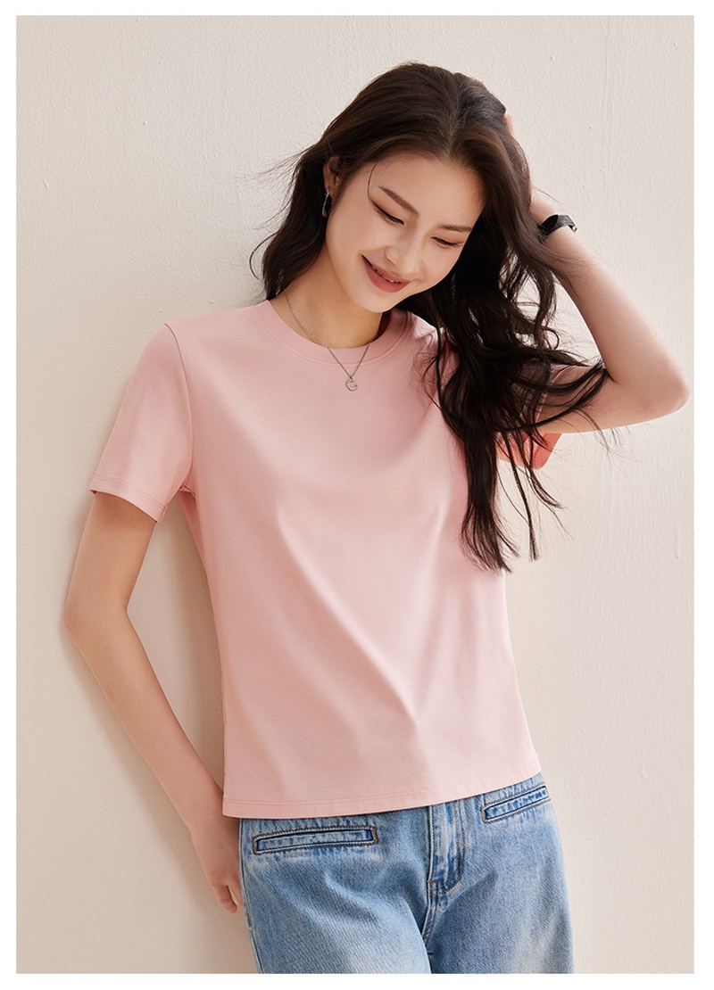 免烫抗皱80支长绒丝光棉丝滑凉感短袖圆领正肩T恤