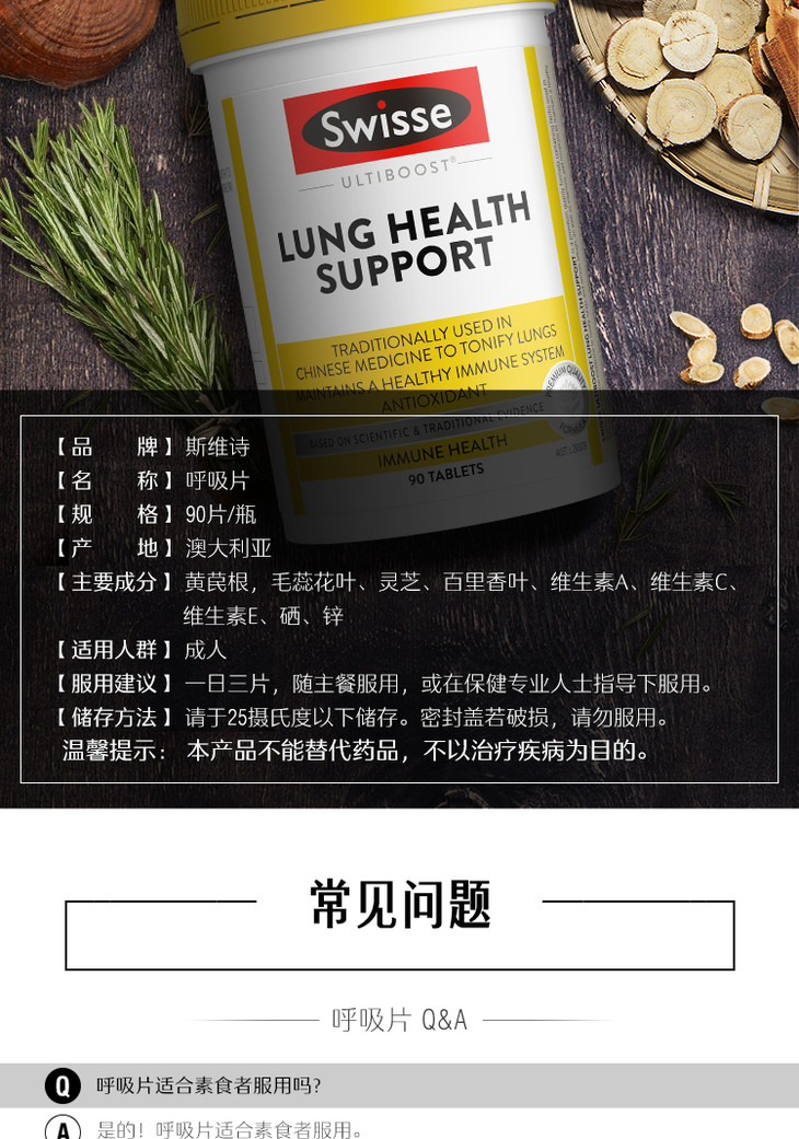 swisse 斯维诗清肺片 90粒【不足200元订单,默认顺丰快递到付】