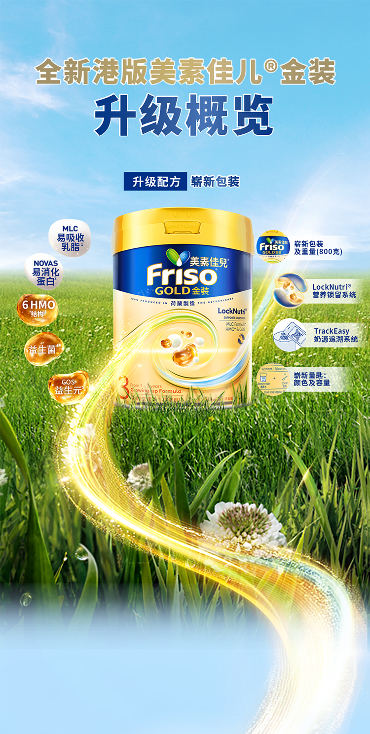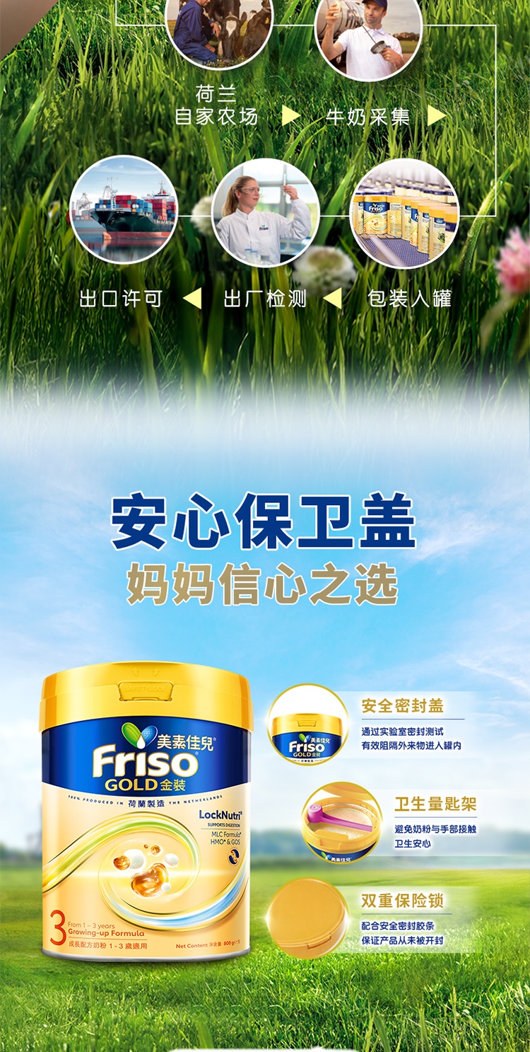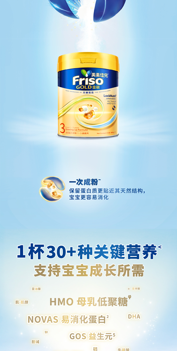 [大罐3段]港版金装美素佳儿 Friso全新6HMO结构+MLC易吸收乳脂配方幼儿奶粉3段(12-36个月)800g