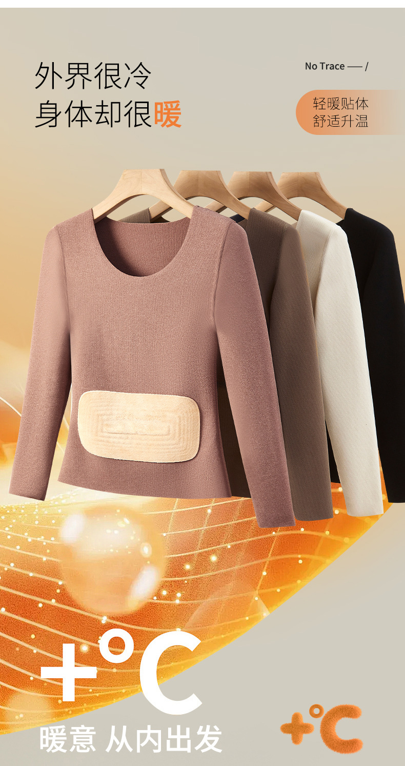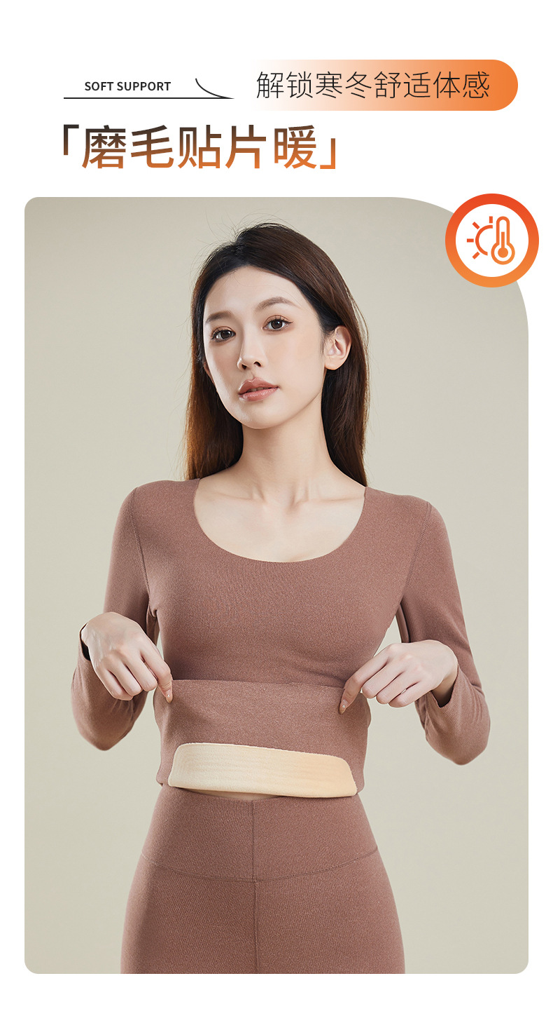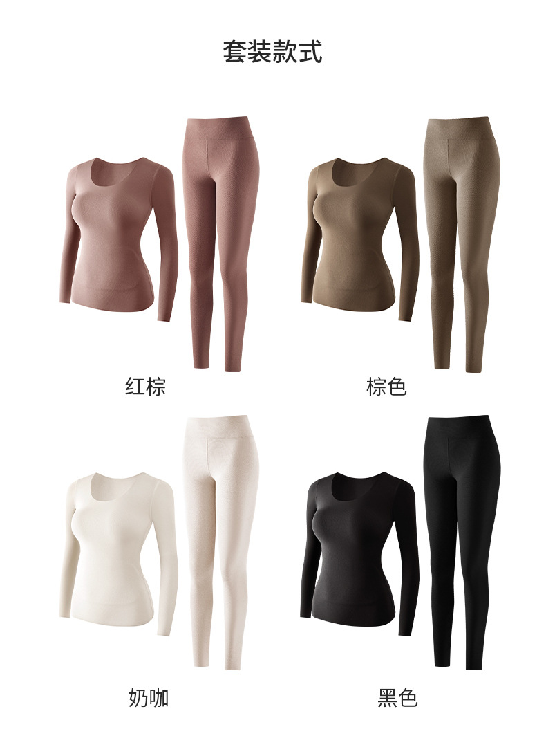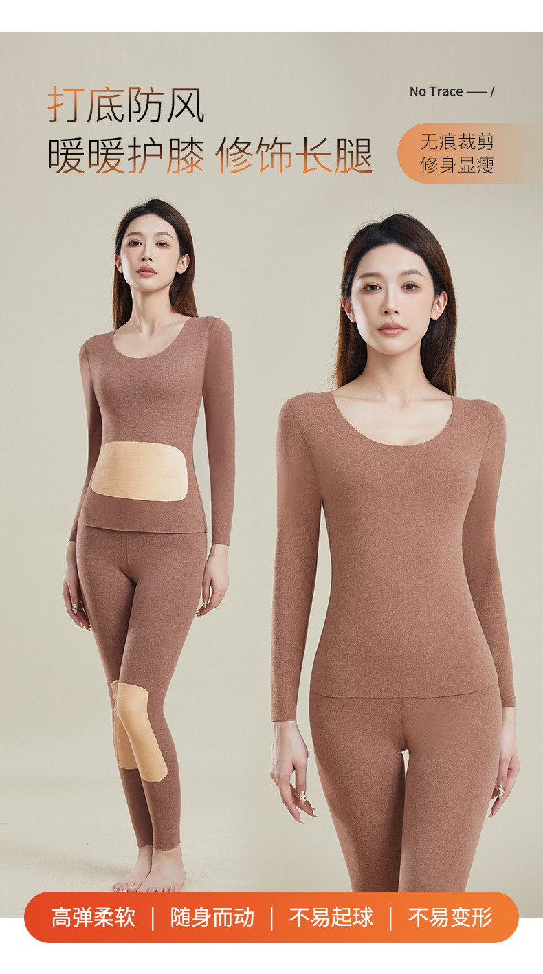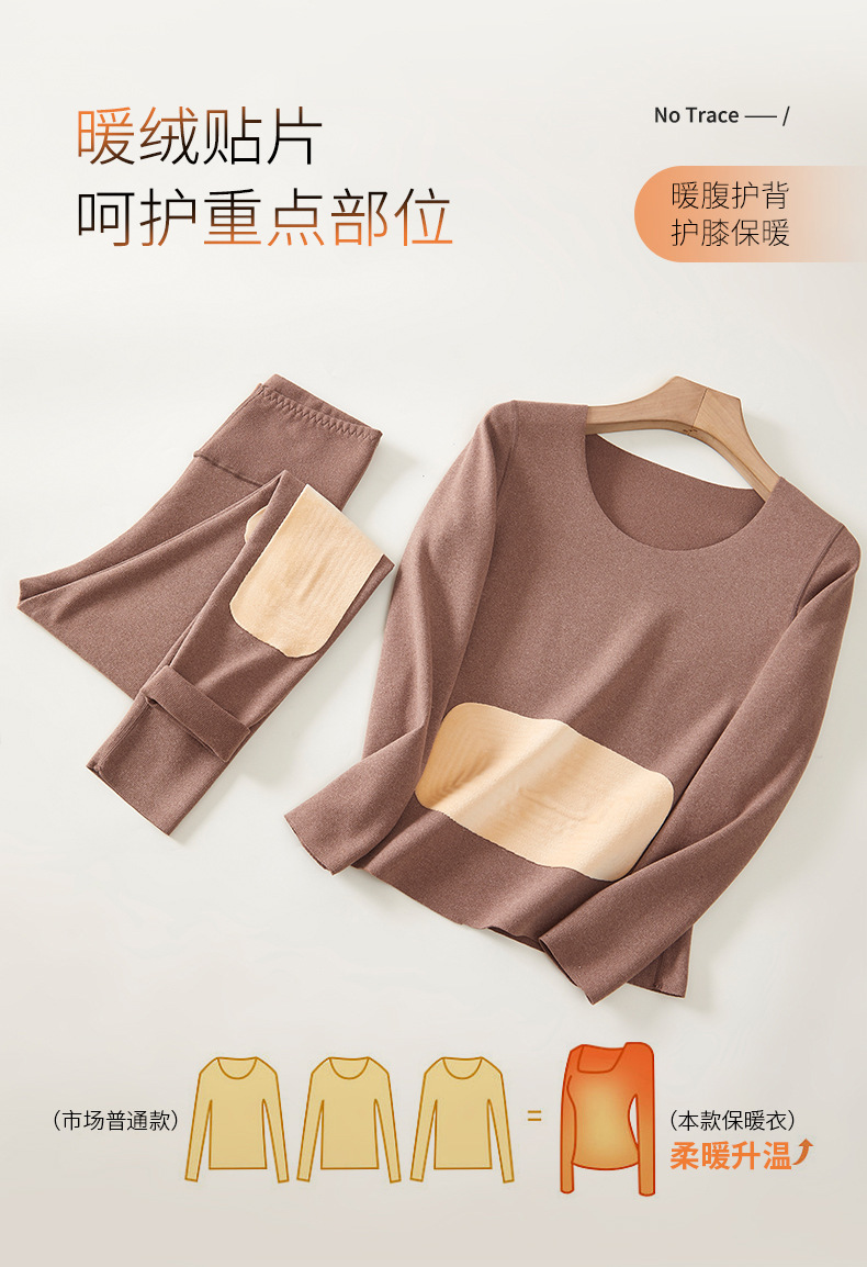 轻量化保暖内衣 新款女士保暖贴片秋衣秋裤女发热德绒无痕打底秋冬季保暖内衣套装