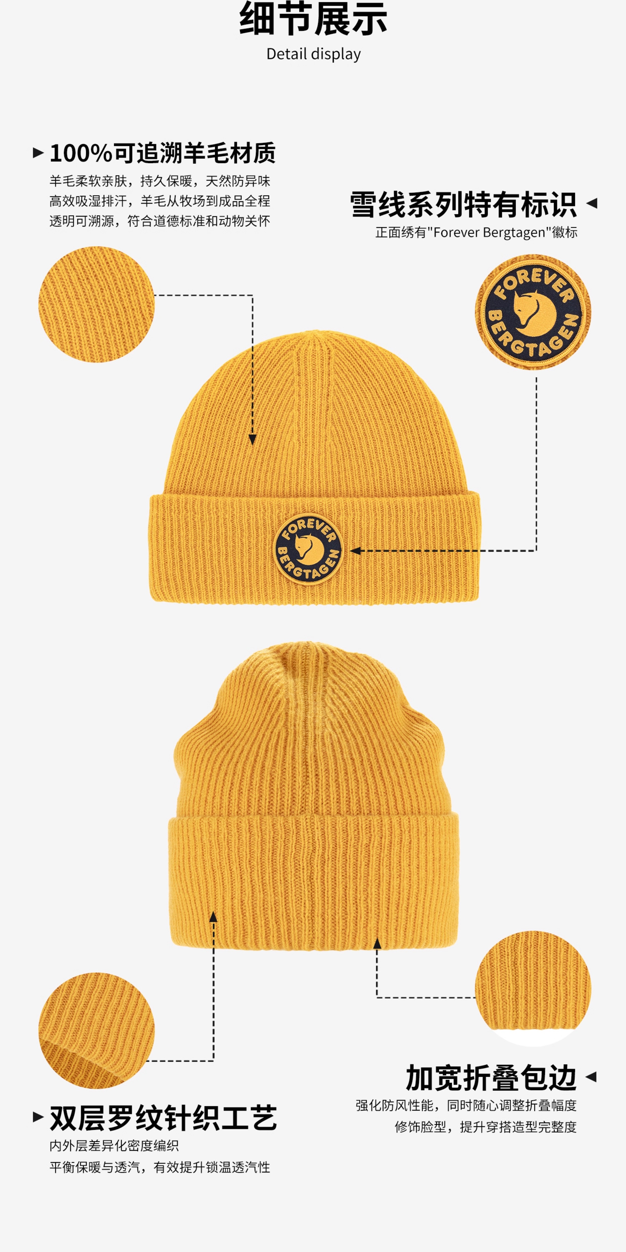 Fjallraven北极狐 Bergtagen男女毛线帽 100%羊毛针织帽13100187
