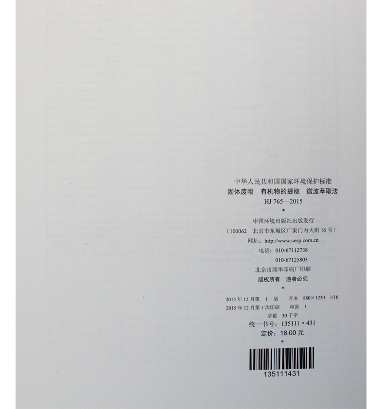 HJ 765-2015 固体废物 有机物的提取 微波萃取法 国家标准 国标 GB 环境保护 135111431