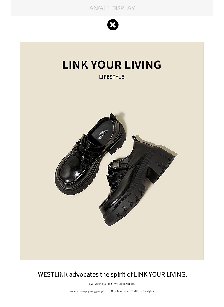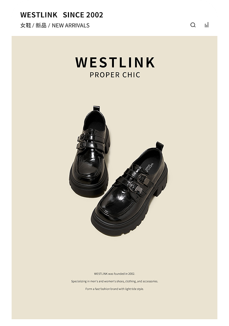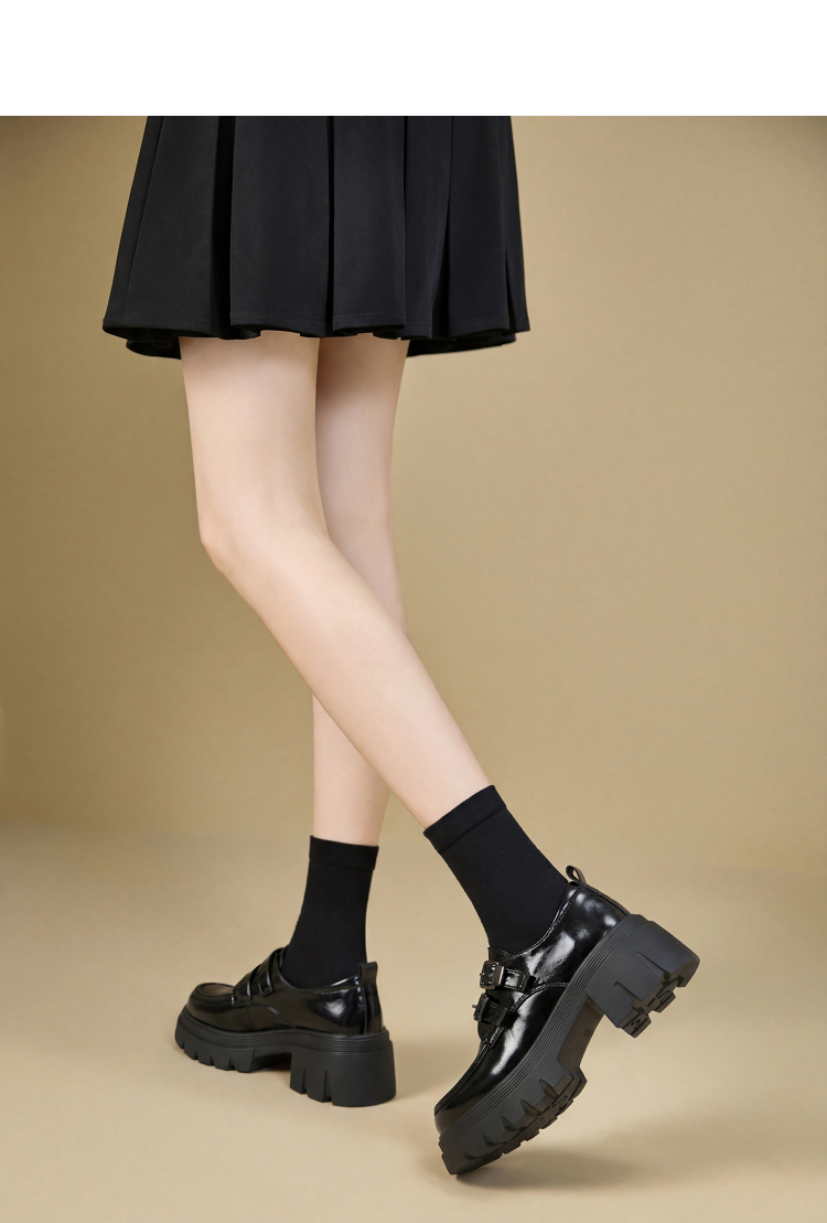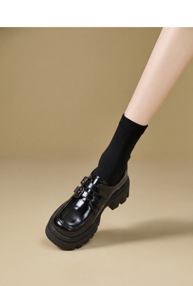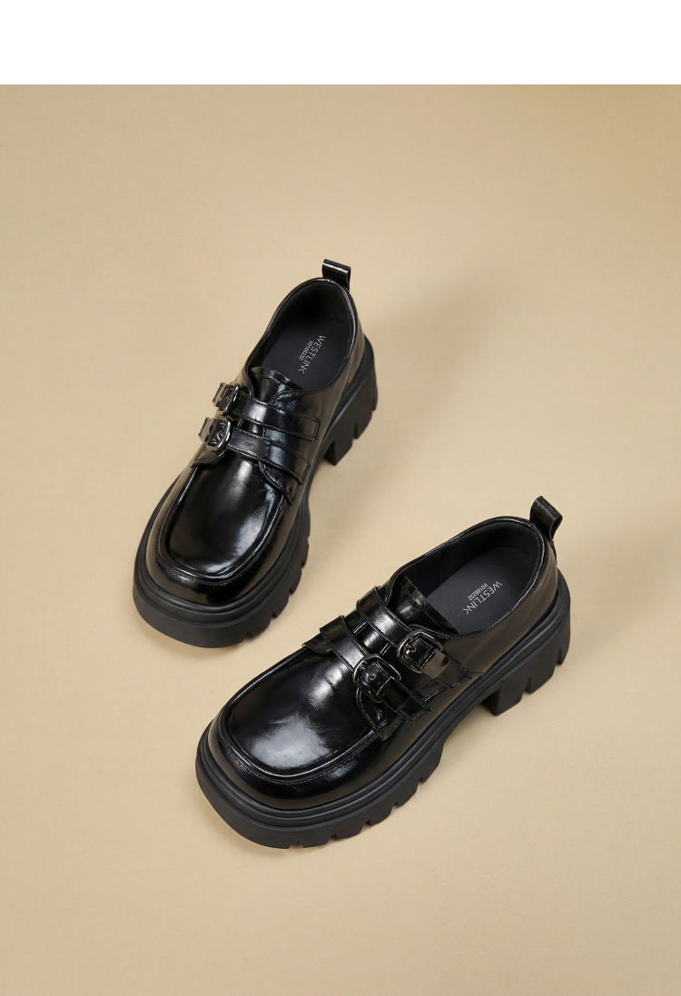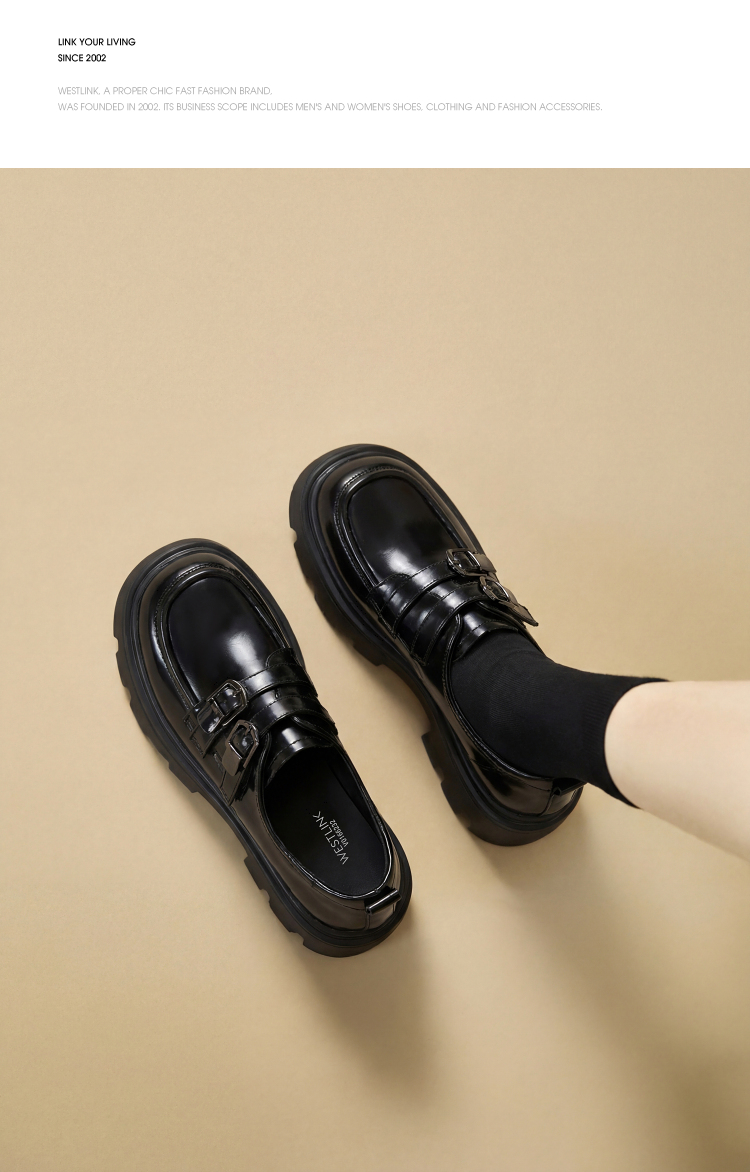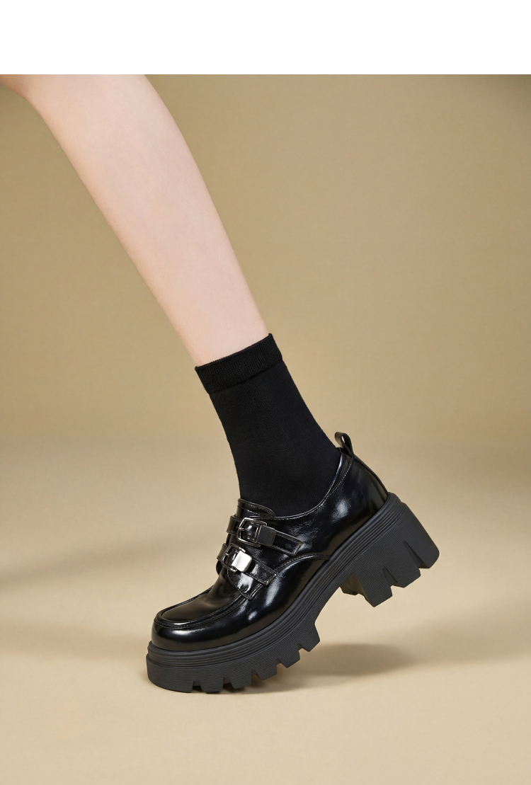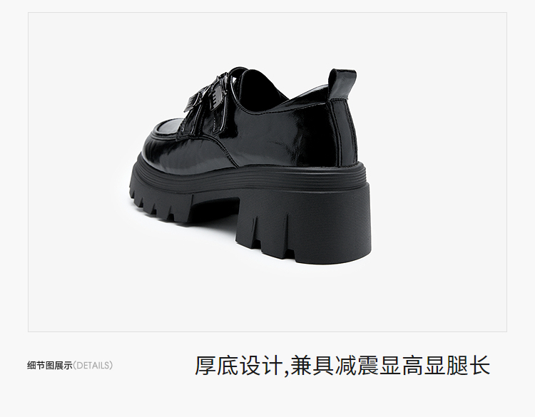 西遇厚底乐福鞋女鞋2026春季新款英伦风小皮鞋金属饰扣厚底JK单鞋V0166232