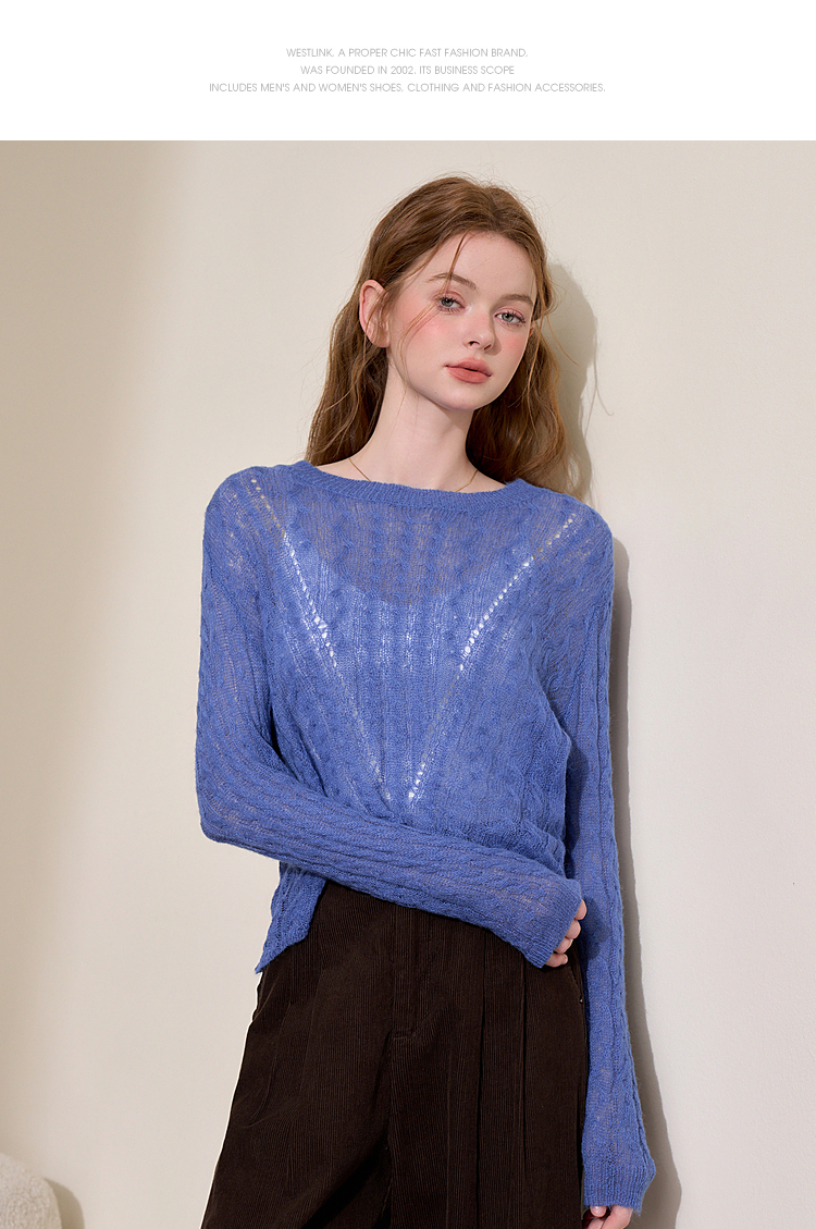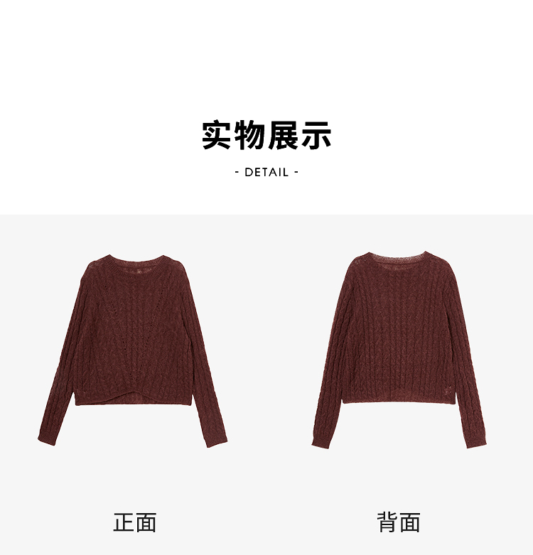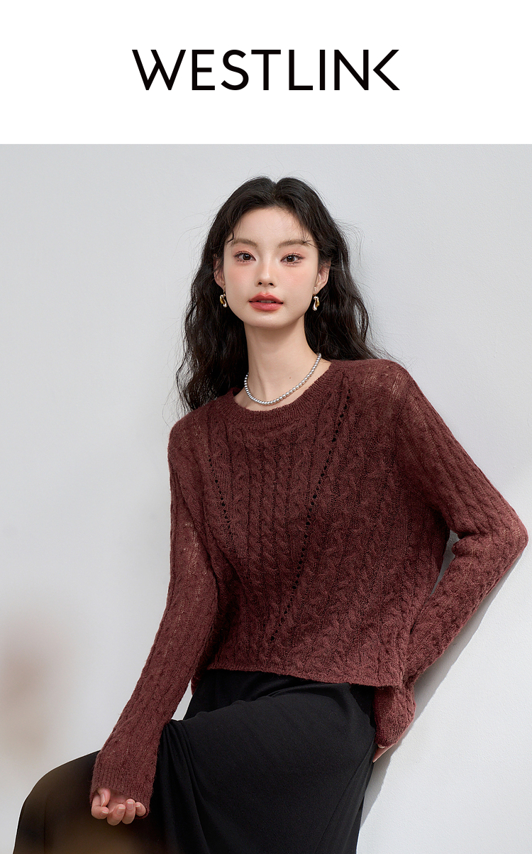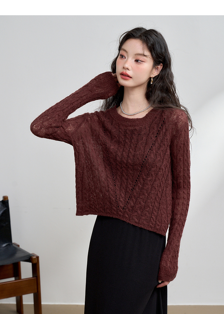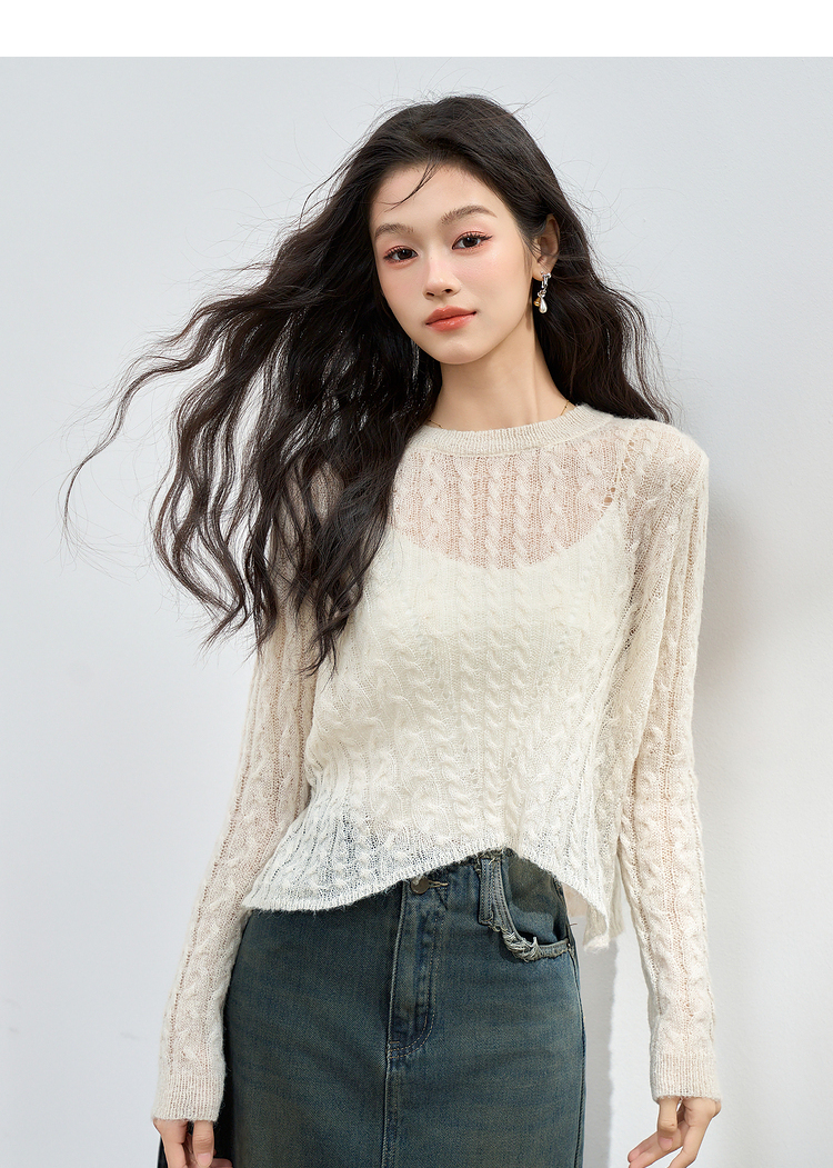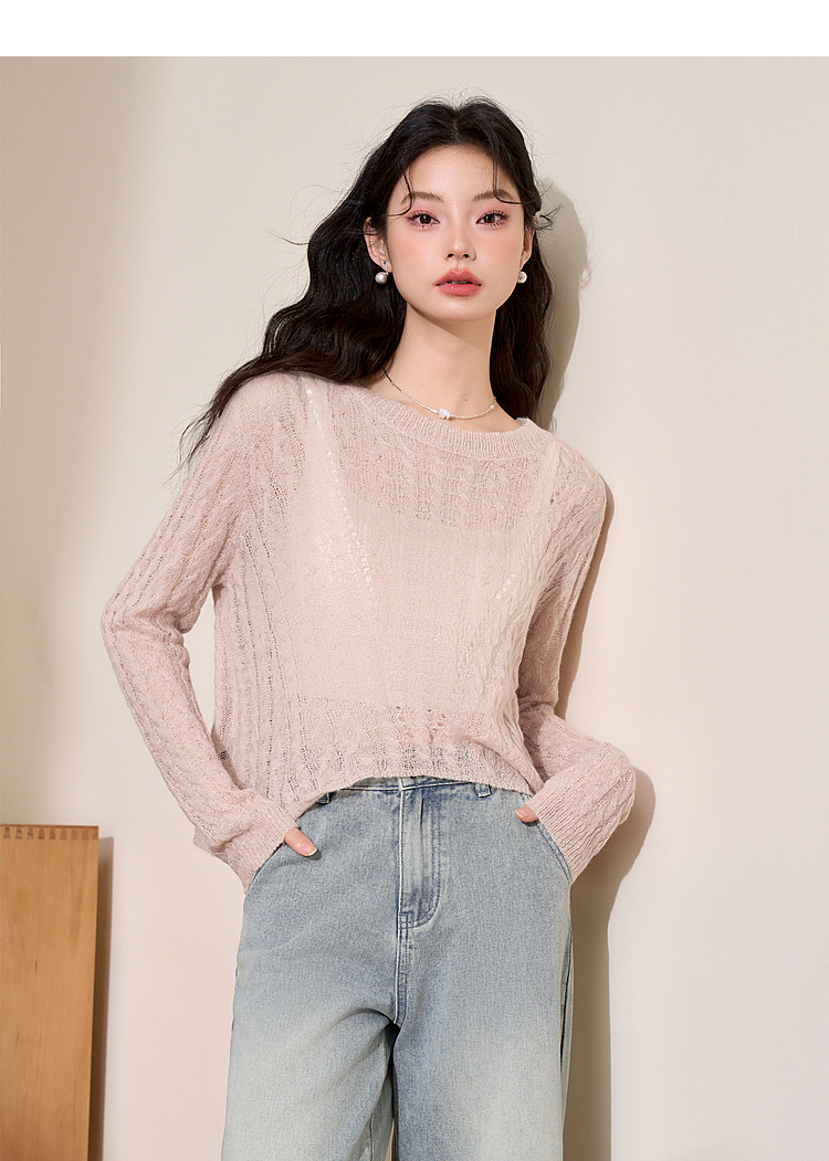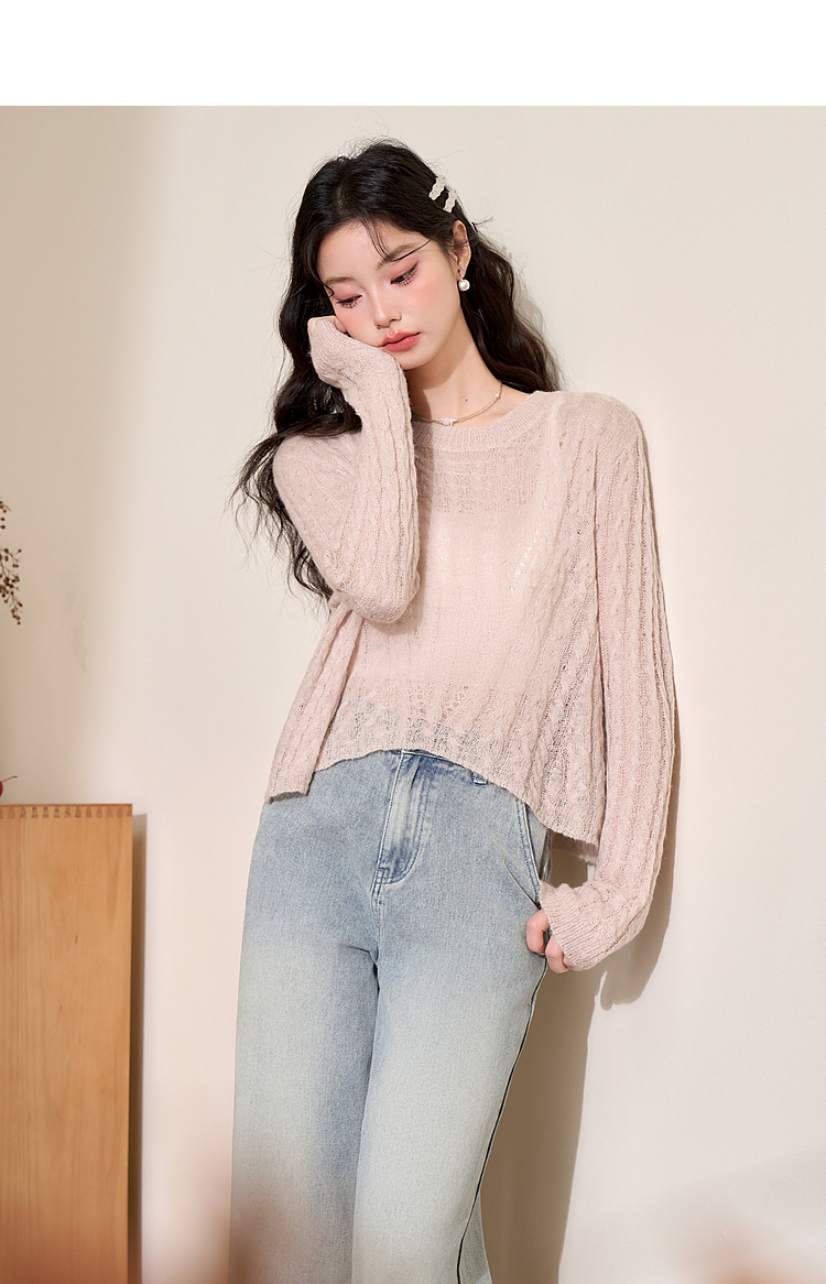 甜美温柔慵懒感长袖圆领针织衫女轻薄短款罩衫毛衣V0042881