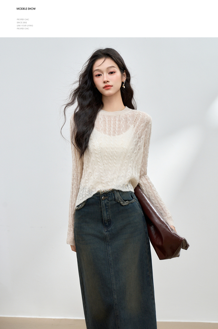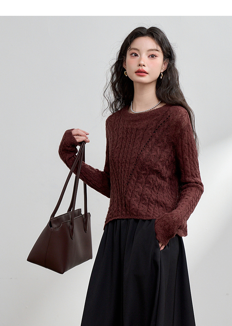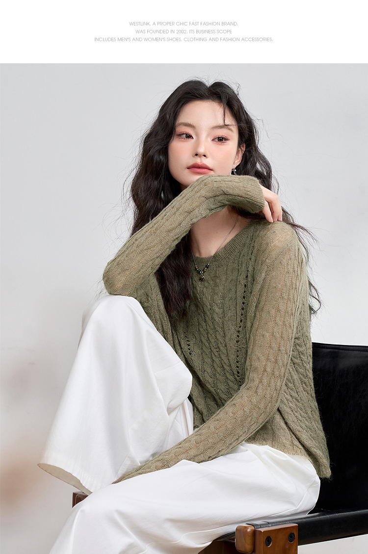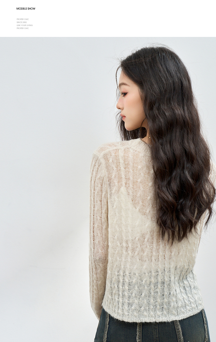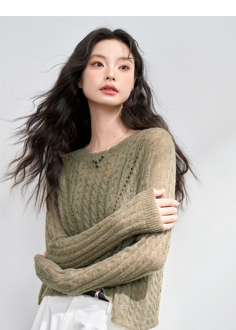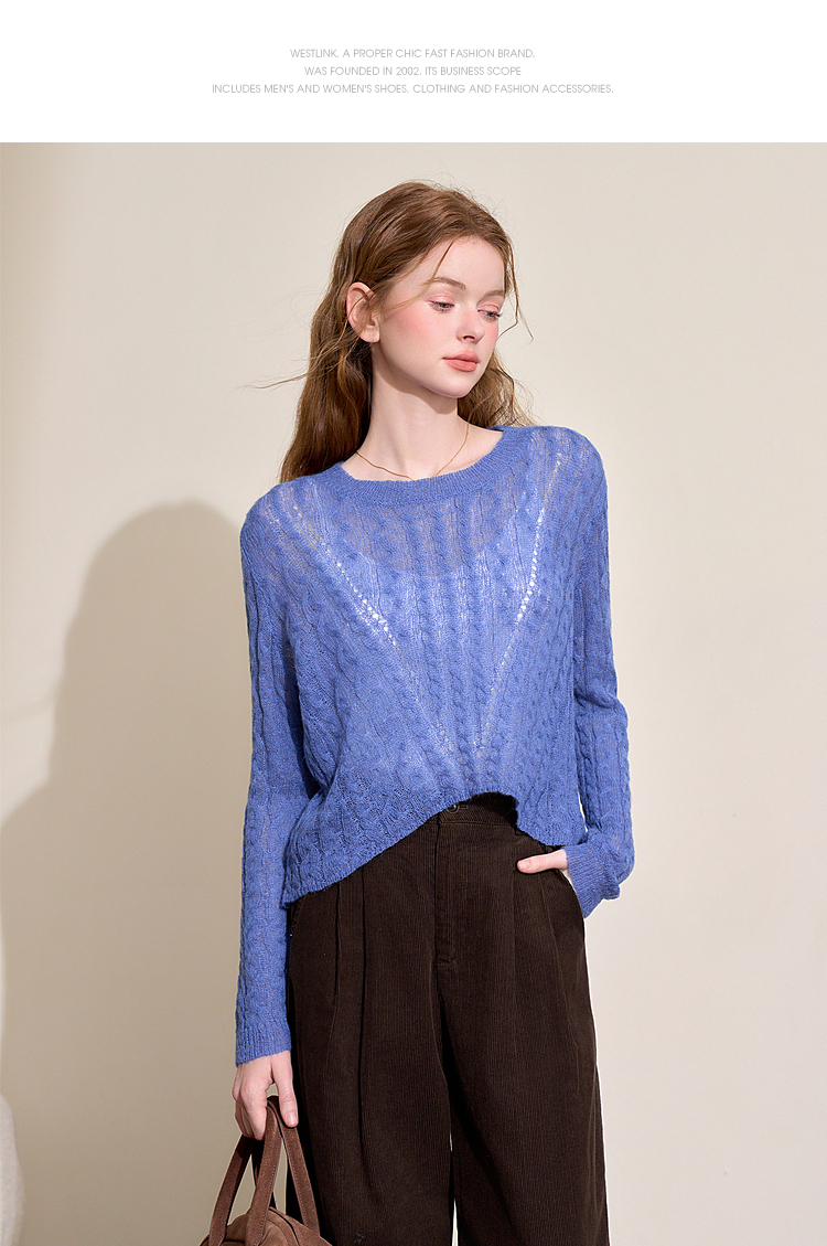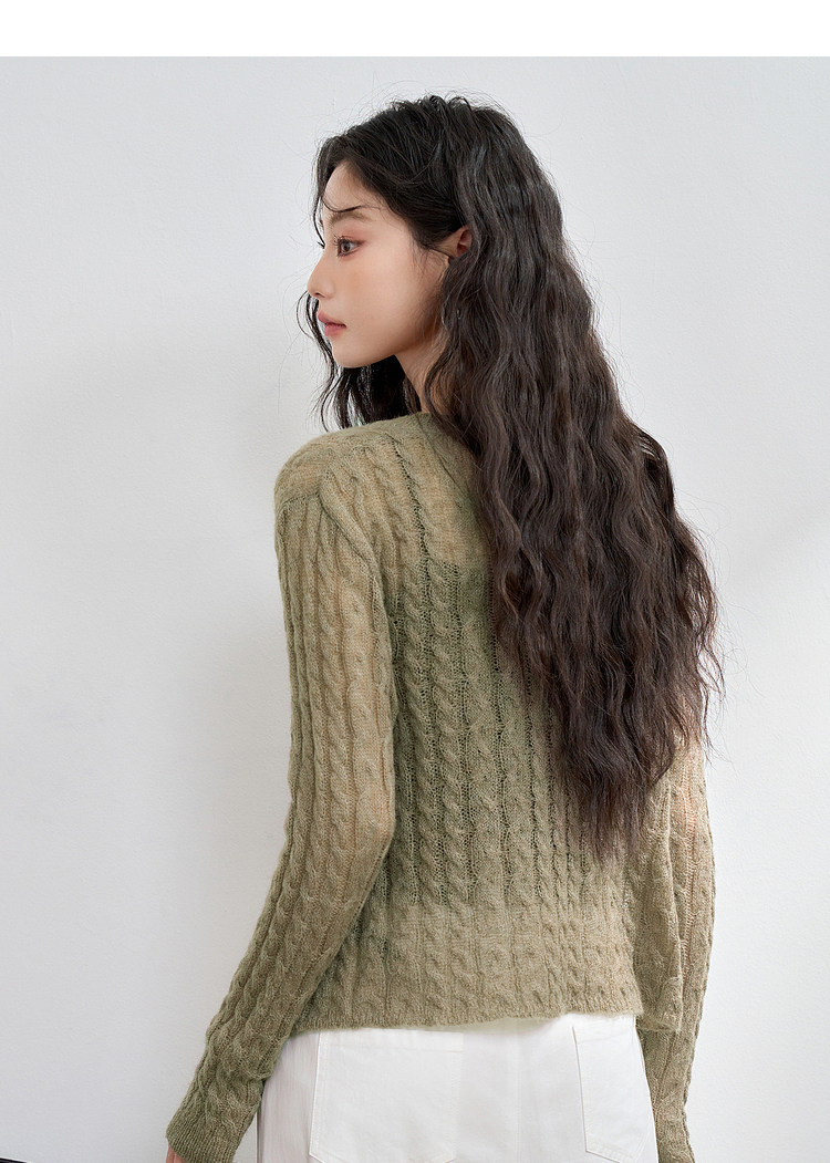 甜美温柔慵懒感长袖圆领针织衫女轻薄短款罩衫毛衣V0042881