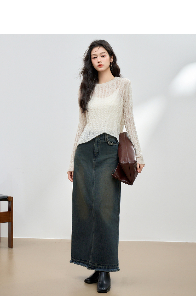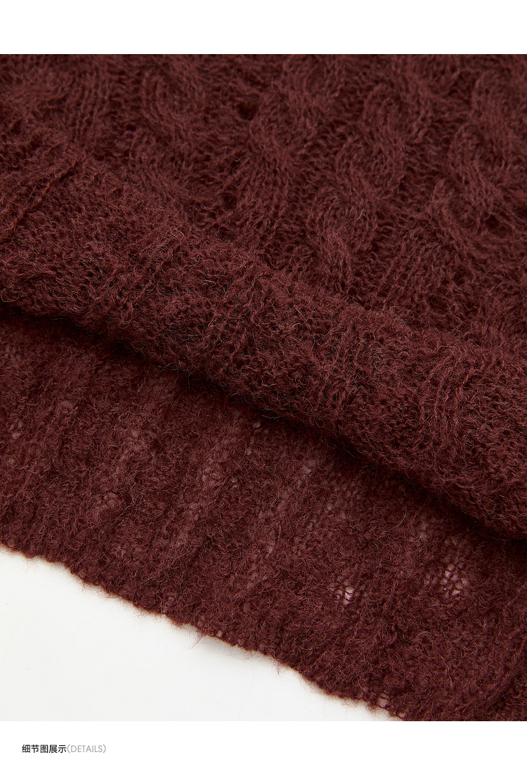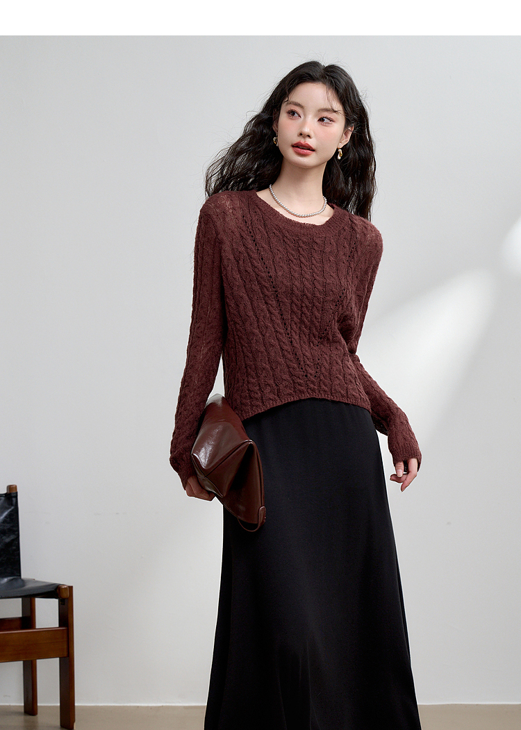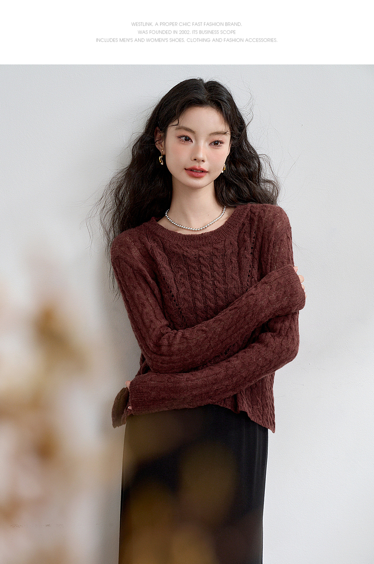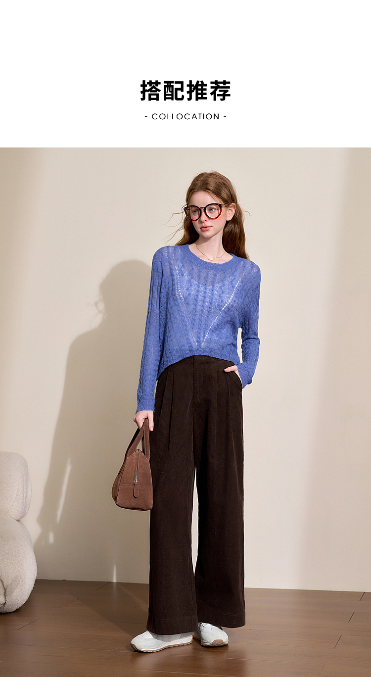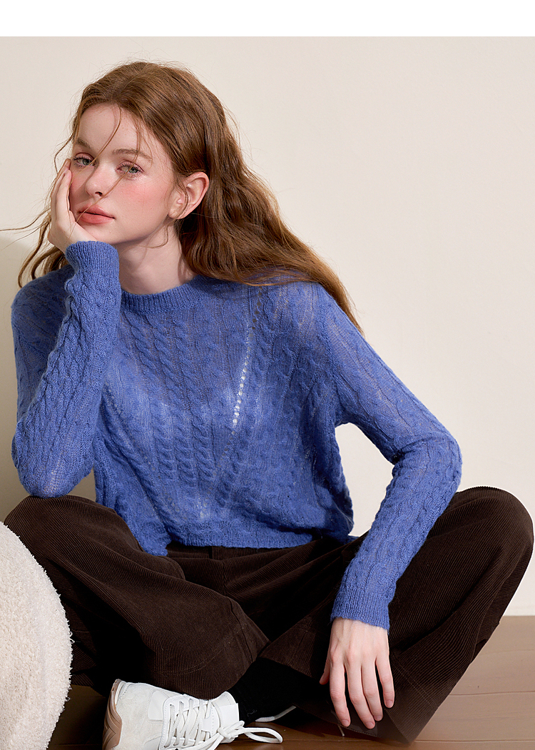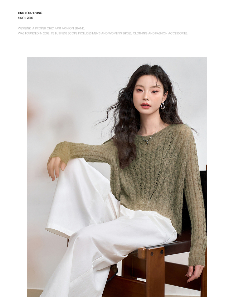 甜美温柔慵懒感长袖圆领针织衫女轻薄短款罩衫毛衣V0042881