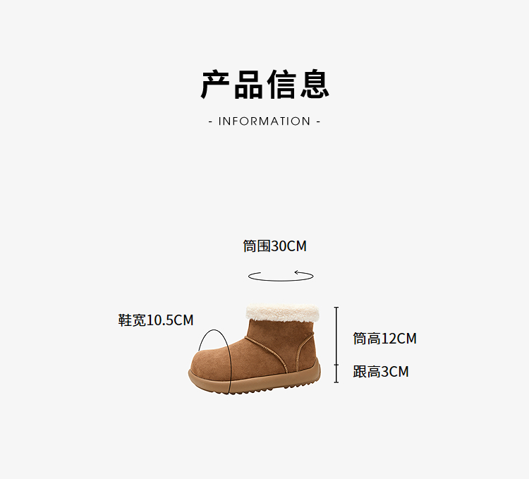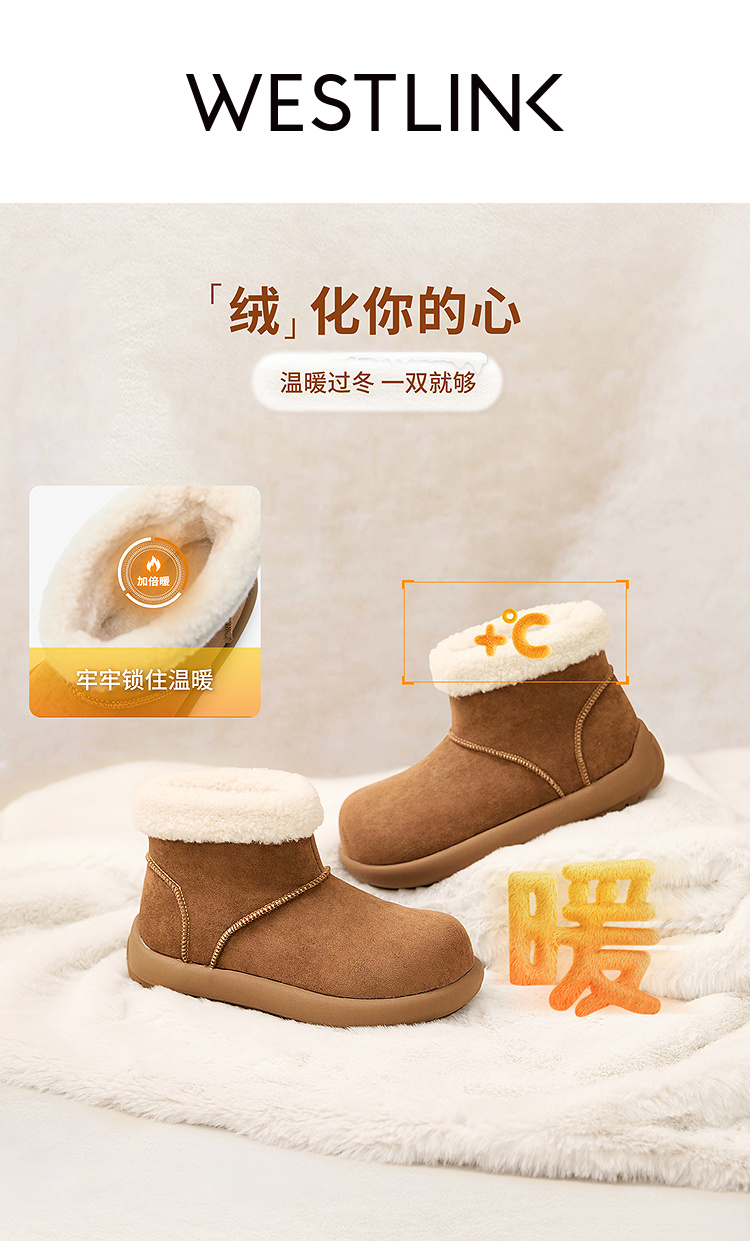 西遇厚底雪地靴女冬新款可爱卡皮巴拉棉鞋保暖加绒毛毛勃肯鞋V2457335