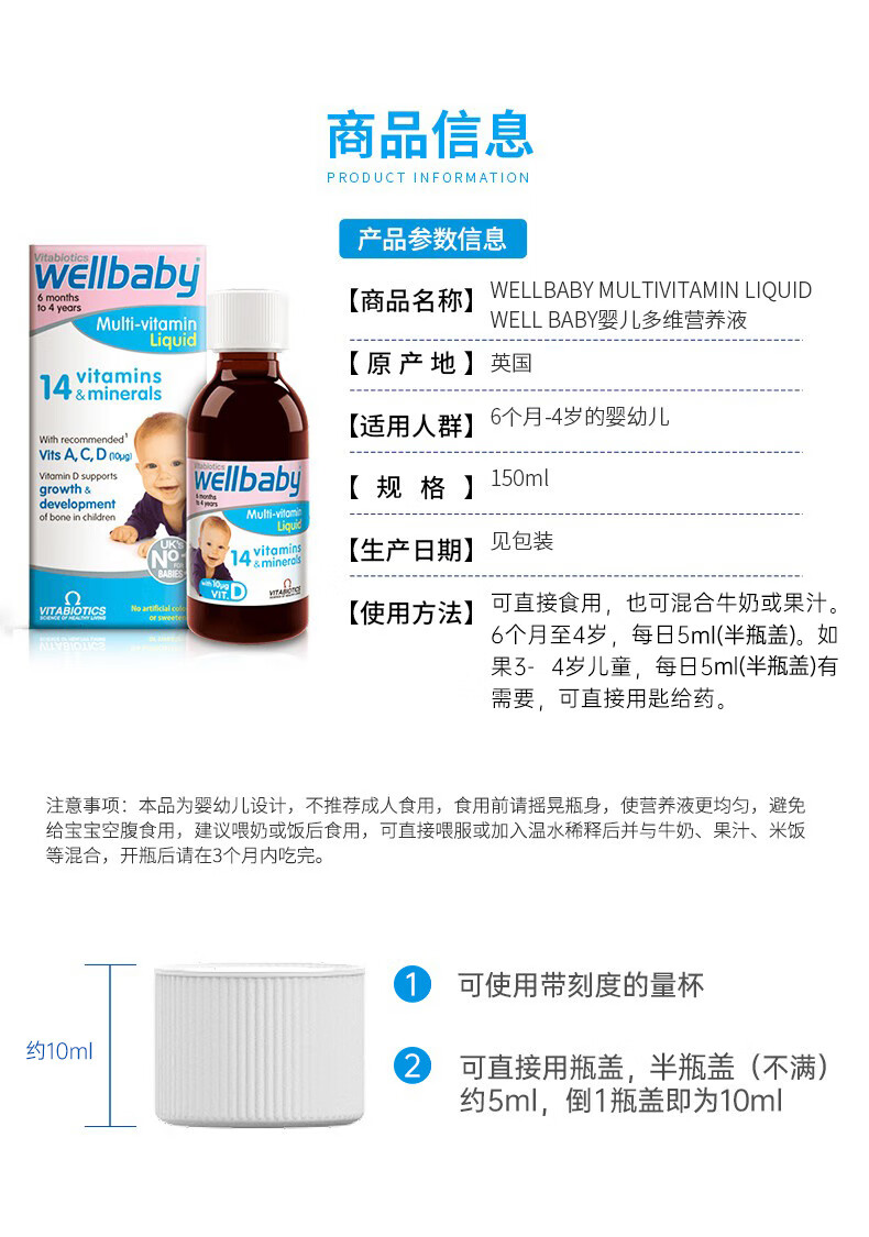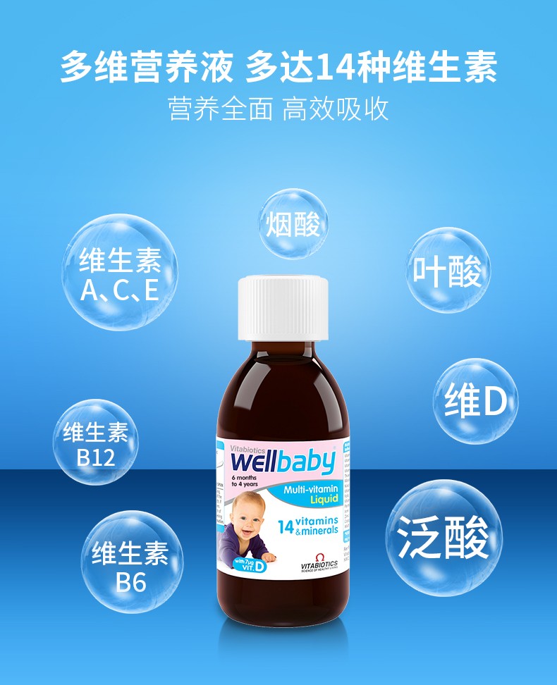 【保税仓】英国 薇塔贝尔vitabiotics 婴儿多维营养液 150ml/瓶 (有效期至2025年7月)