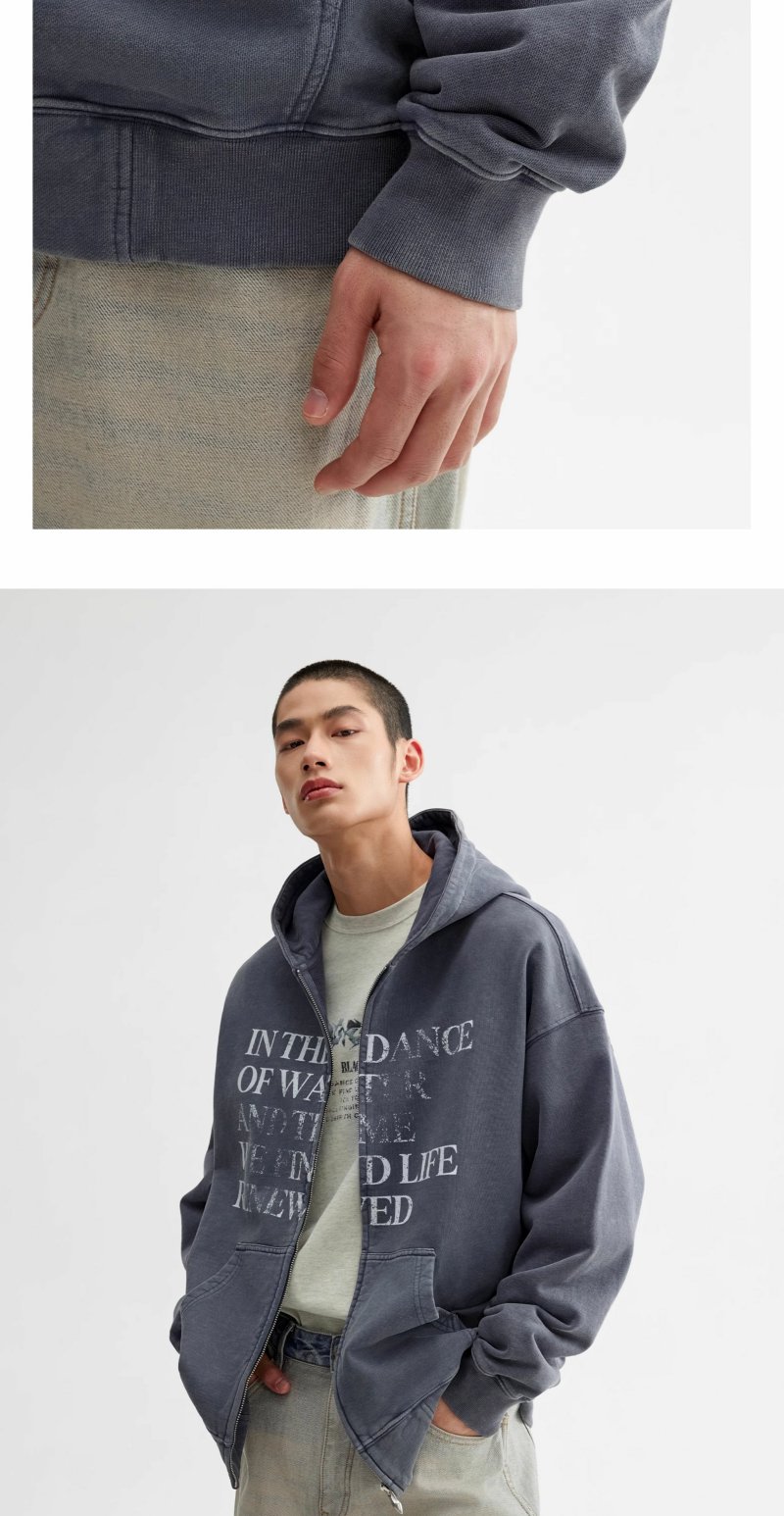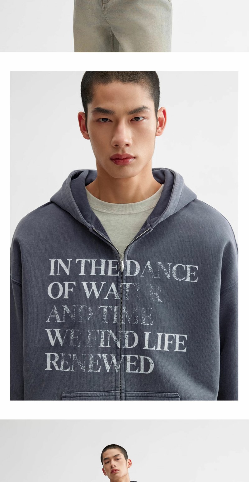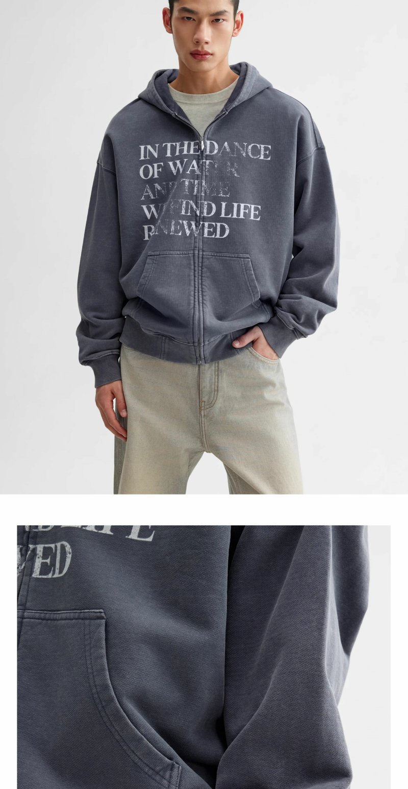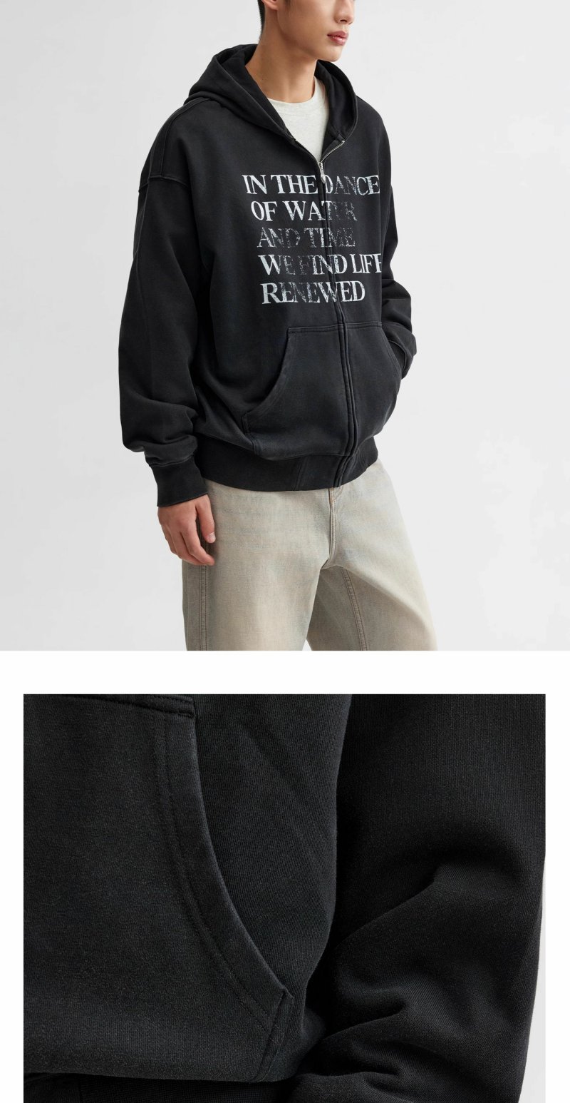 CHINISM赤尘 字母印花水洗开衫卫衣男秋季新款纯棉连帽拉链外套