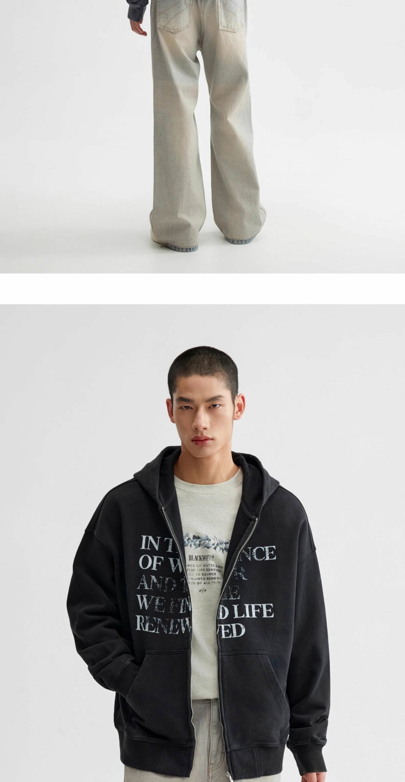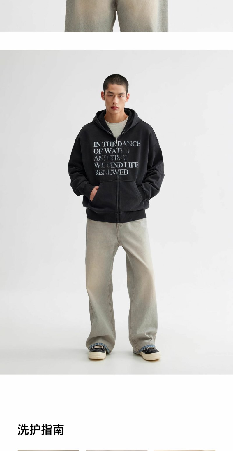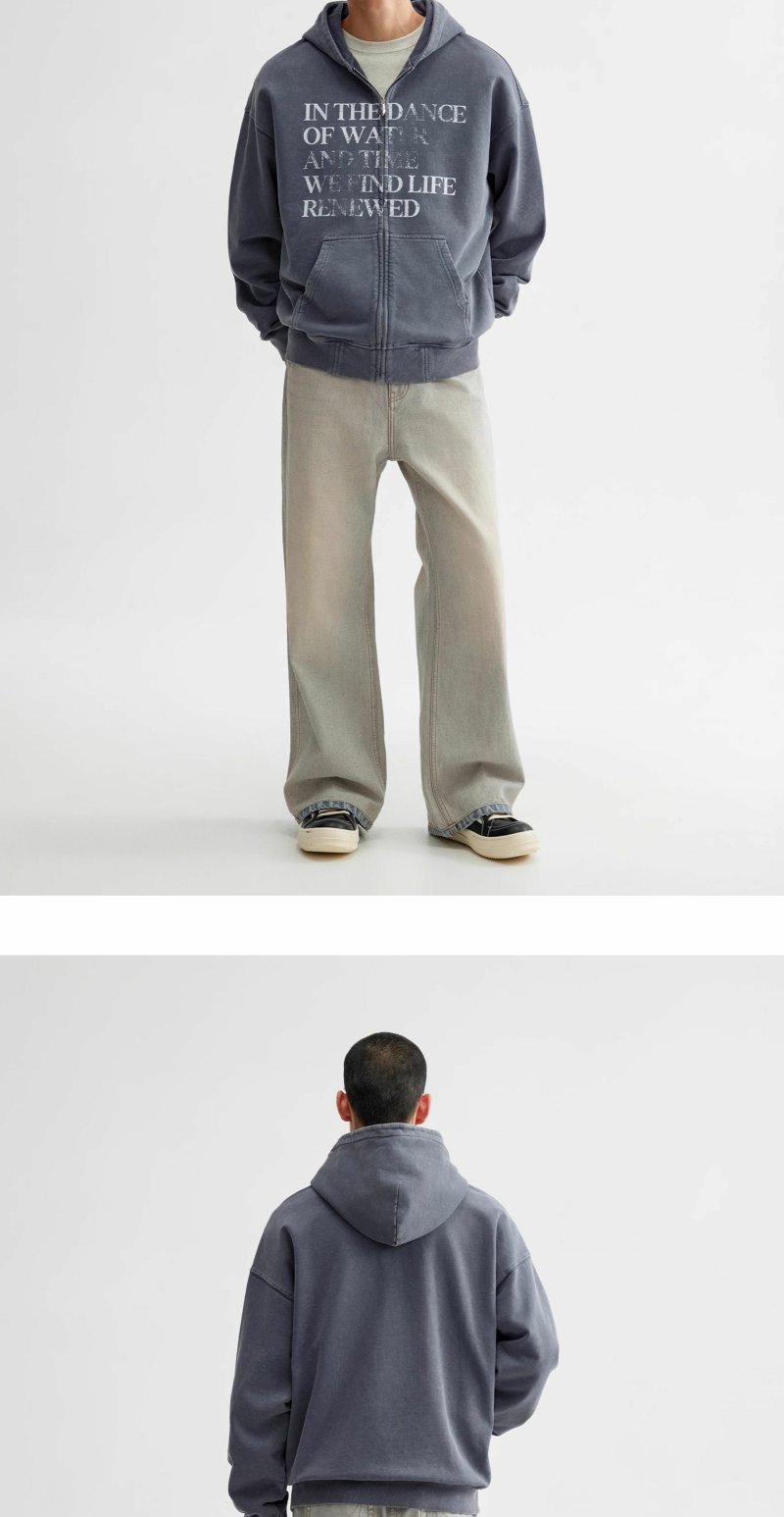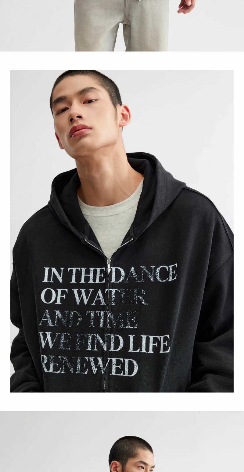CHINISM赤尘 字母印花水洗开衫卫衣男秋季新款纯棉连帽拉链外套