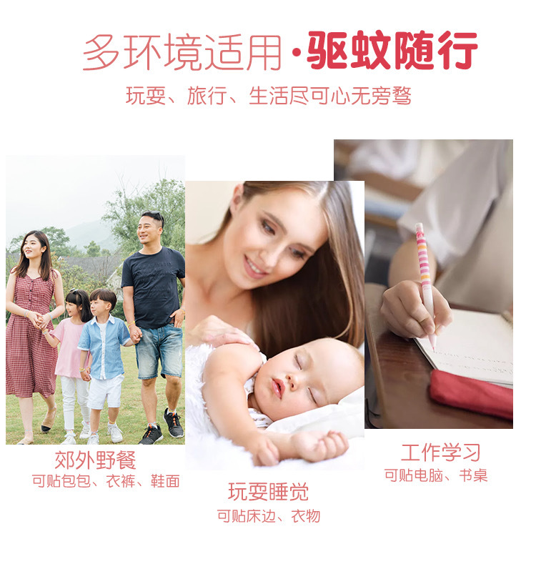 🏻带宝贝外出,也可以贴在推车上,睡觉时贴在床头,都可以利用贴纸散发的香气驱散蚊虫,确保宝贝能时时舒适,提高睡眠质量