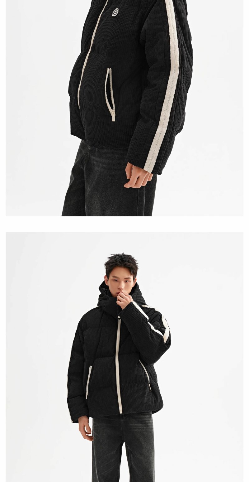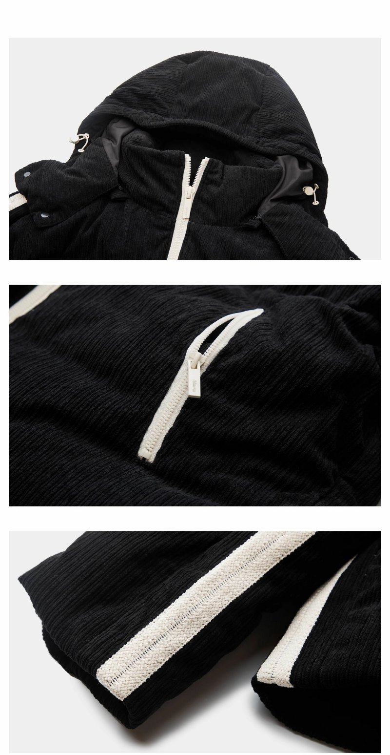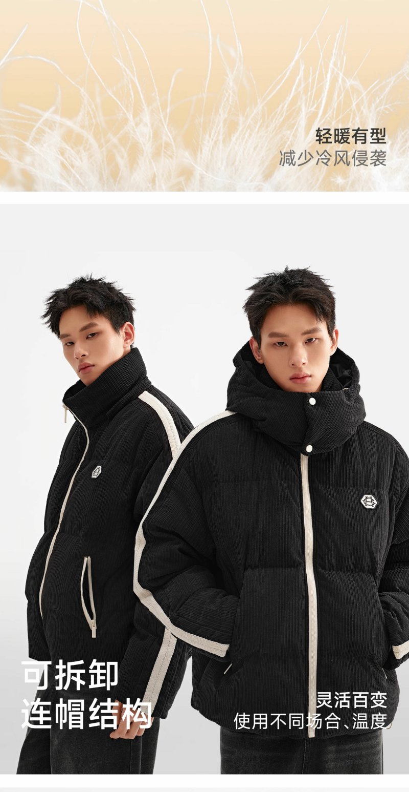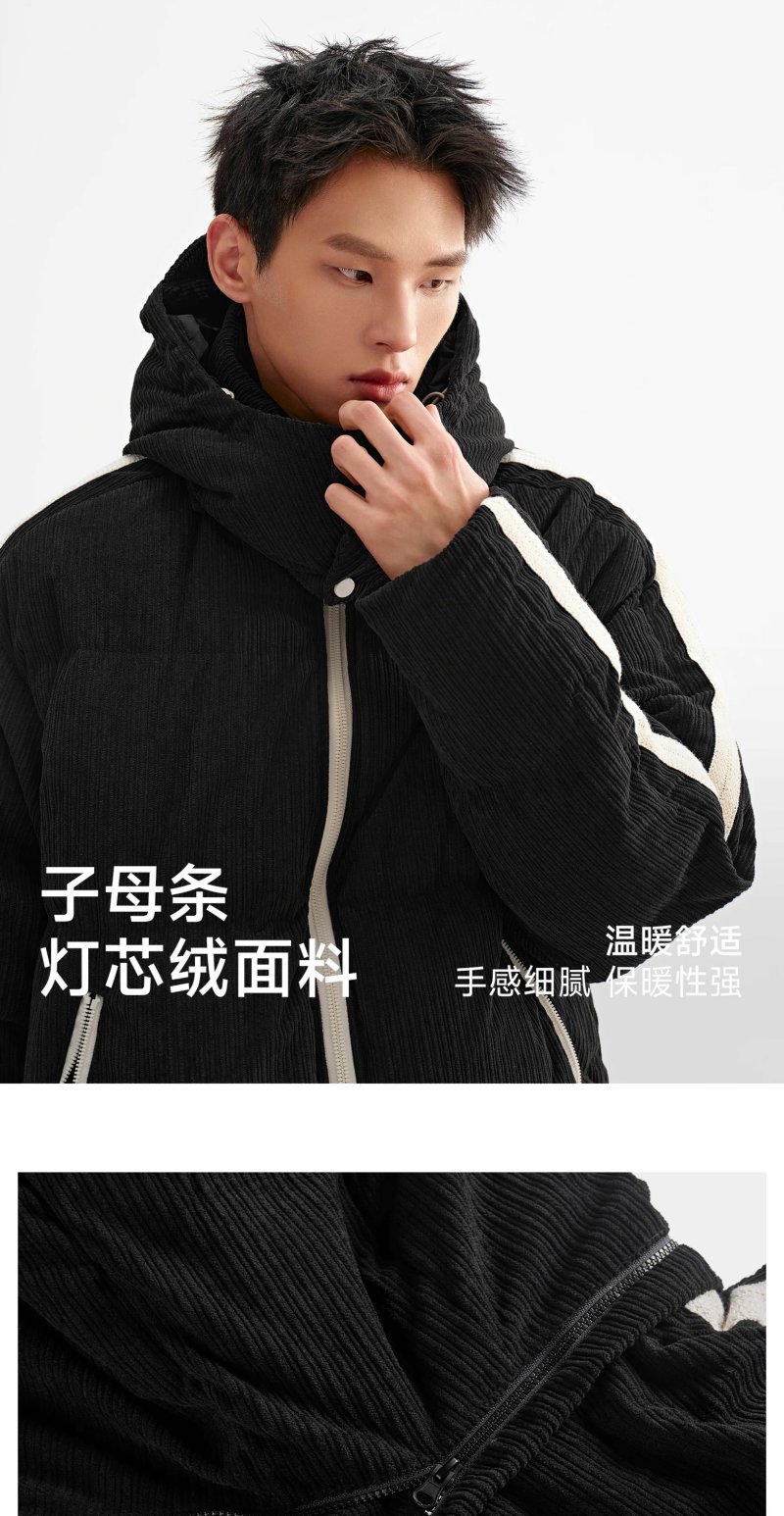 CHINISM赤尘 灯芯绒撞色连帽可拆卸羽绒服男冬季加厚黑色保暖外套