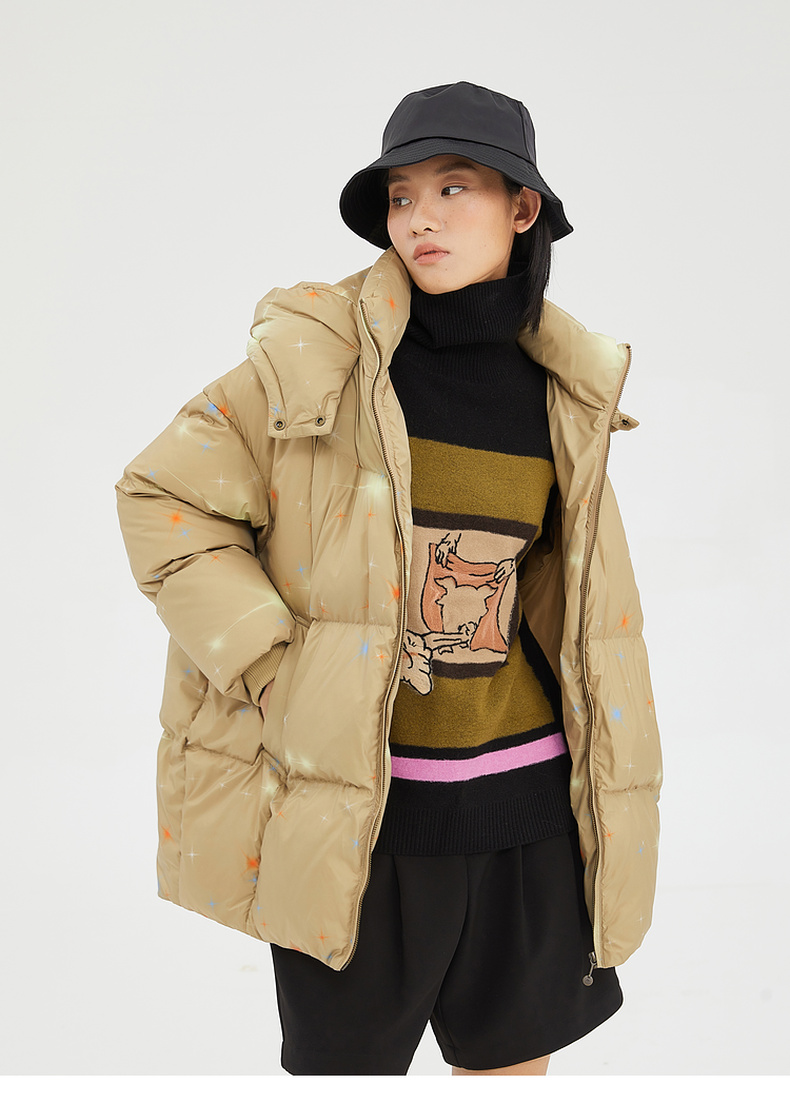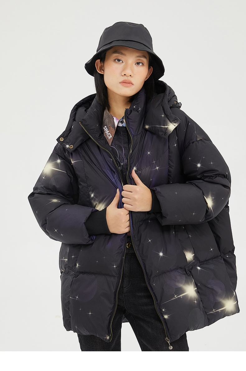 谜底2022冬季新品时尚宽松面包服鸭绒中长款羽绒服女229MY6192