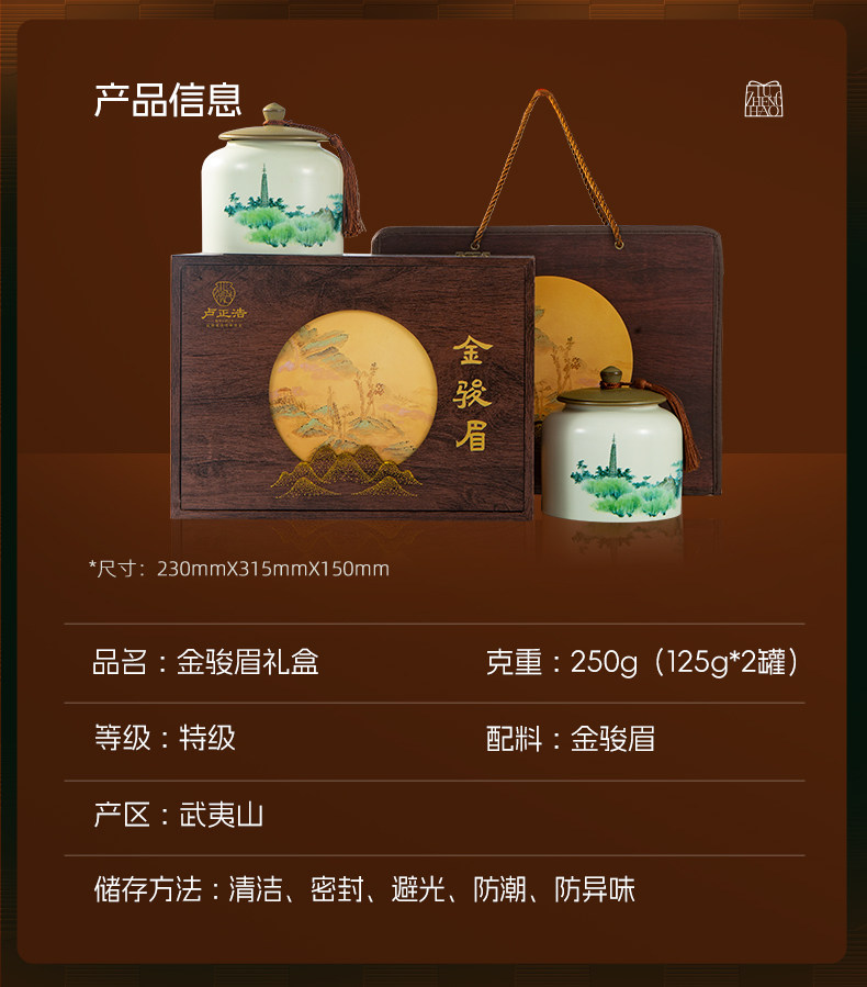卢正浩金骏眉红茶茶叶礼盒特级蜜香武夷山桐木关250g