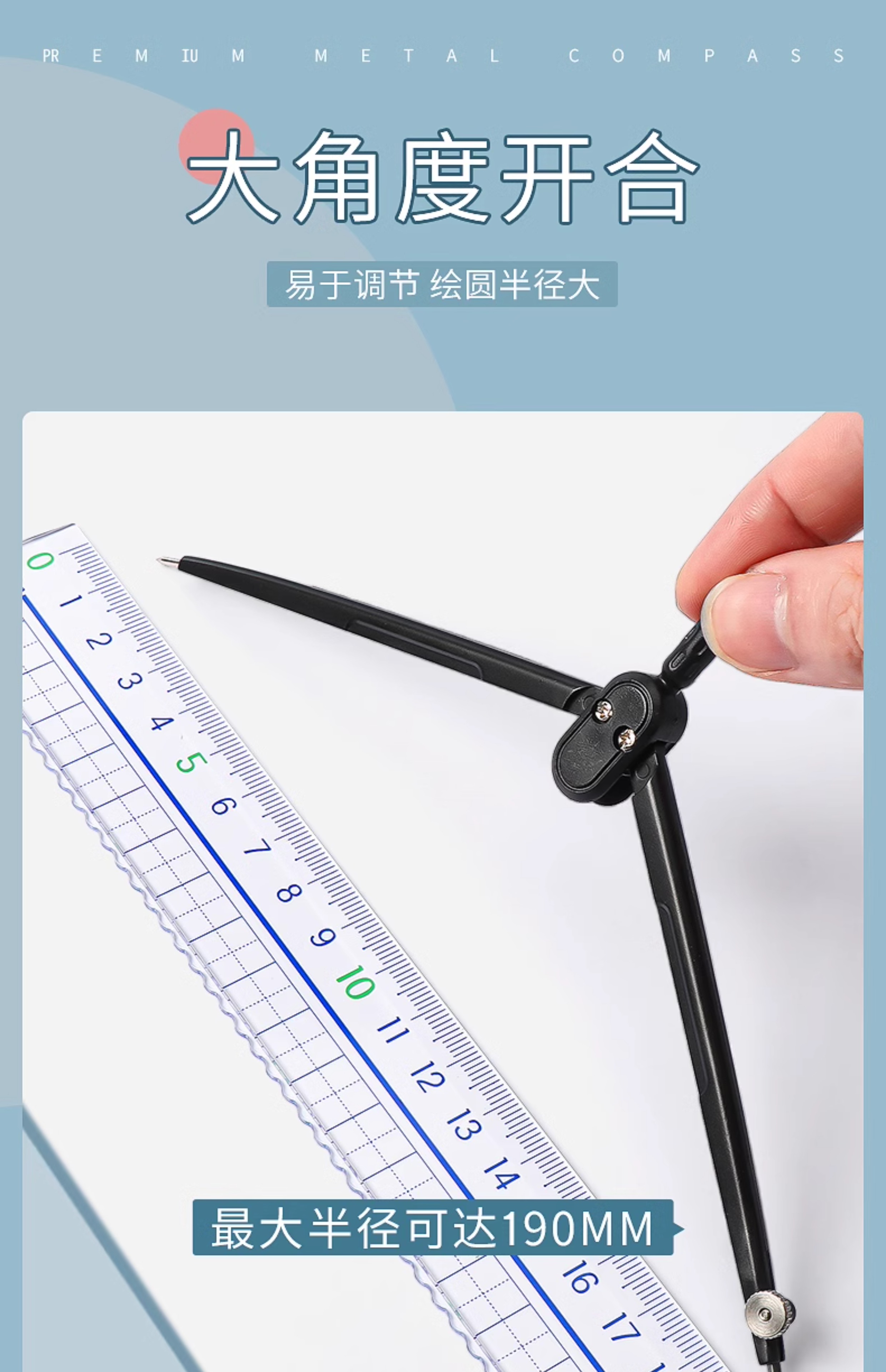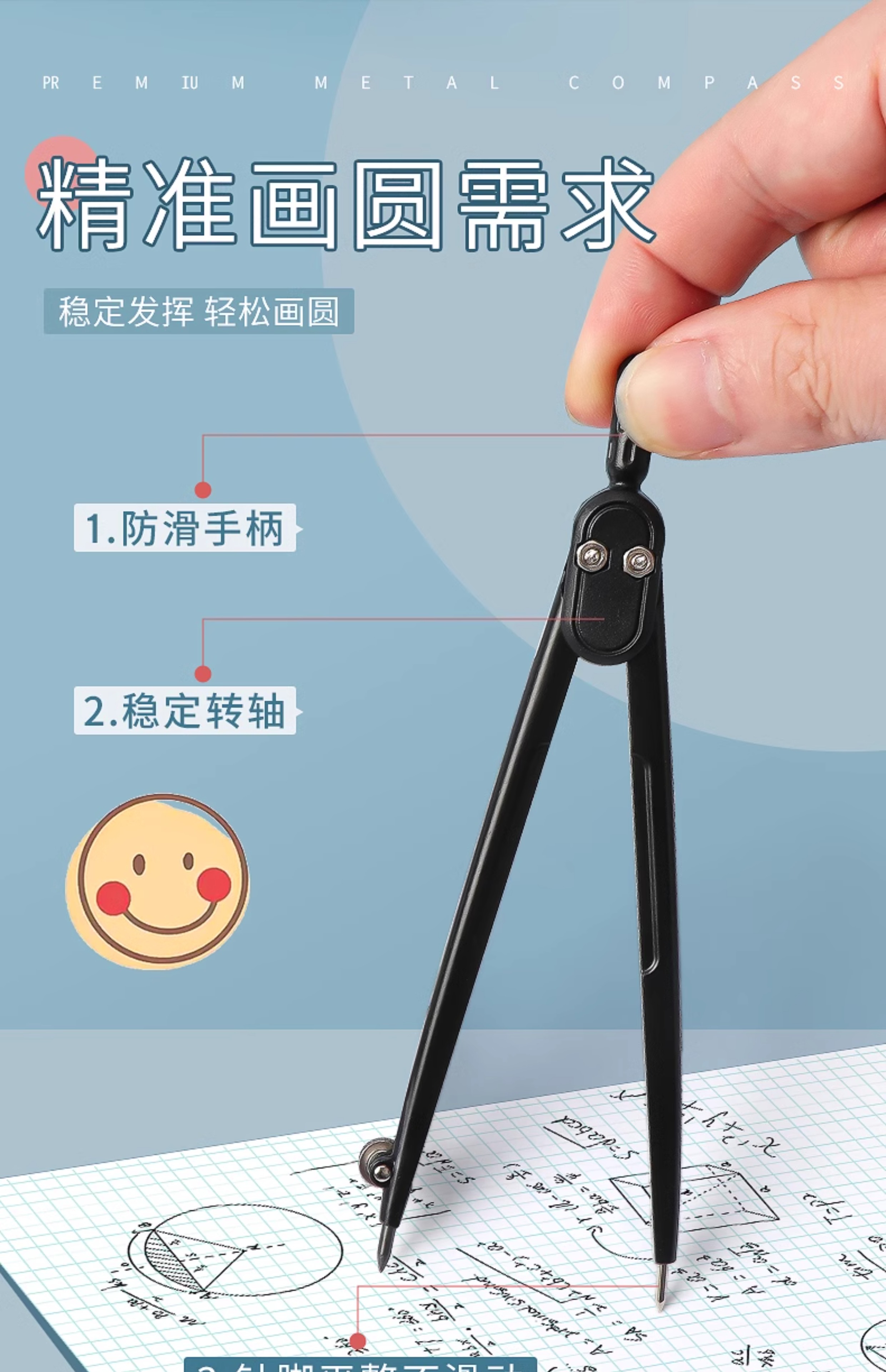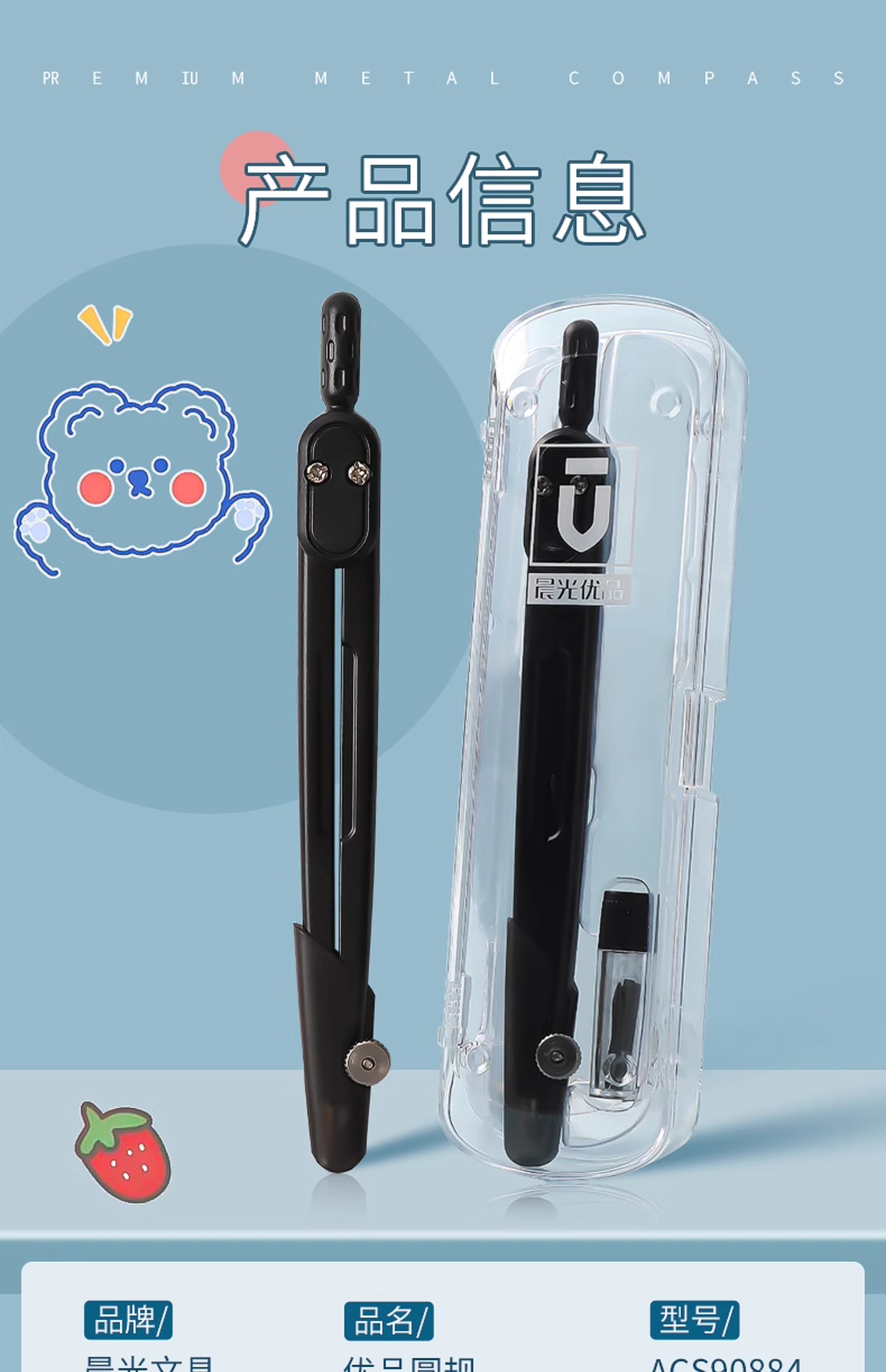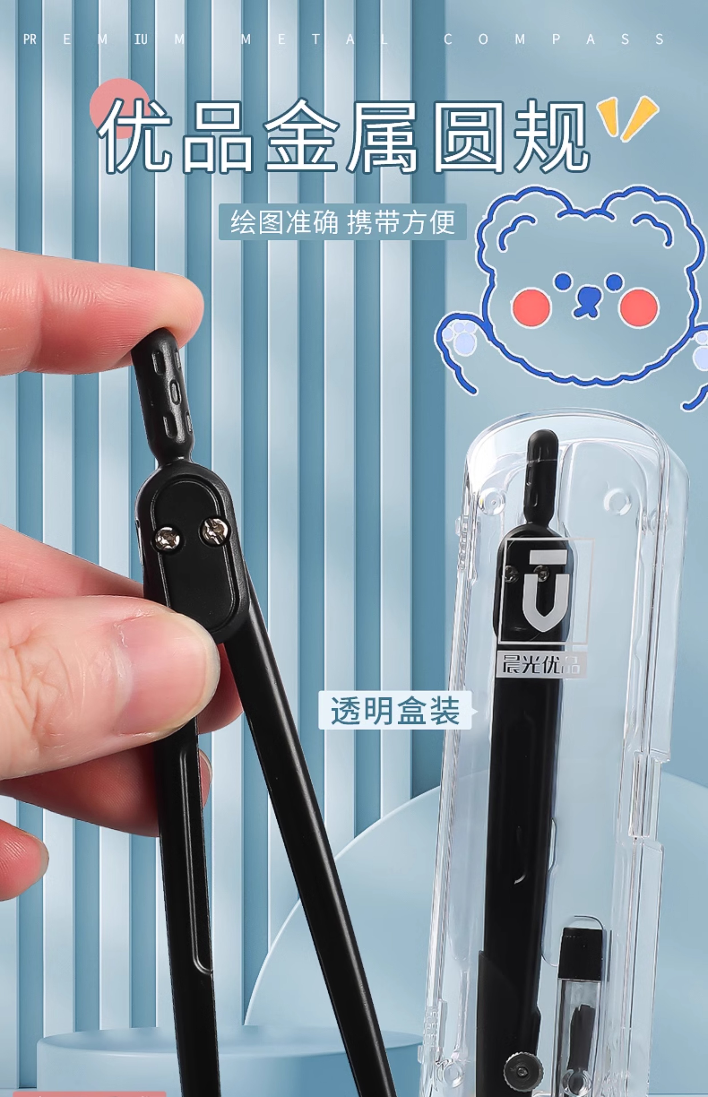 晨光优品金属圆规专业绘图几何考试文具机械制图工具小中高学生用笔式圆规可替换笔芯90884
