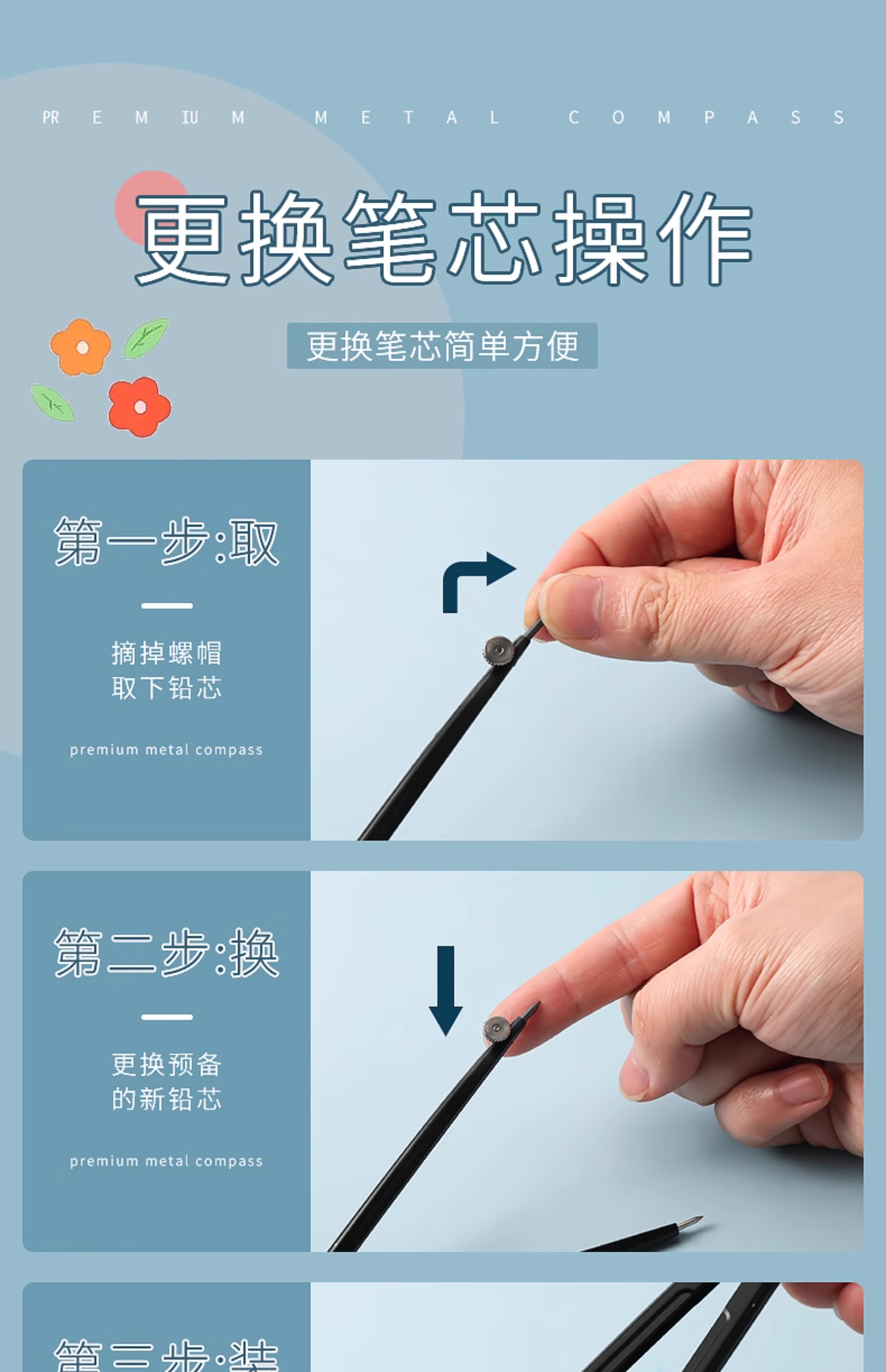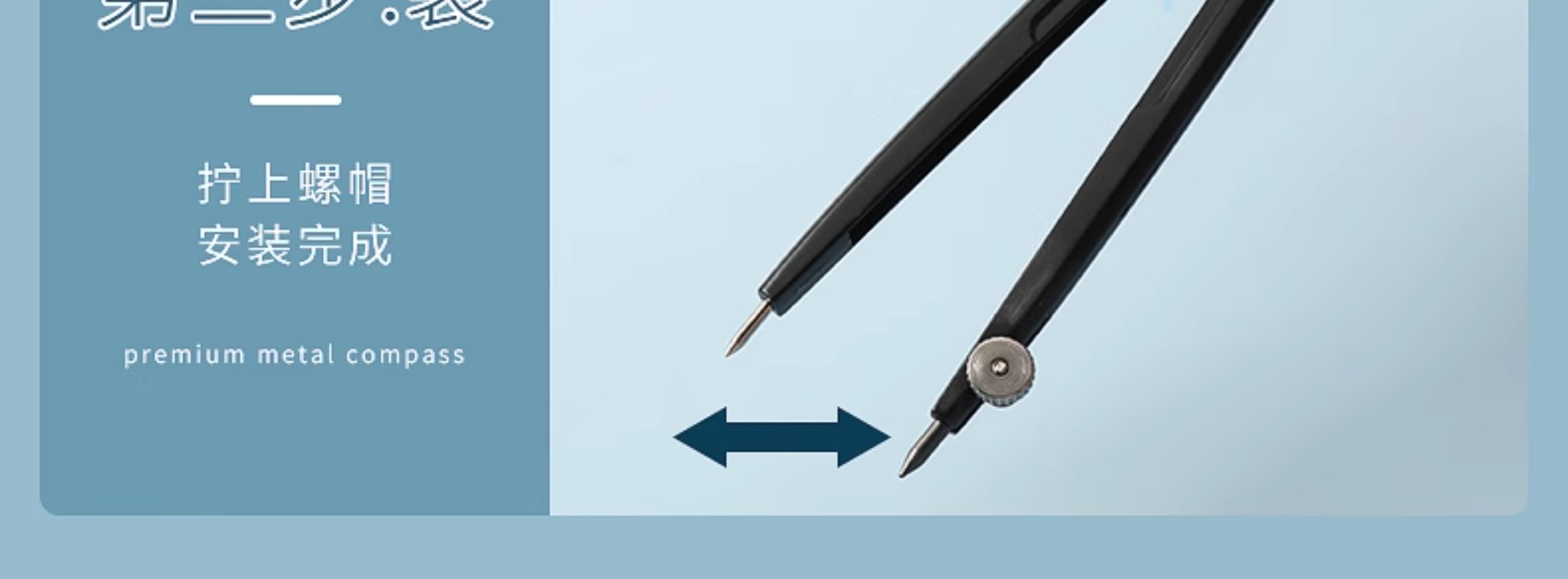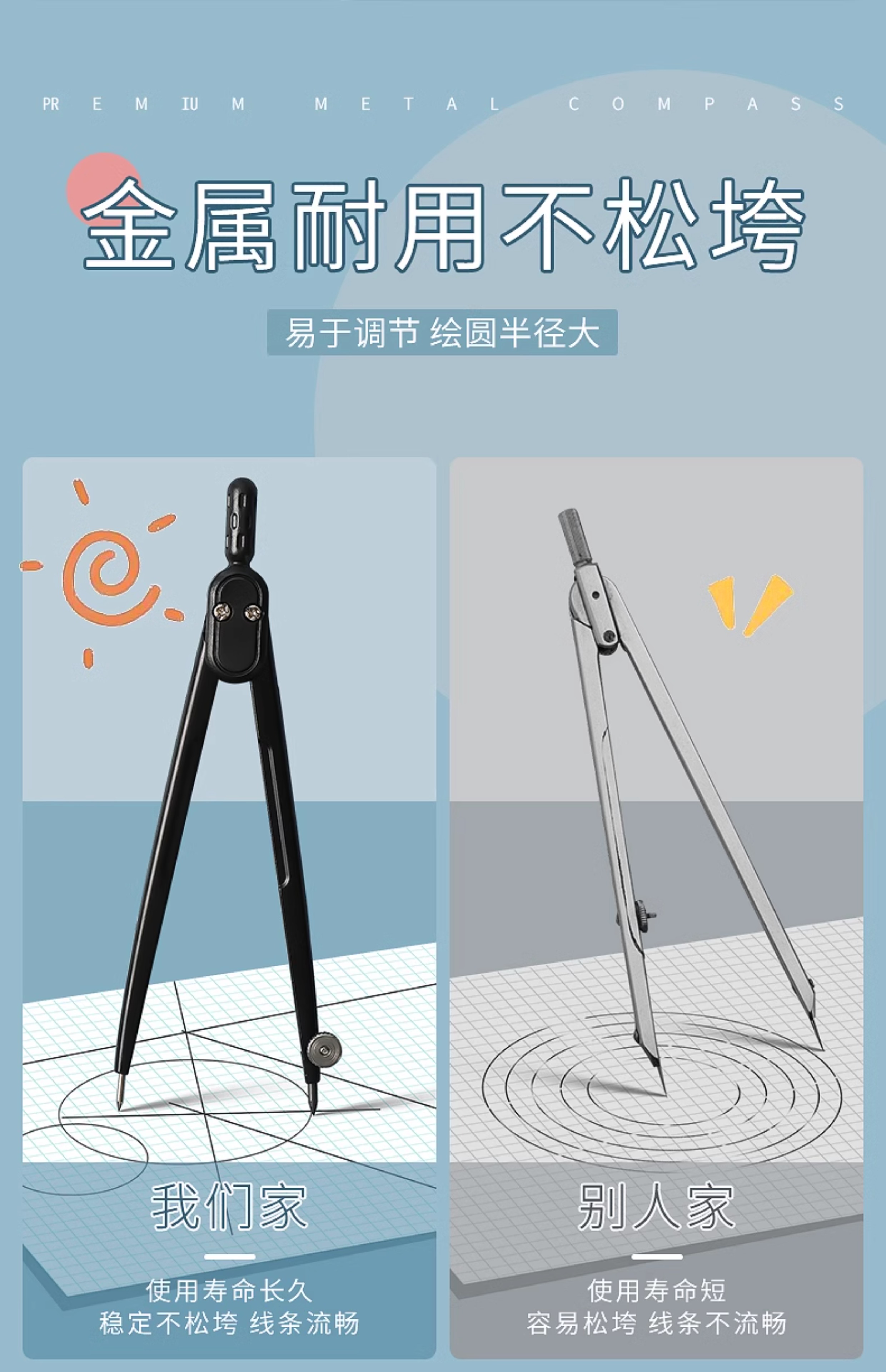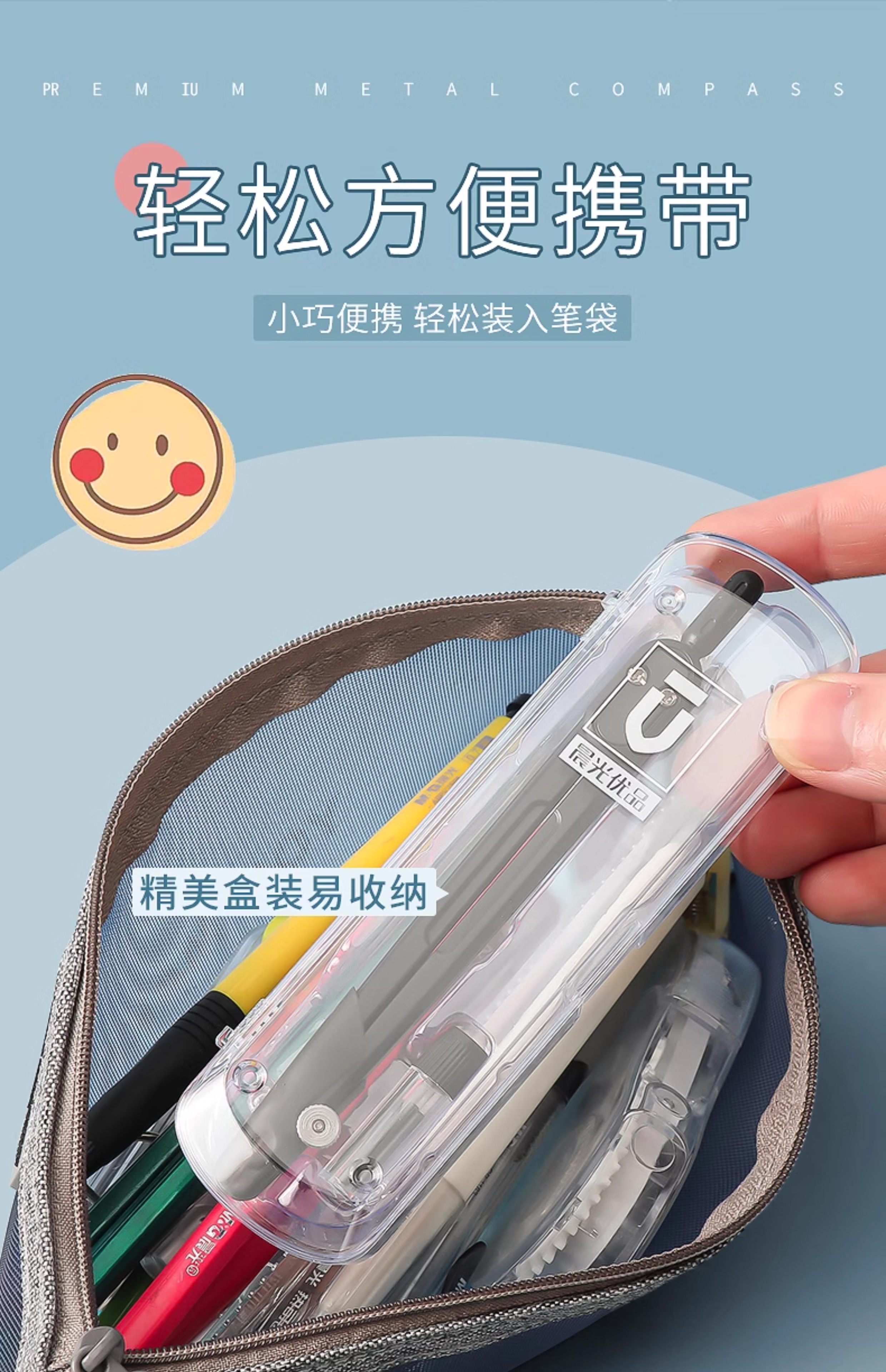 晨光优品金属圆规专业绘图几何考试文具机械制图工具小中高学生用笔式圆规可替换笔芯90884