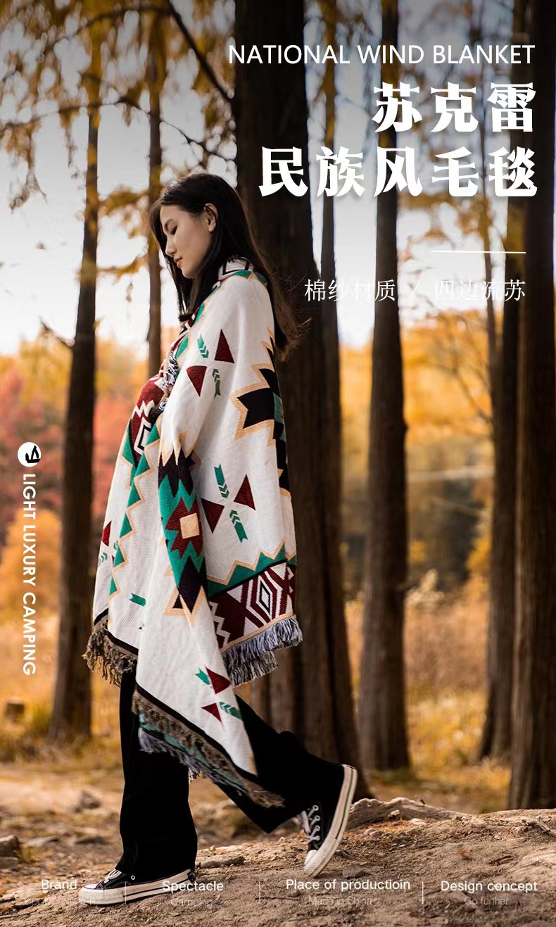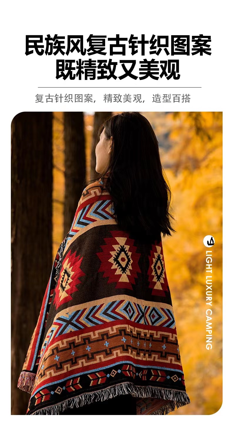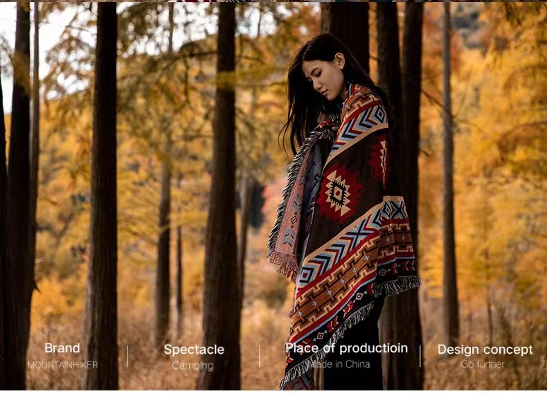 【户外好物丨华小贝多功能户外露营毯&三层加厚防水野餐垫】选用棉纱材质,民族风复古针织图案,流苏边设计精致美观,造型百搭。三层棉加厚野餐垫,采用210D面料,隔潮透气易打理,平整厚实还舒适,多场景可用