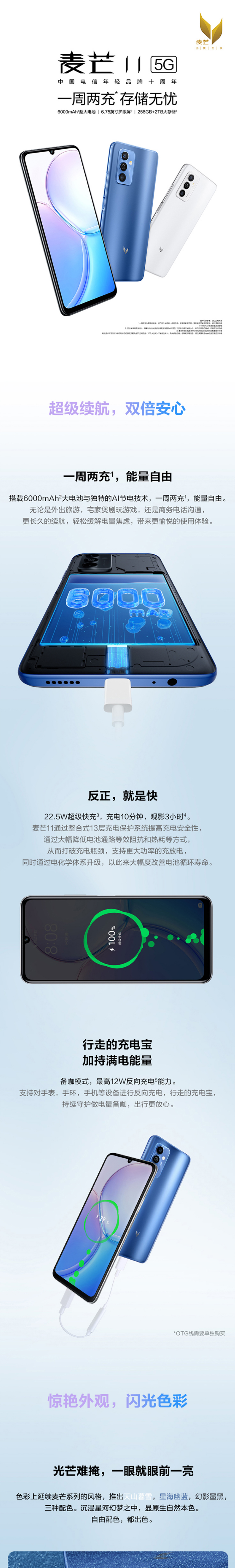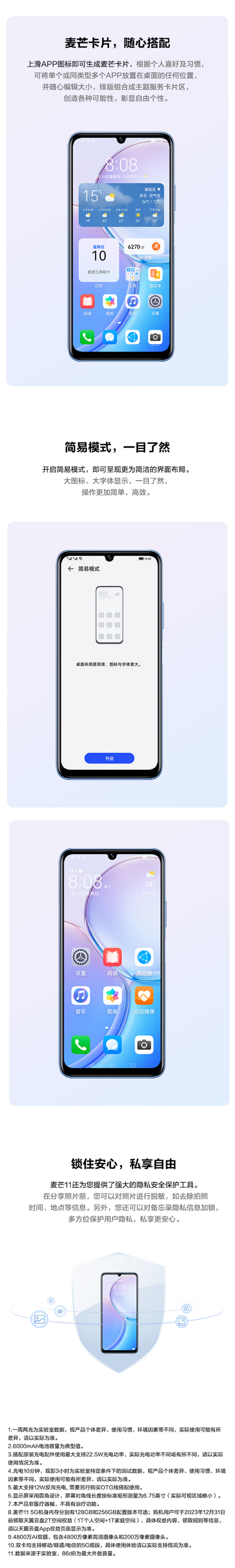 华为麦芒 11 5G全网通 22.5W超级快充 6000mAh智能长续航 6.75英寸护眼屏 8GB+128GB