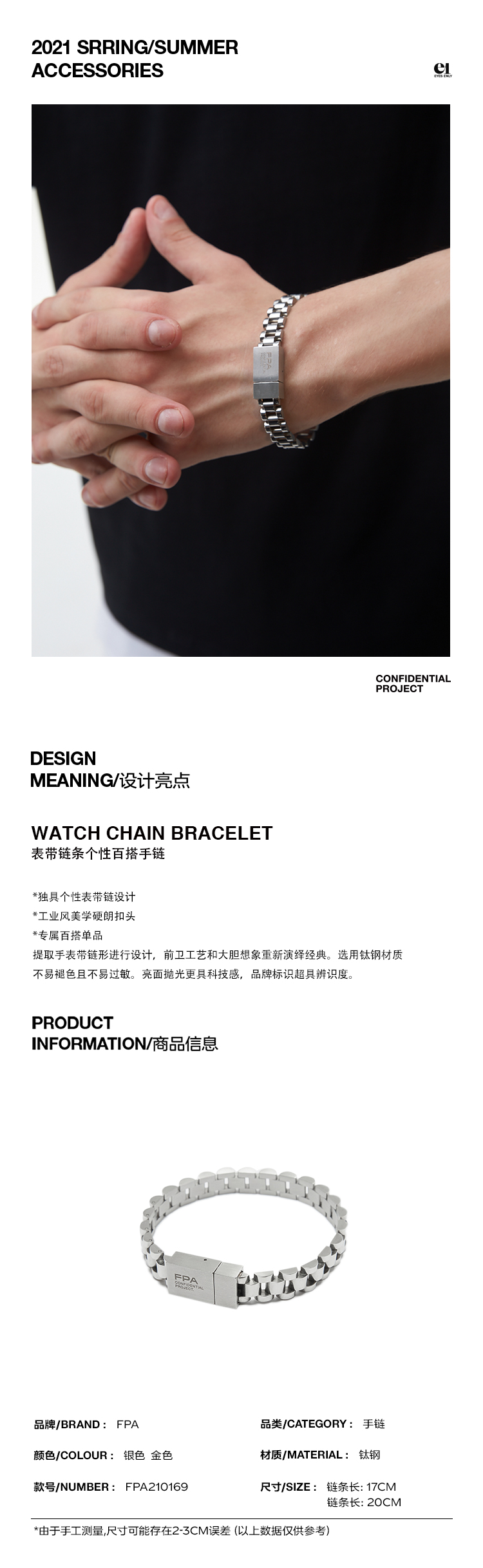 FPA(VENGETICE) 表带链条个性百搭手链 国潮嘻哈hiphop男