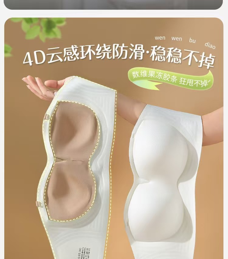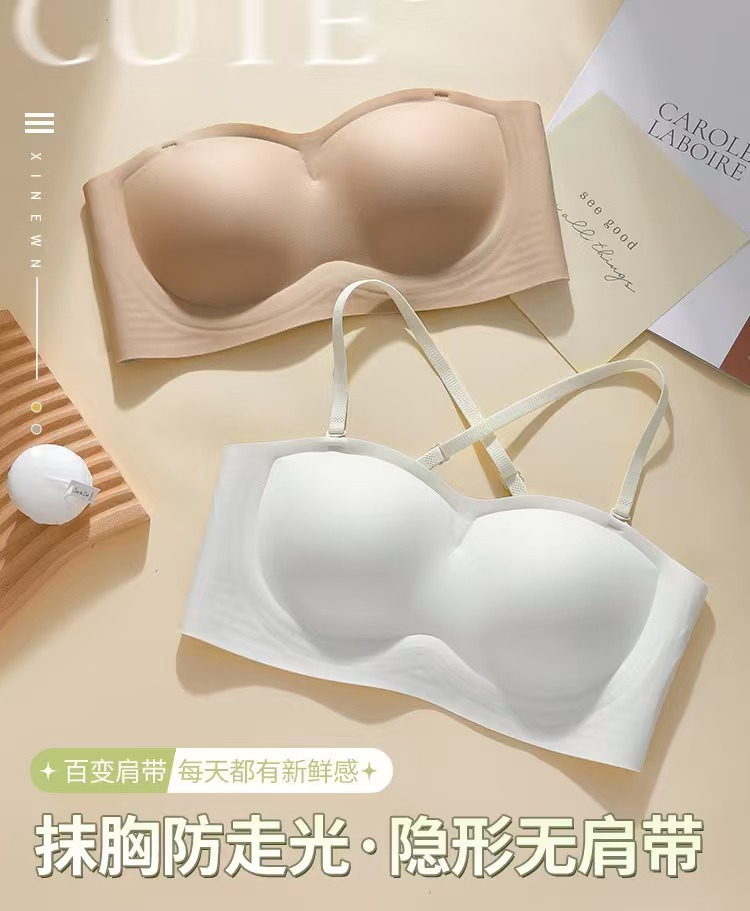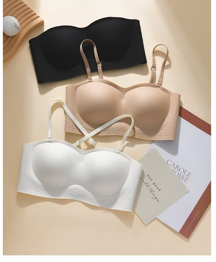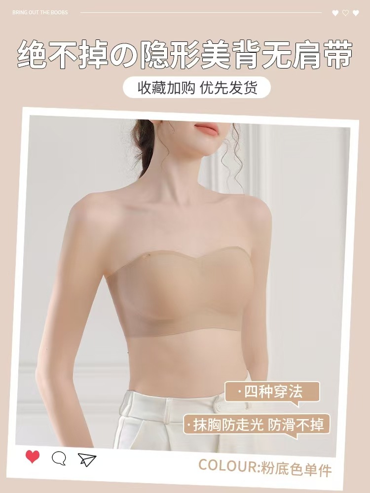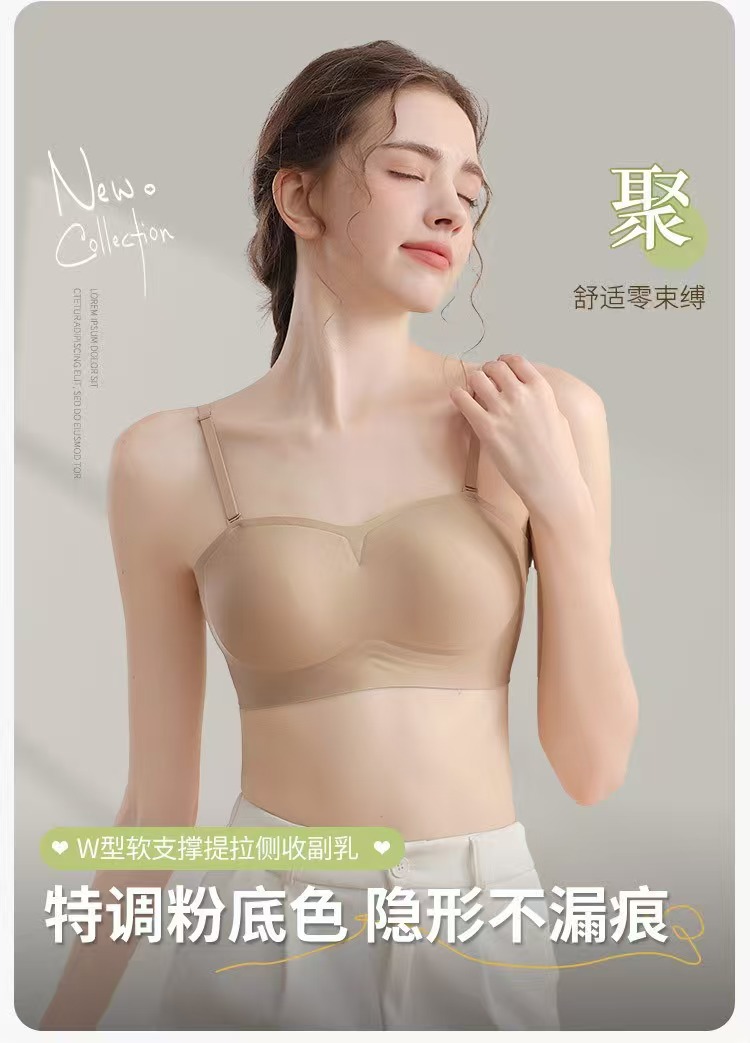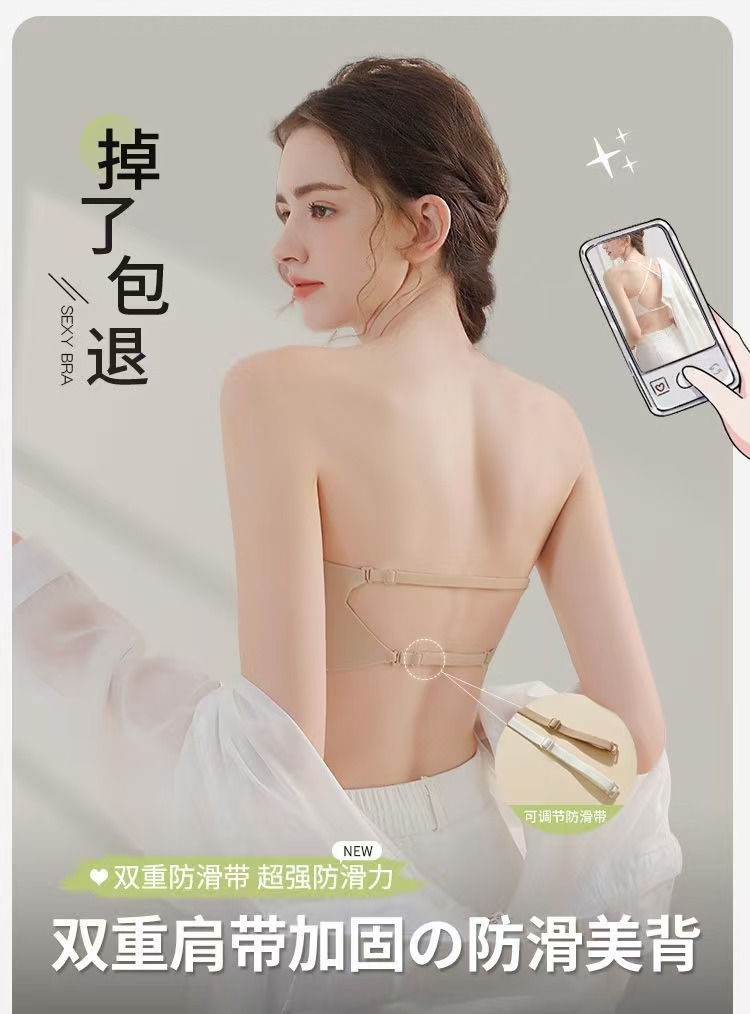 粉底液无肩带内衣女防滑聚拢小胸隐形无痕抹胸防走光裹胸美背文胸