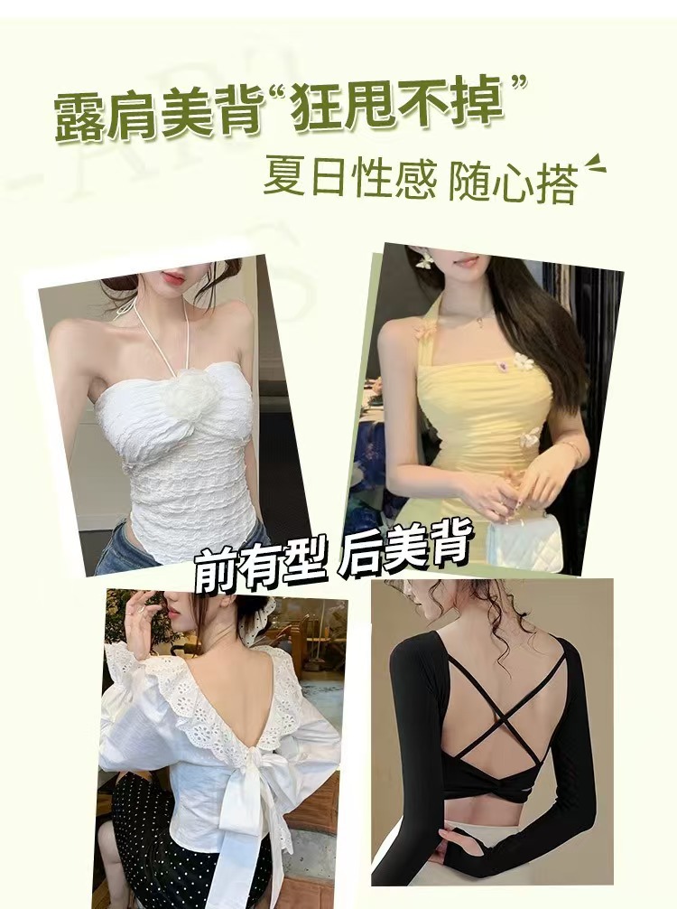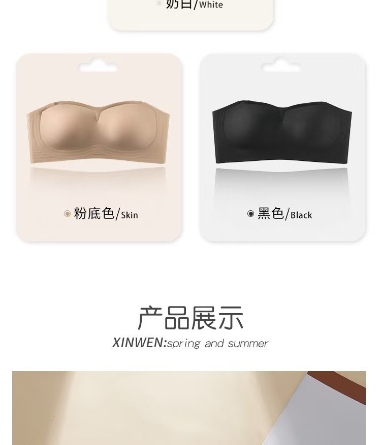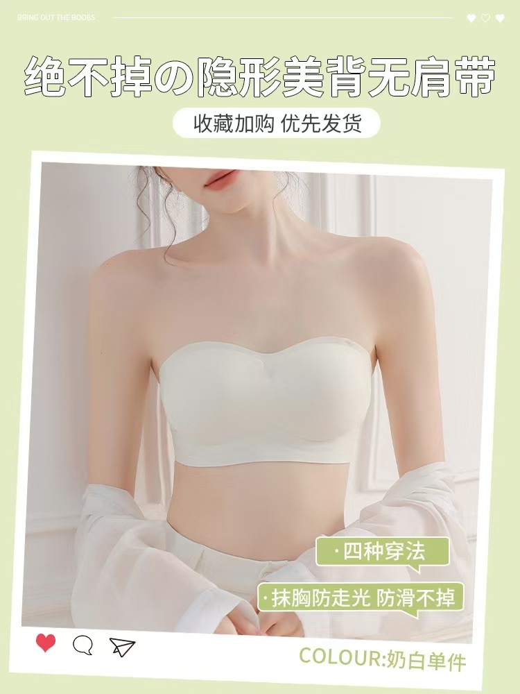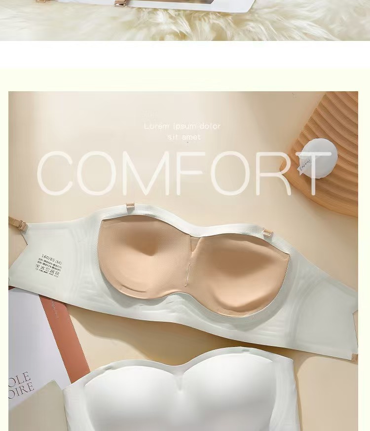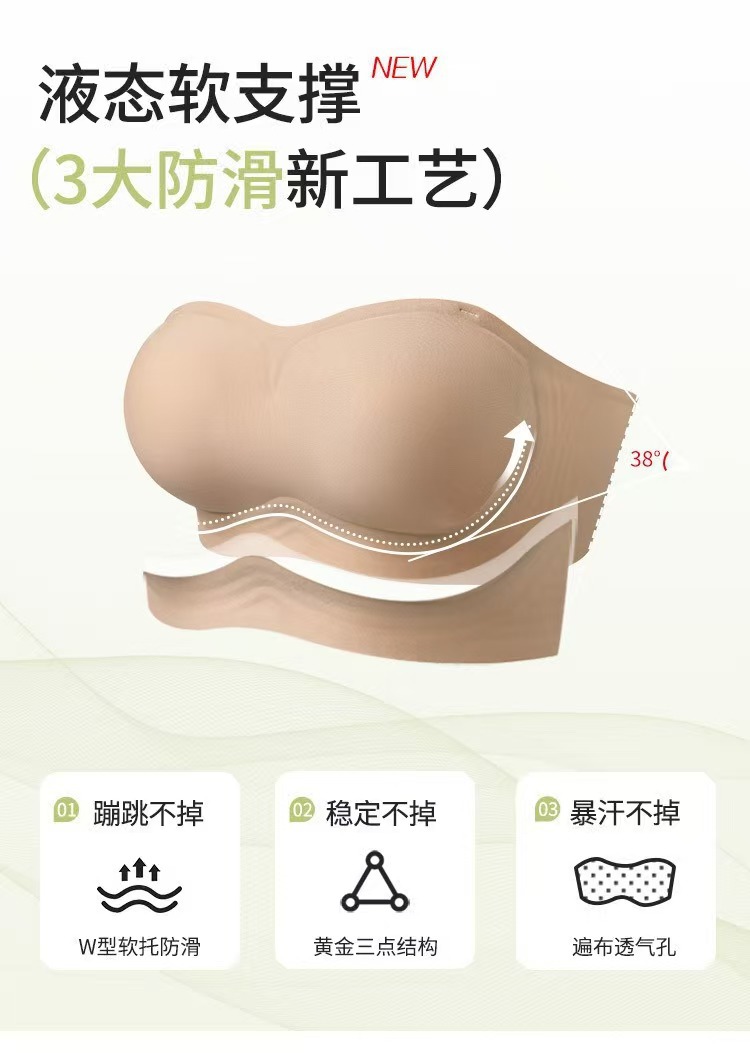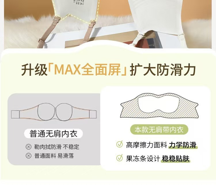 粉底液无肩带内衣女防滑聚拢小胸隐形无痕抹胸防走光裹胸美背文胸