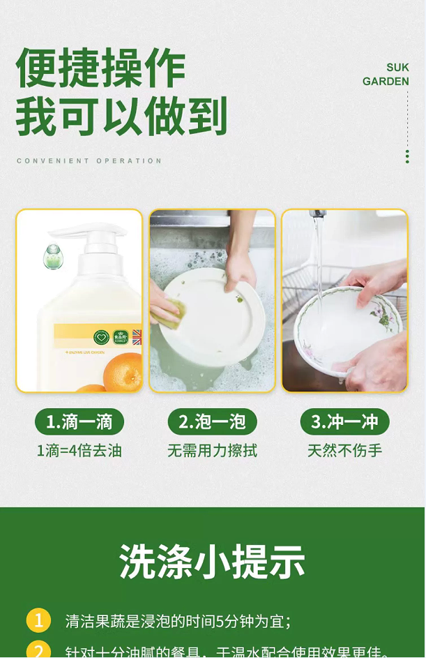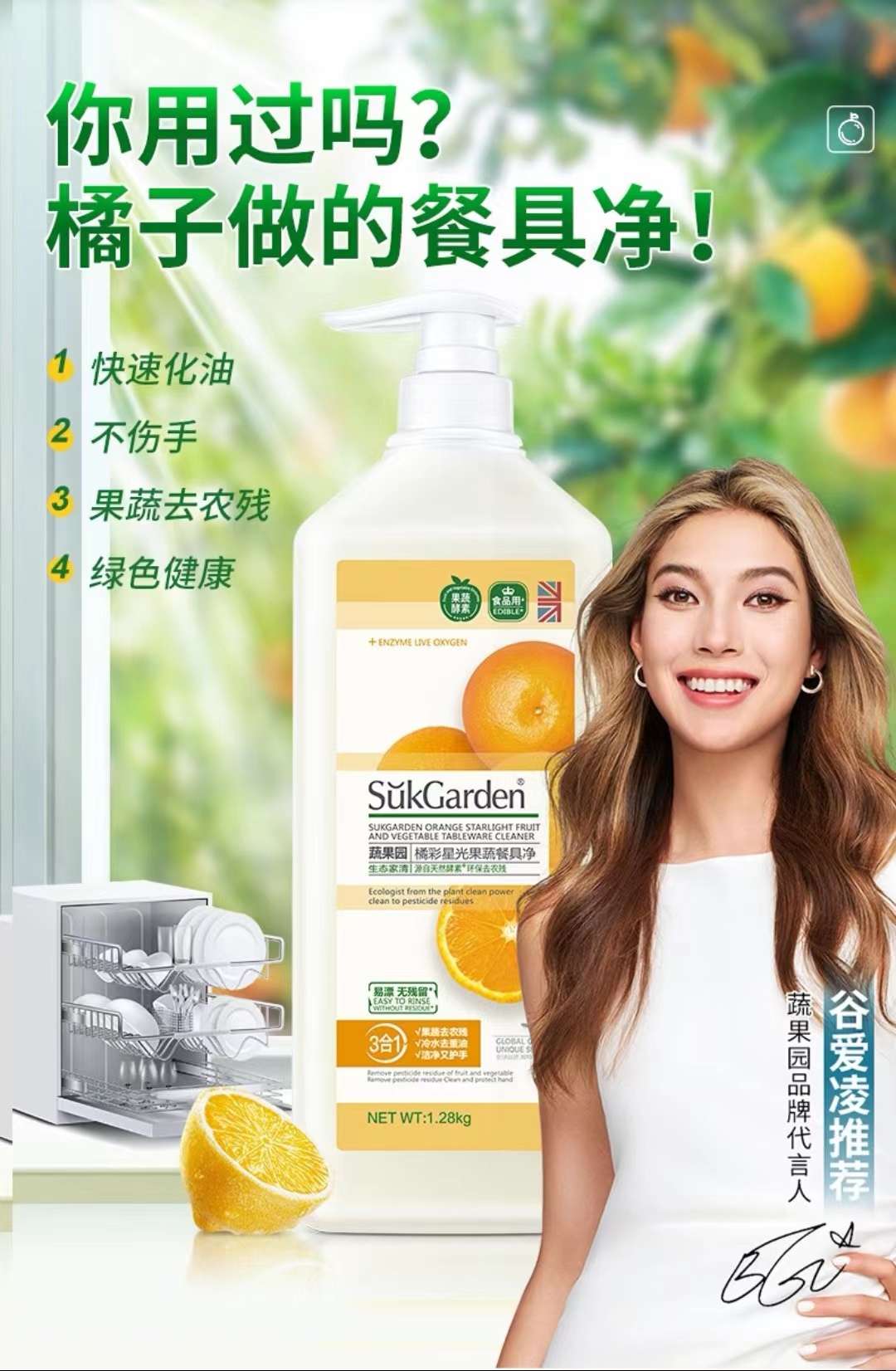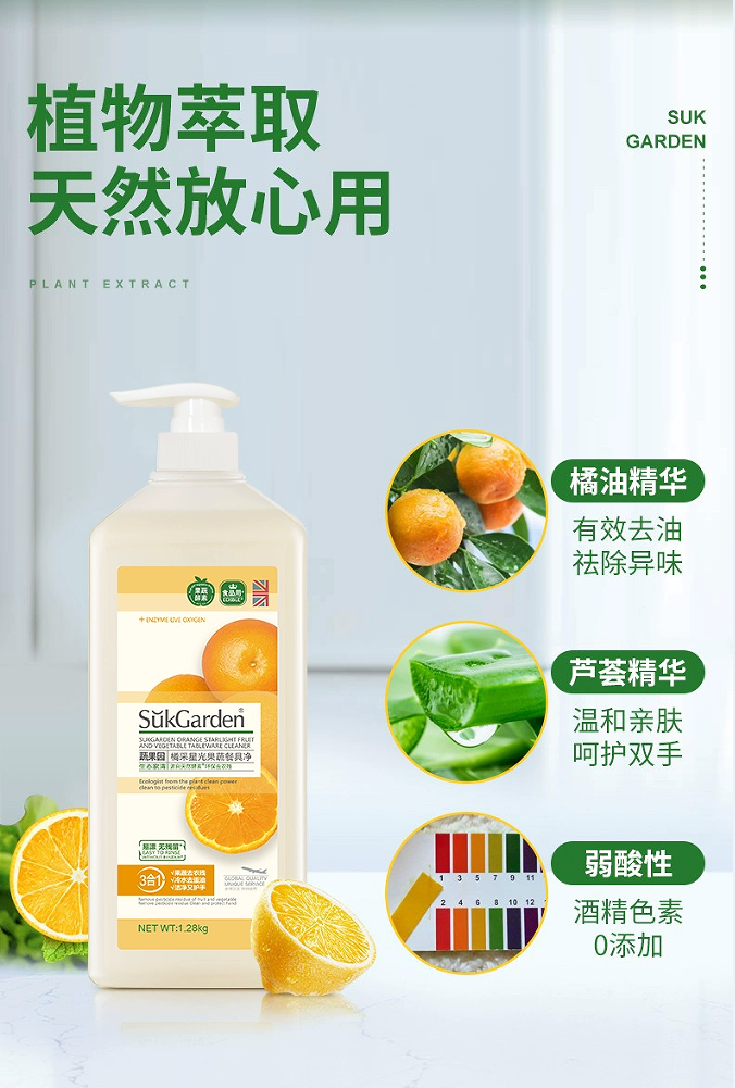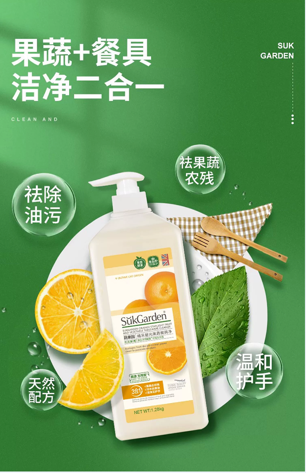 蔬果园洗洁精1280g*2瓶家用食品级果蔬清洗剂家庭装洗碗液
