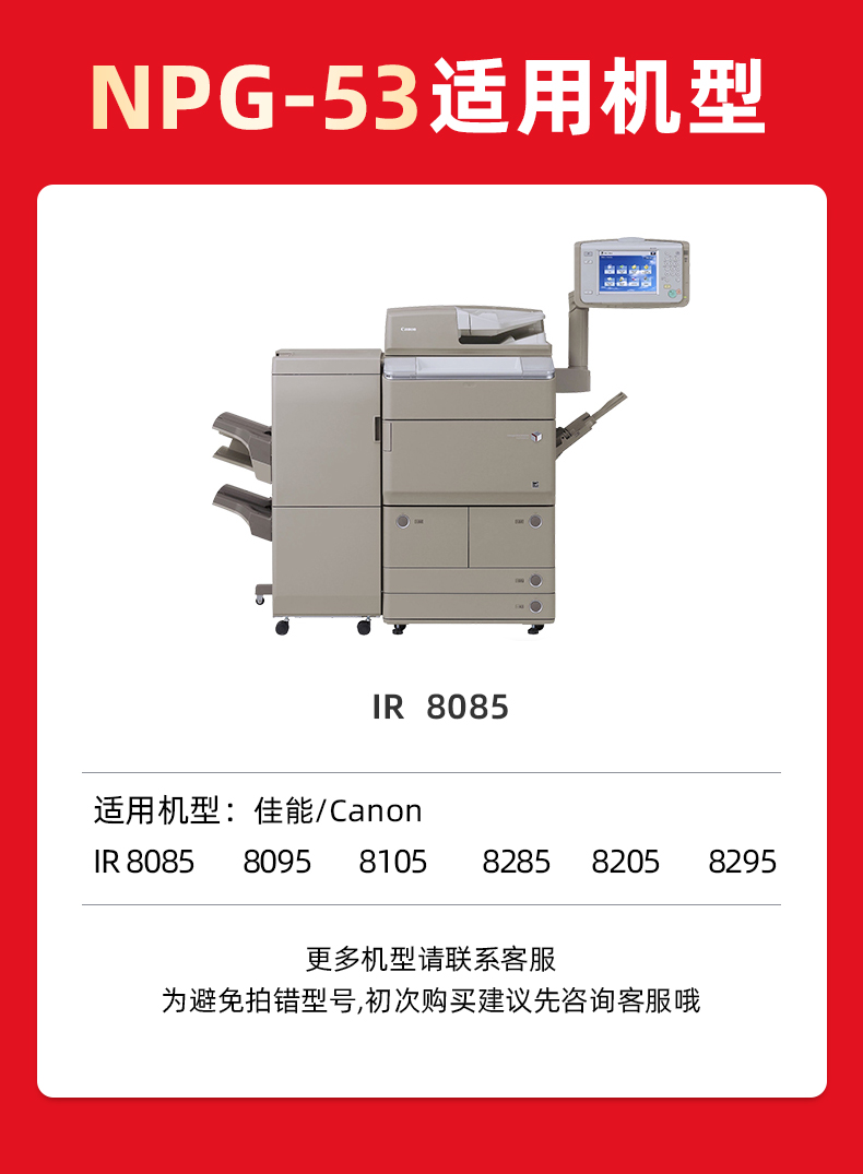 绘威NPG-53粉盒 适用佳能Canon IR-8085 8095 8105 8285 8205 8295打印机复合机墨盒 碳粉 墨粉 墨粉盒