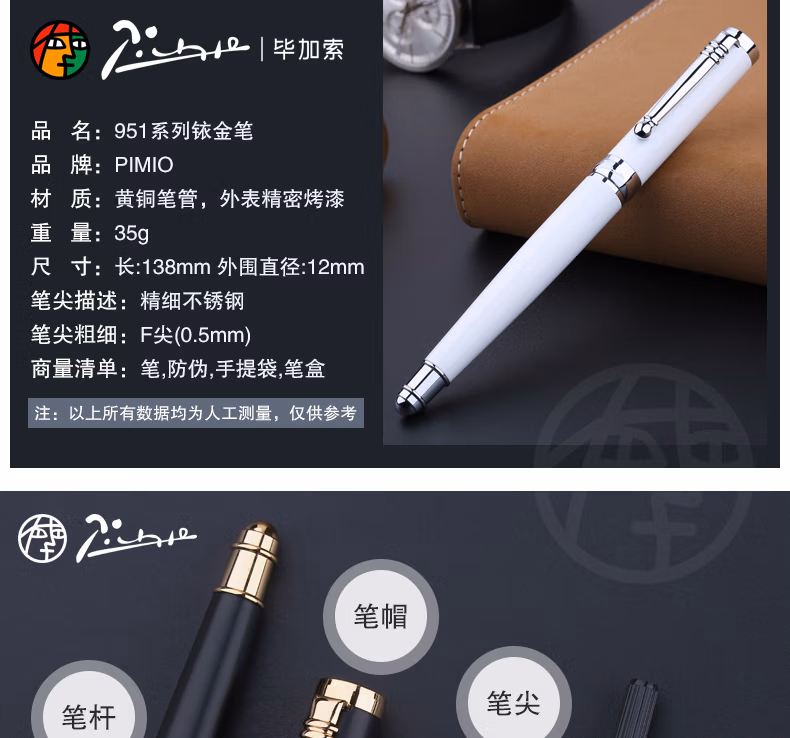 毕加索(pimio)ps-951 纯黑金夹钢笔墨水笔办公钢笔