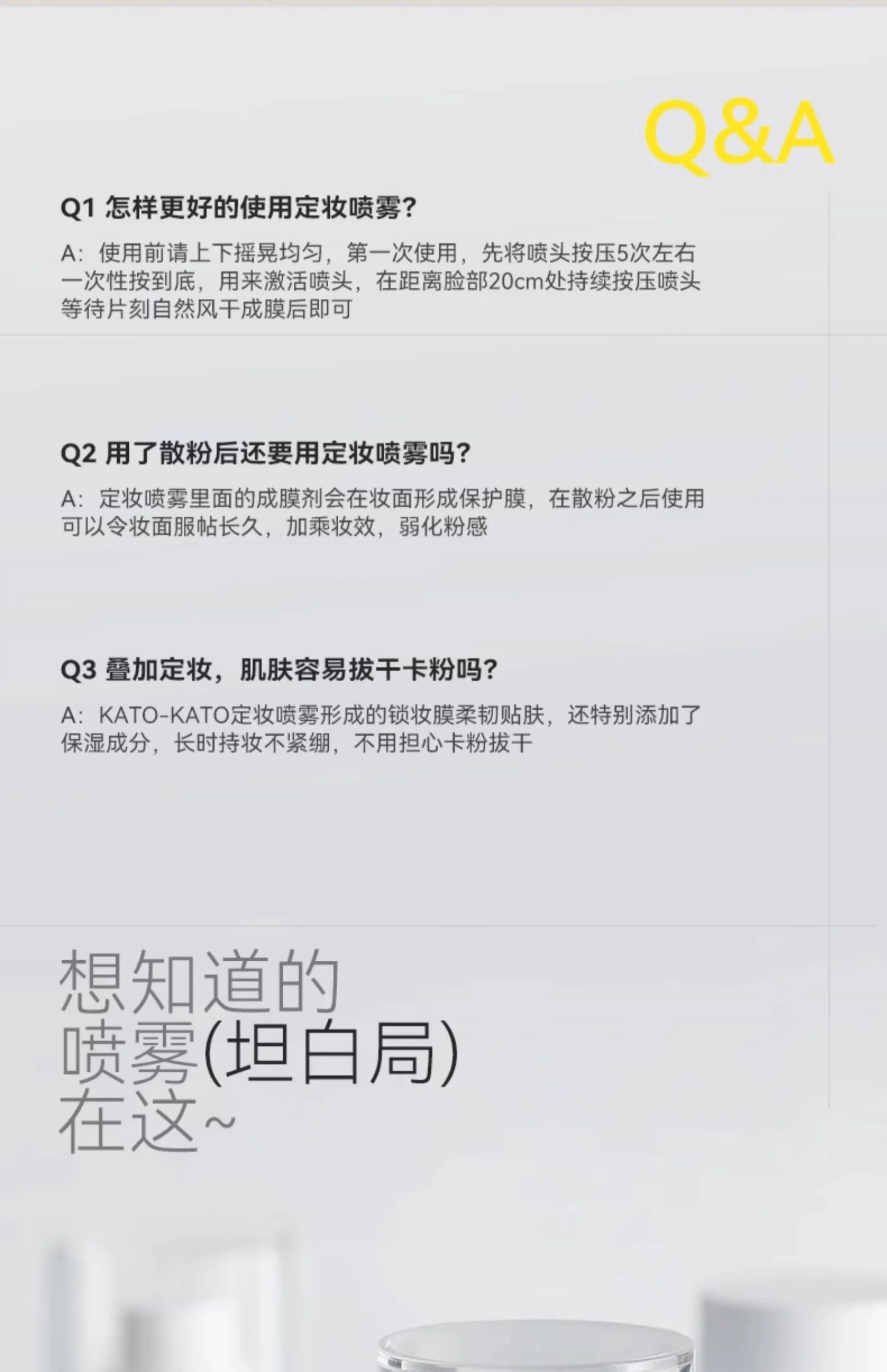 【产品名称】:kato造雾计划液体面纱定妆喷雾
