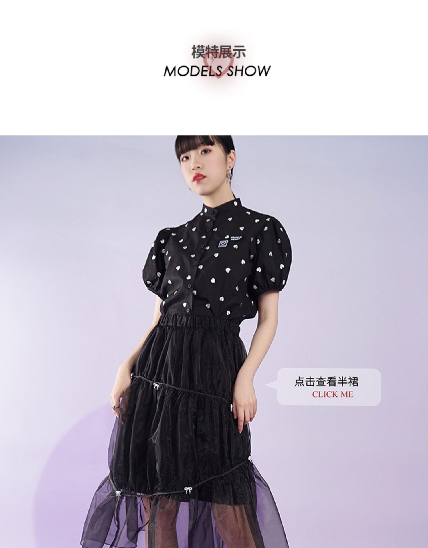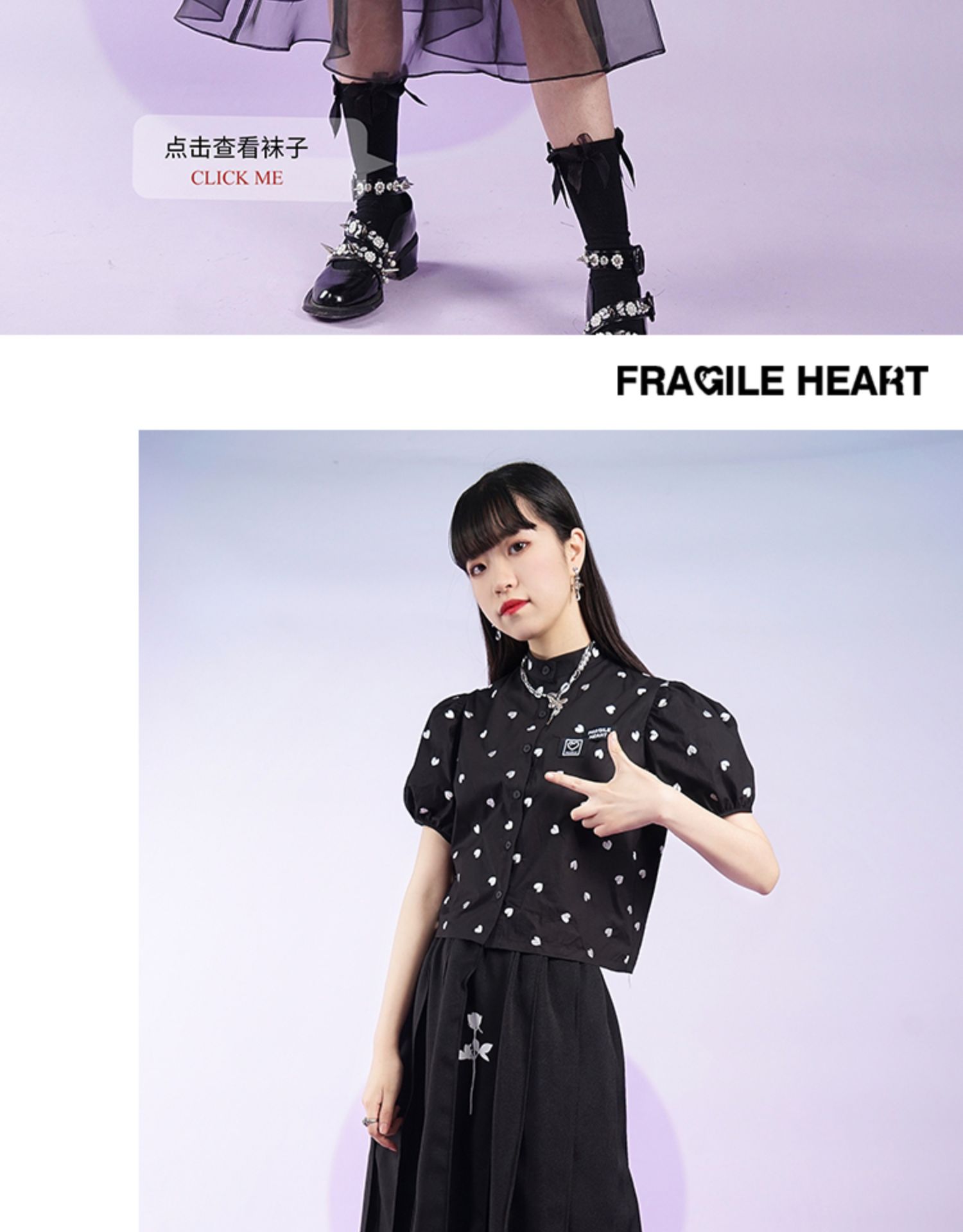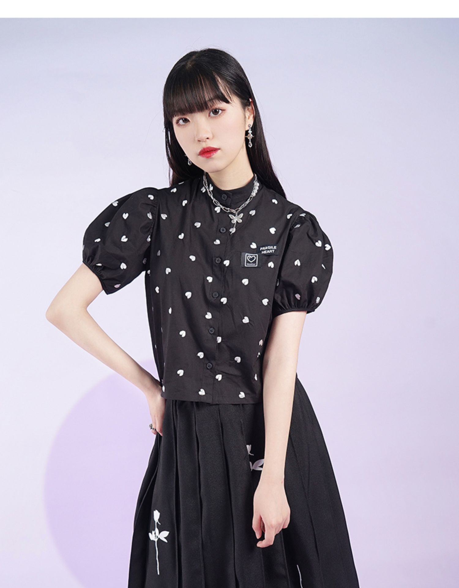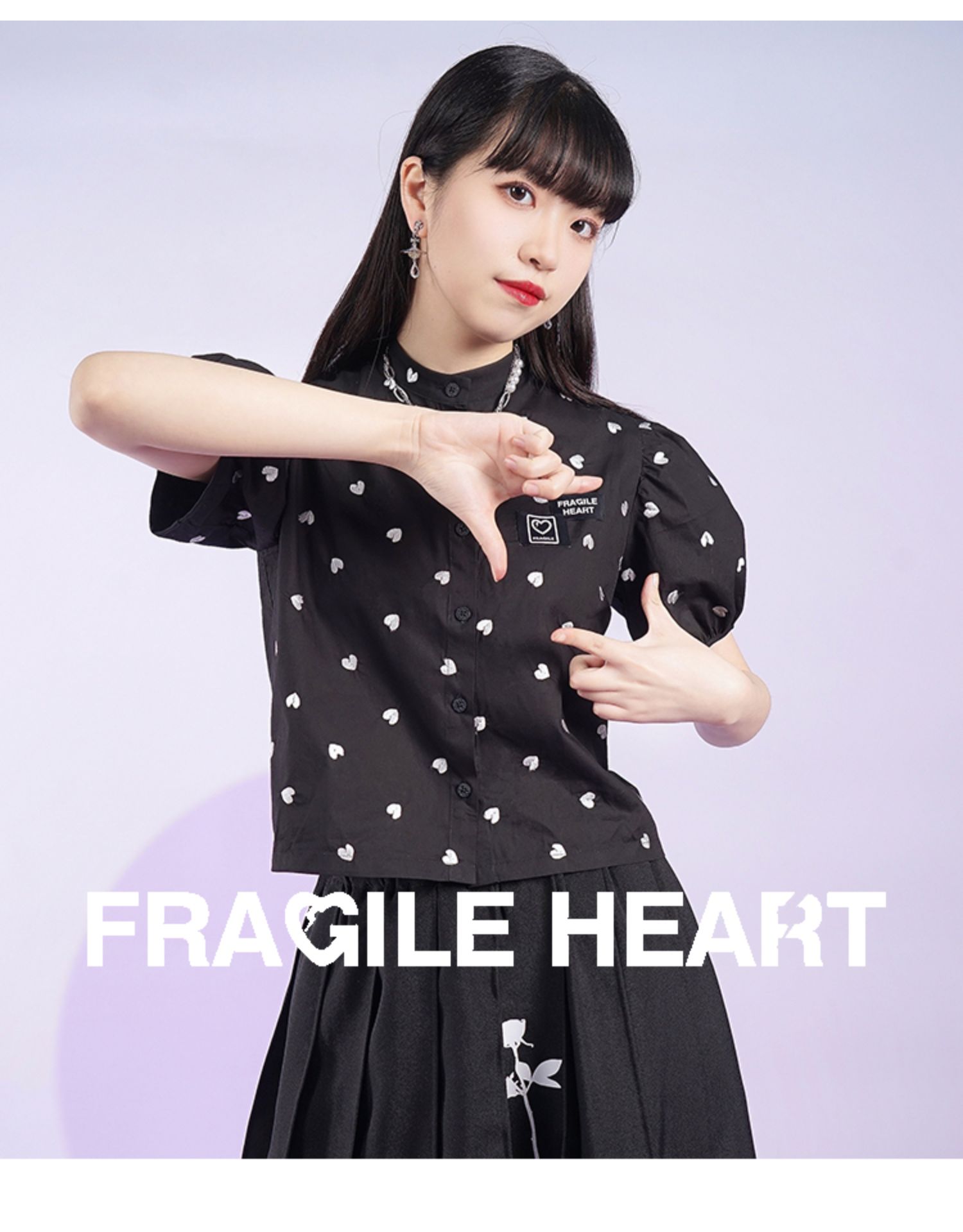 fragileheart易碎商店夏季立领原创设计小众爱心元素黑色衬衫女