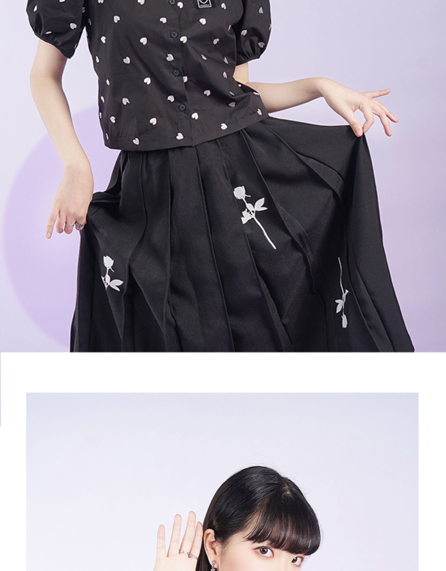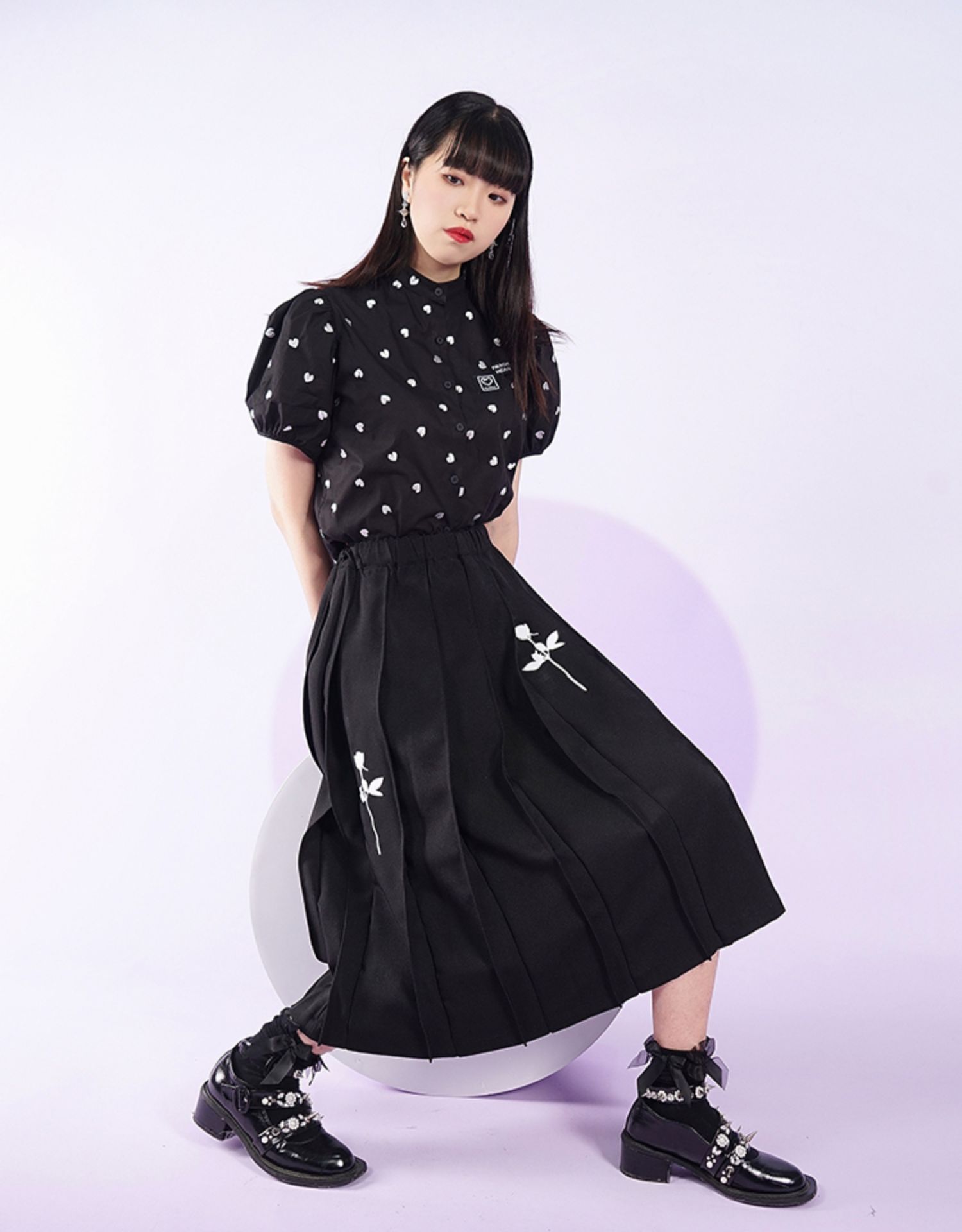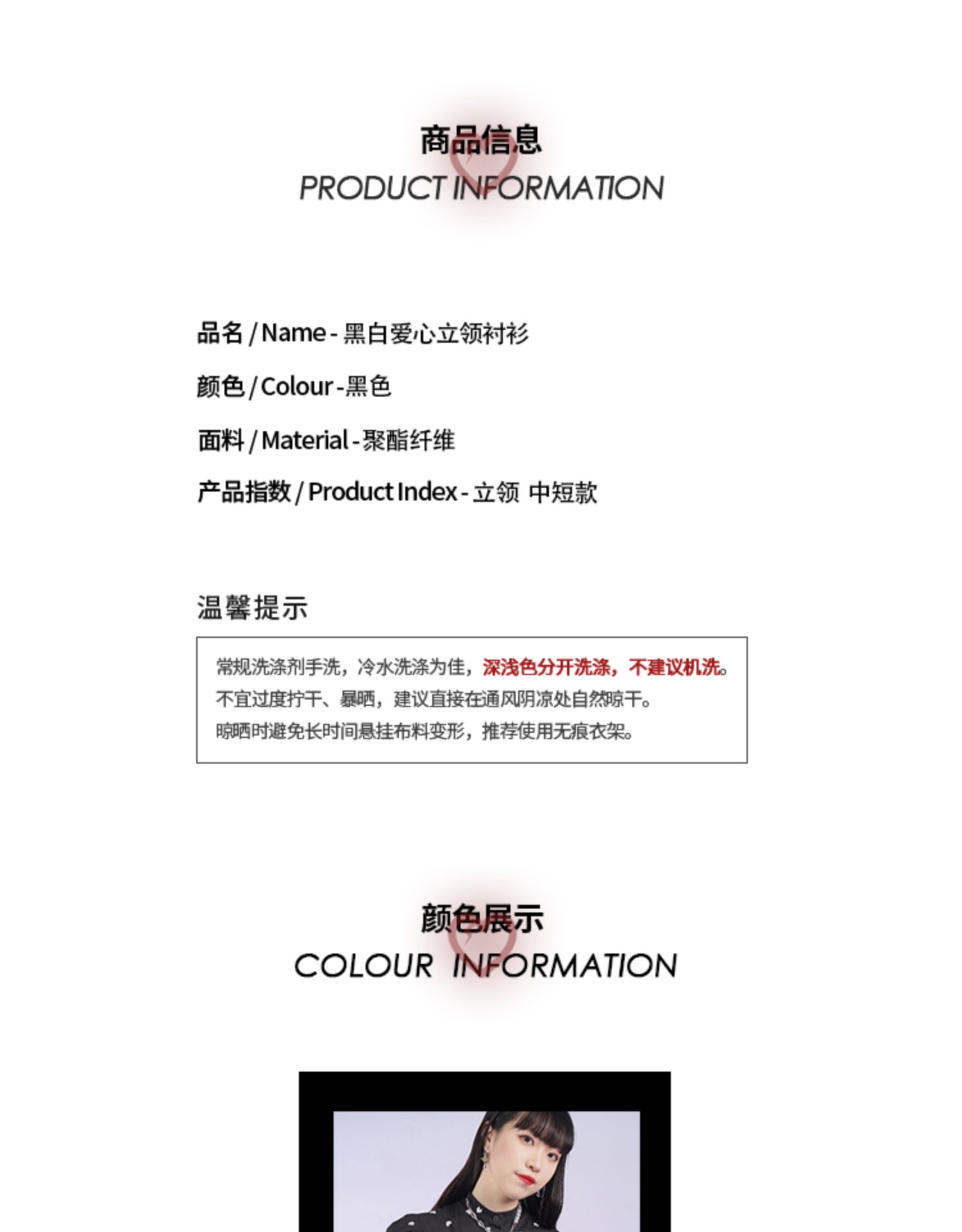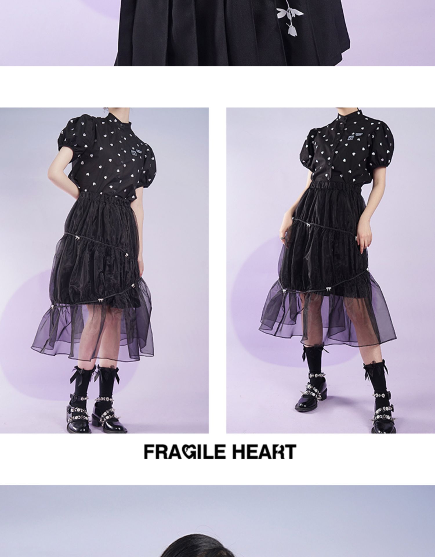 fragileheart易碎商店夏季立领原创设计小众爱心元素黑色衬衫女