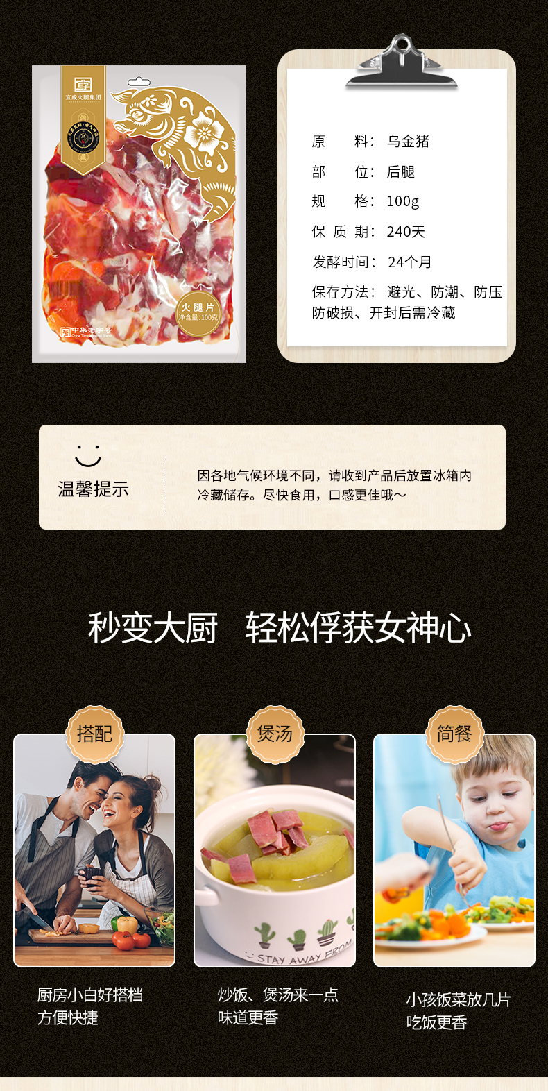 宣字牌家庭装火腿片100g/袋