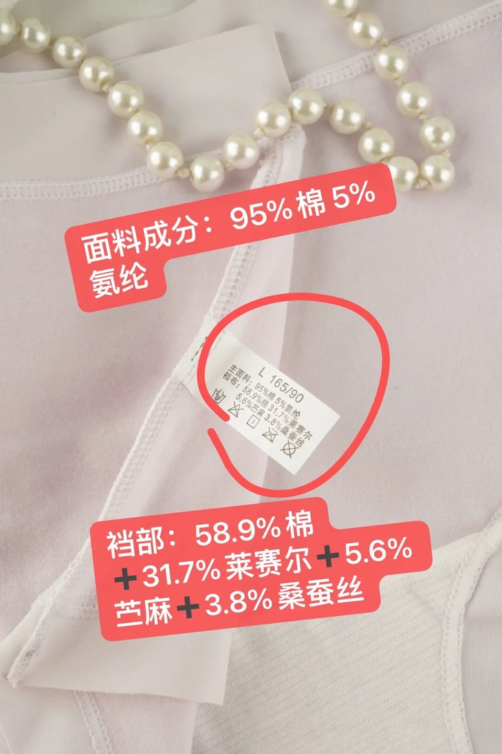 裆部:58.9%棉、31.7%莱赛尔、5.6%苎麻、3.8%桑蚕丝